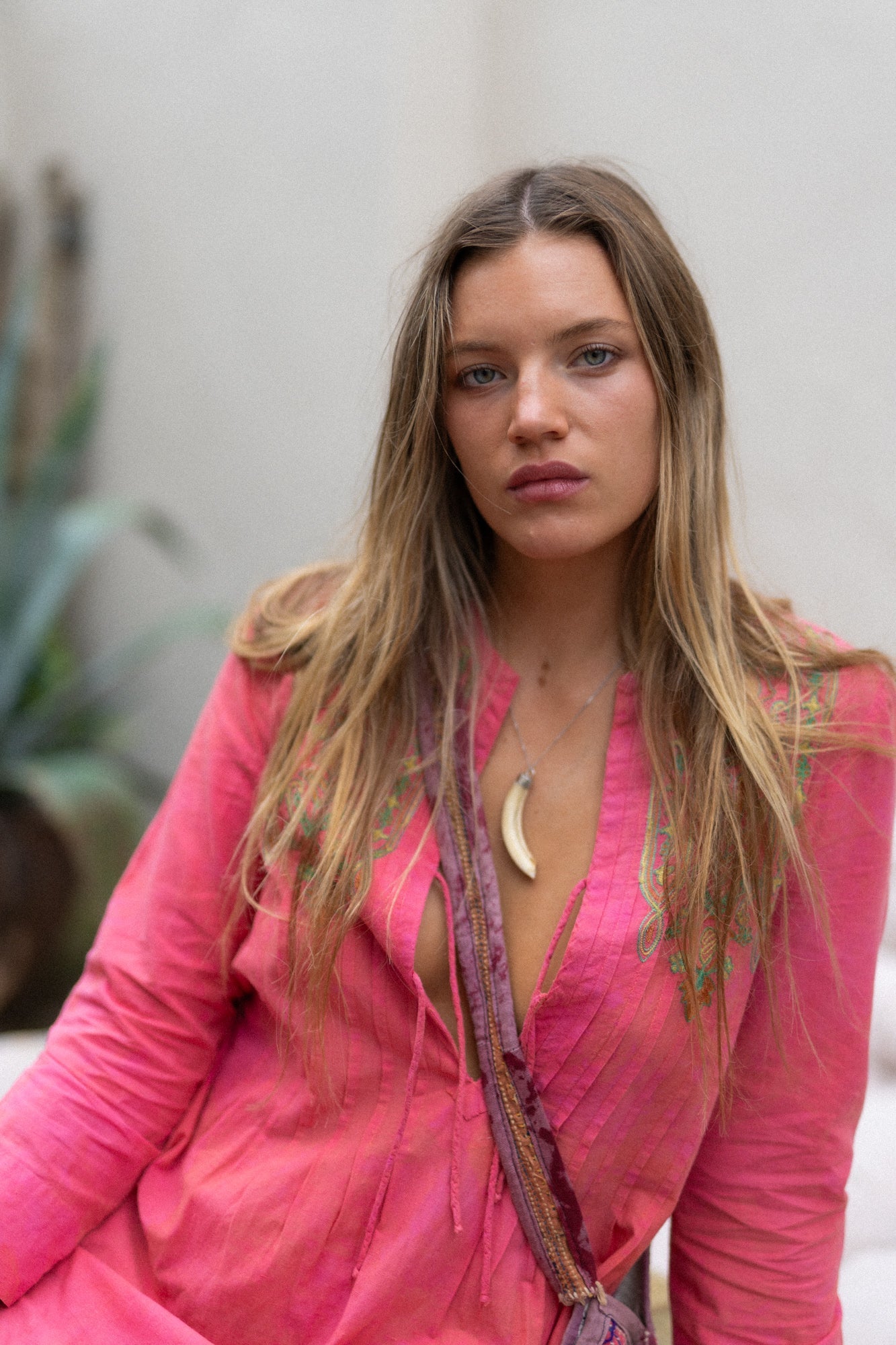 A CLASSIC ROCK AND ROLL PIECE OF JEWELLERY. A 70S TUSK PENDANT ON A SILVER CHAIN. CHAIN IS 44CM, BONE IS 6CM