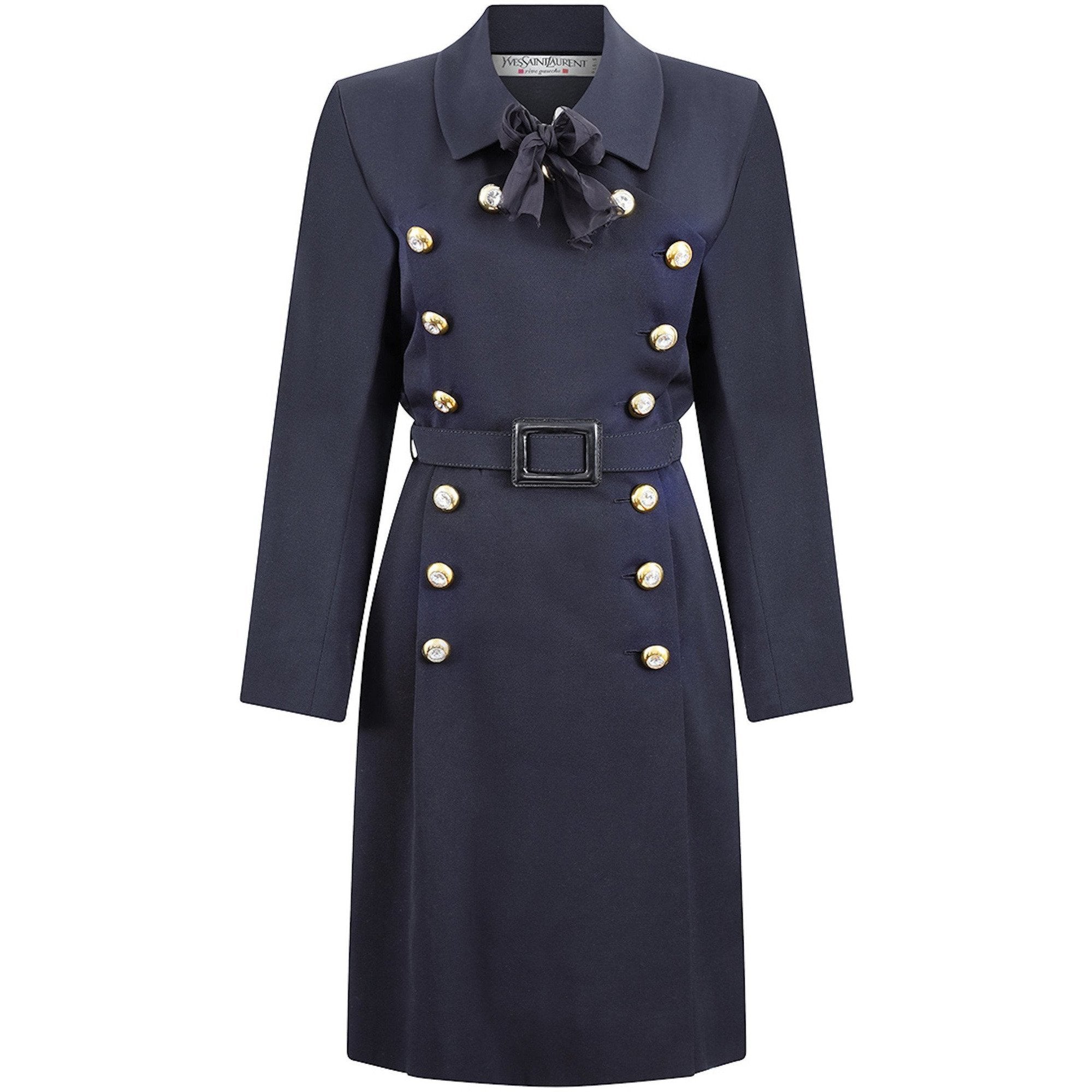 This runway documented Yves Saint Laurent coat dress is from his spring / summer 1992 collection. With 'headlight' crystal buttons and matching belt it is exceptional quality and in excellent vintage condition with no issues.