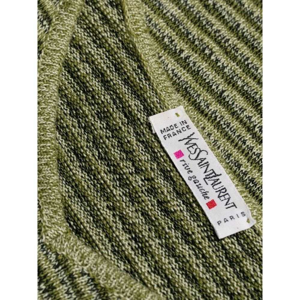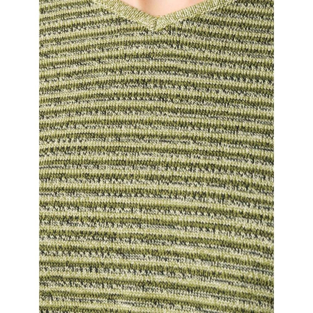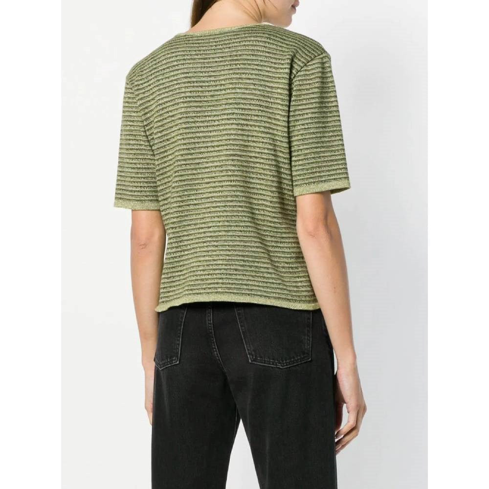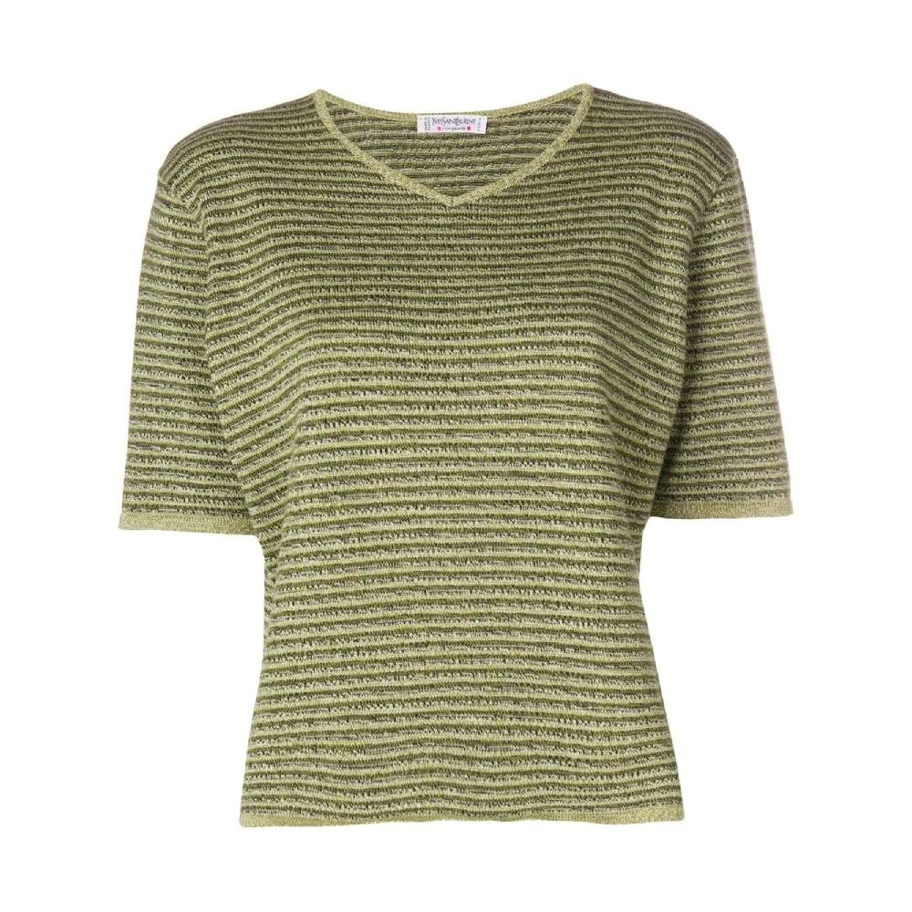 Yves Saint Laurent green cotton top with tone-on-tone stripes. V-neck and short sleeves.
