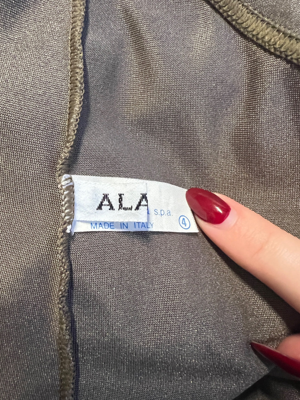 We have featured an editorial shot from Vogue 1987 with model Rachel Williams photographed by Arthur Elgort and runway shots from the Alaia foundation. We believe this would best fit a UK 8, US 4.