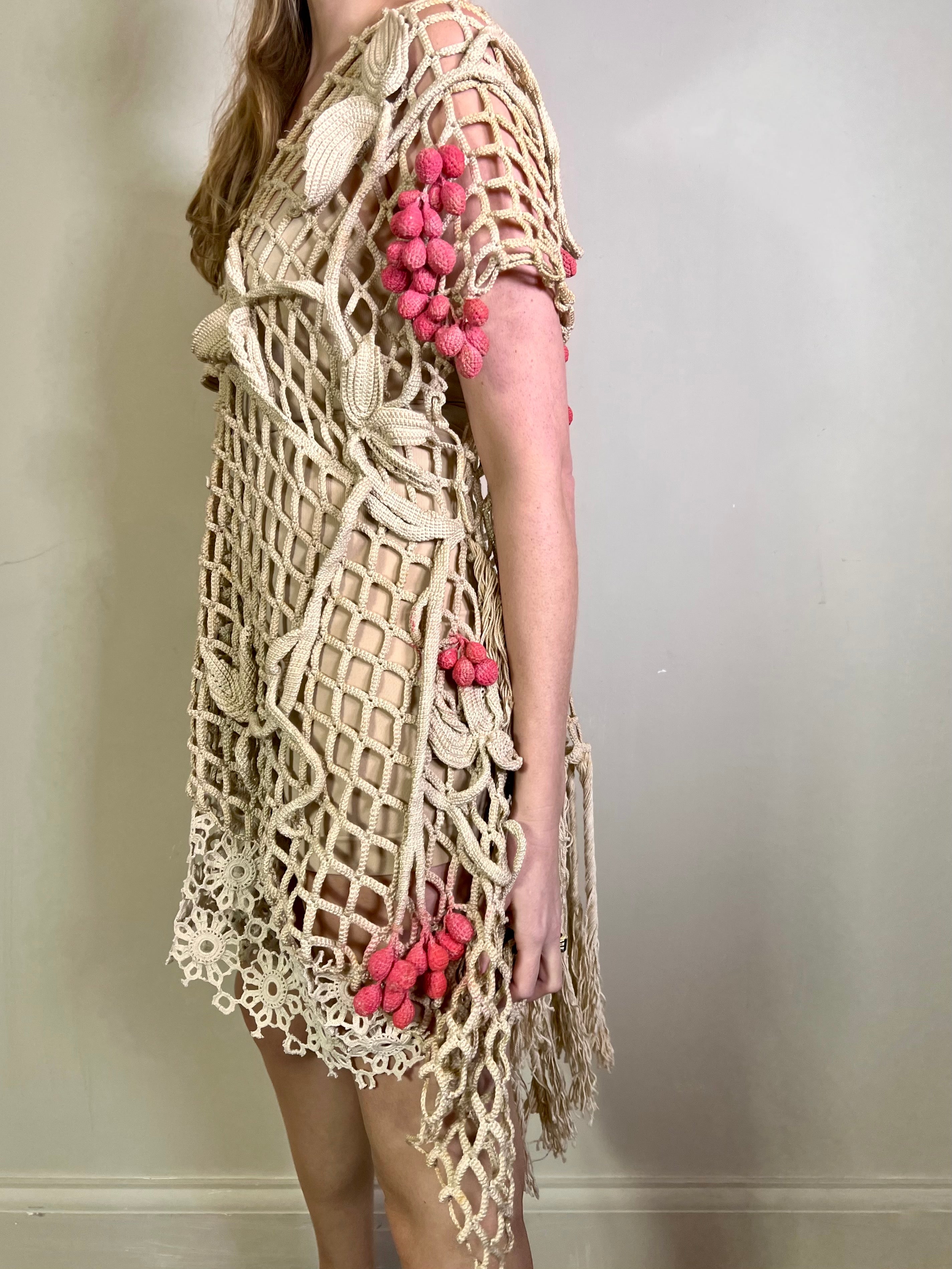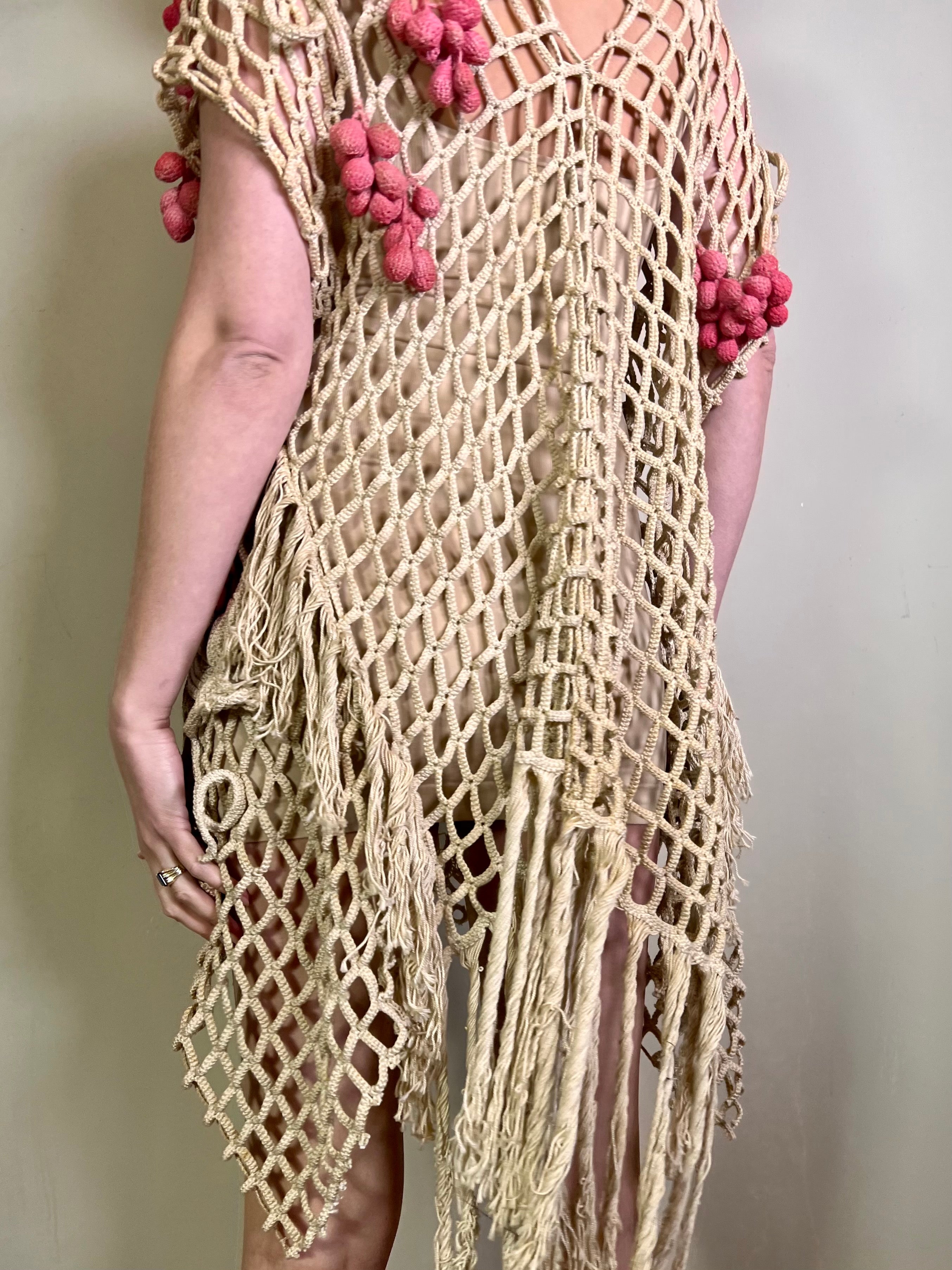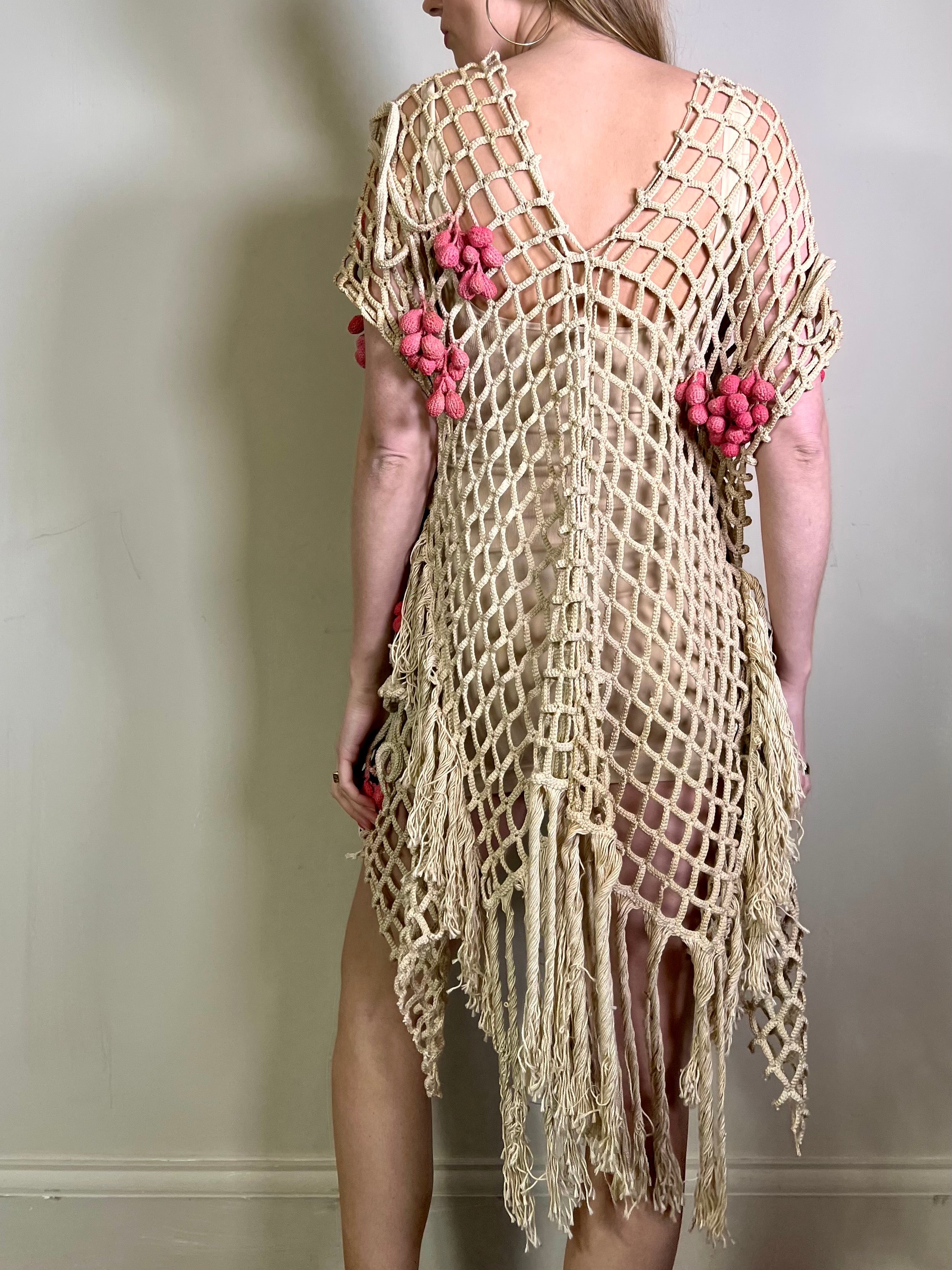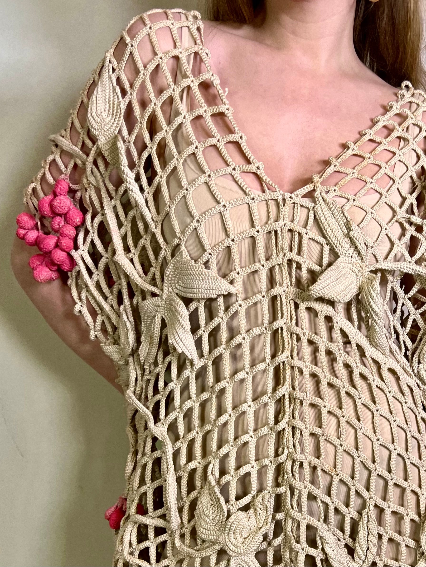 Gorgeous French net crochet beach covet up with  hanging vines. This is a true one-off piece, hand painted to create a magical textured cover up. Excellent condition.