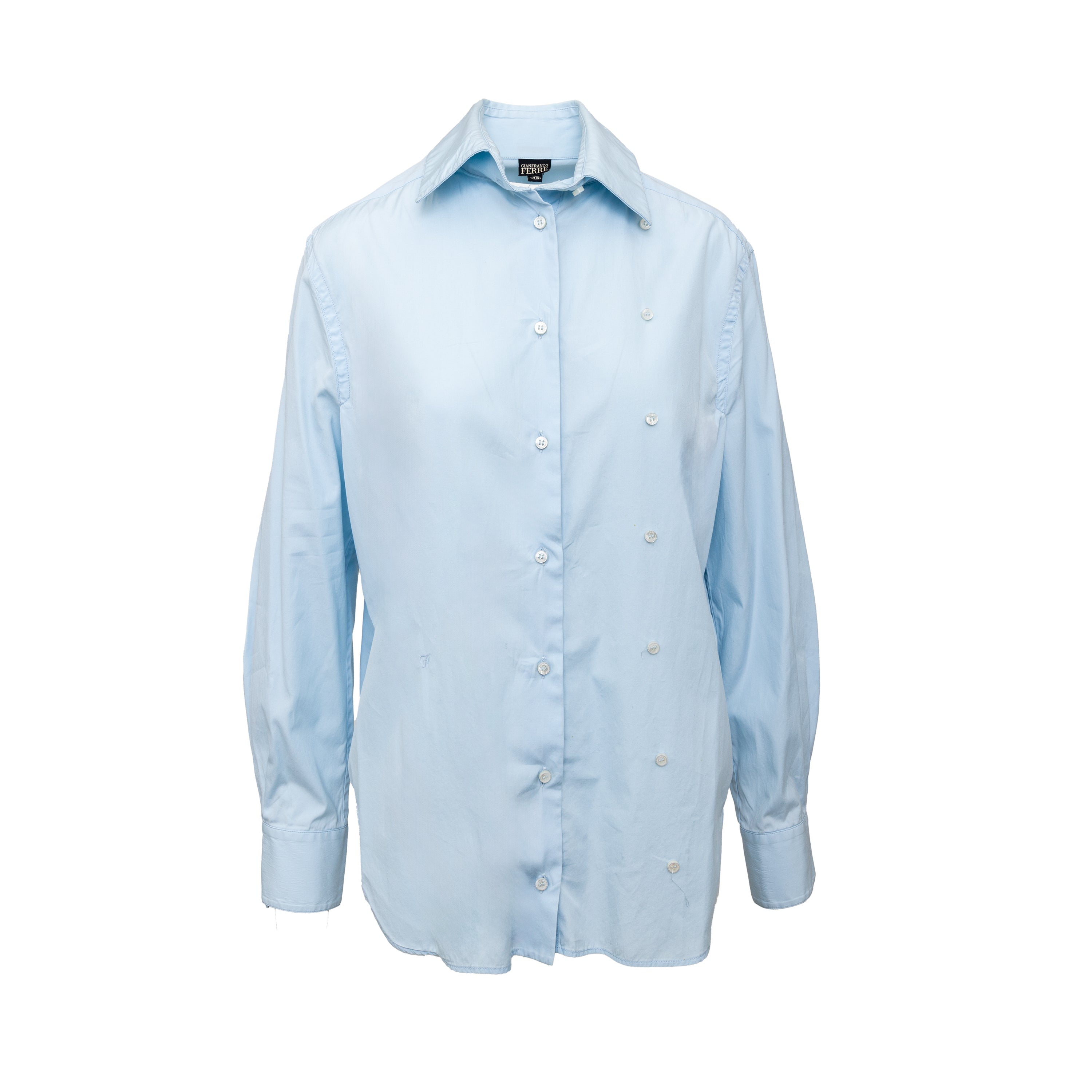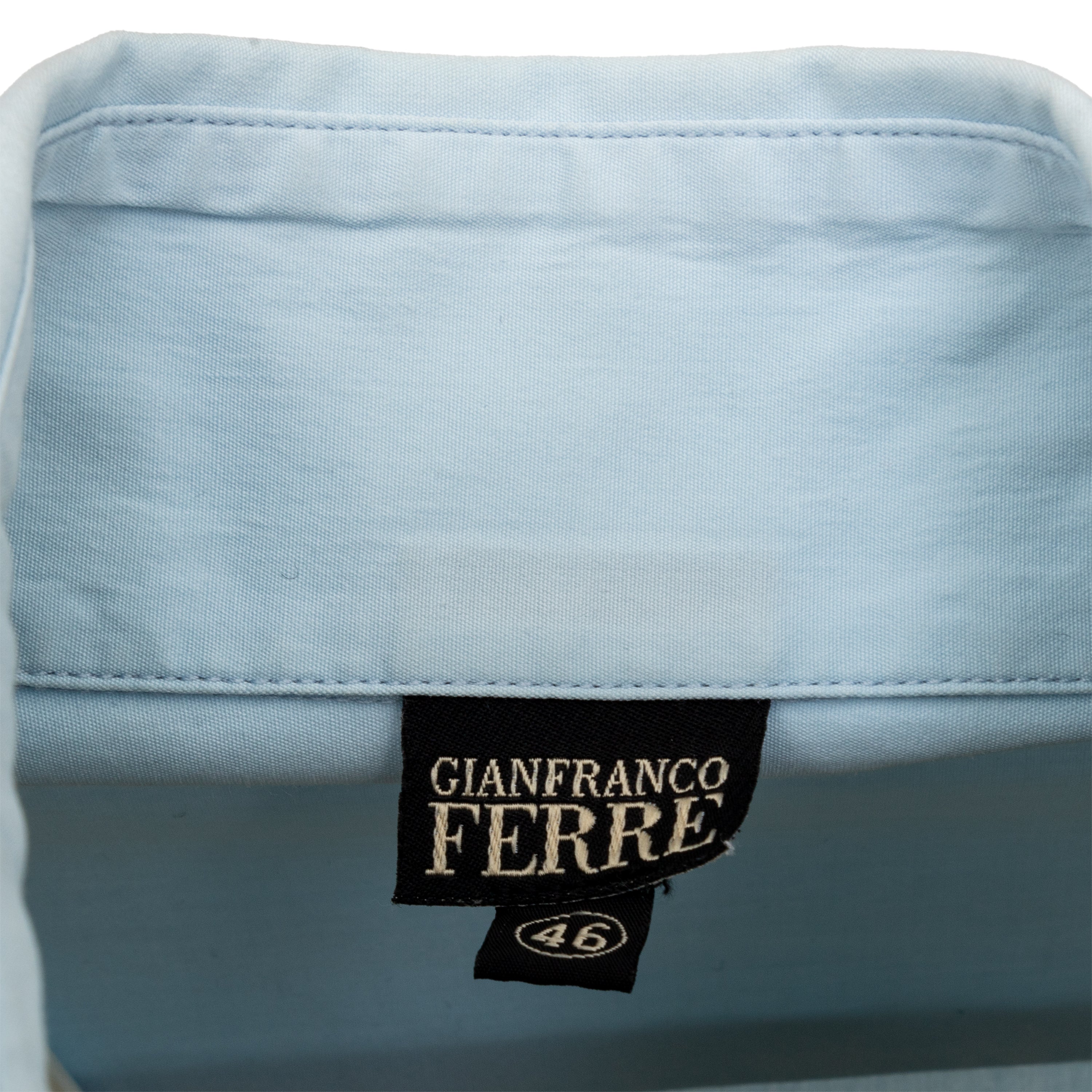 Expertly crafted from 100% soft cotton in a timeless shade of blue, the Gianfranco Ferré Double Button Shirt is a modern take on the classic button down. With its unique double button design, this versatile shirt can be styled open or closed for a sophisticated and polished look.