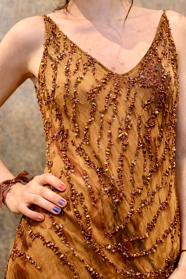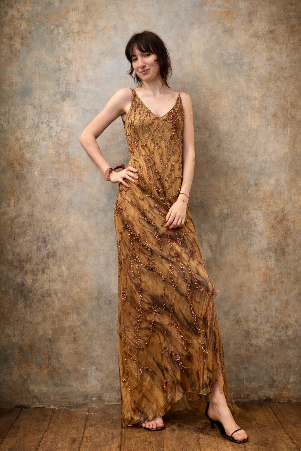 Glory, vintage animal print beaded bias cut silk chiffon dress