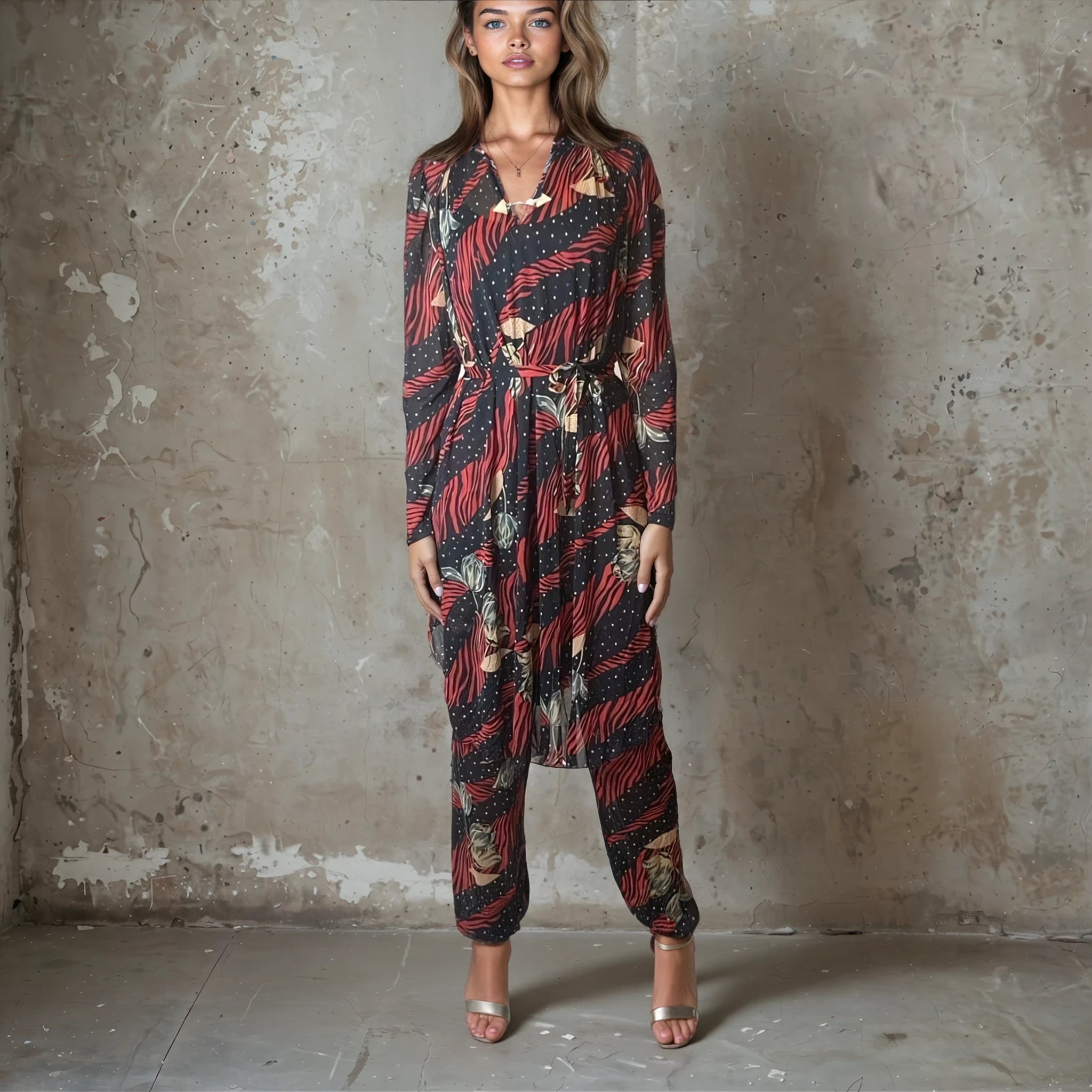 This Gorgeous Vintage "Virginie - Paris" Two Piece Dress & Trousers set are super cute. You can wear them together or just the dress or trousers. The dress comes with a matching belt and the trousers have an elasticated waist and ankles. In great vintage condition they would fit a UK size 8 - 12 but please do check the measurements to avoid disappointment.
