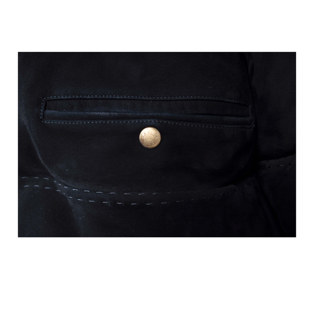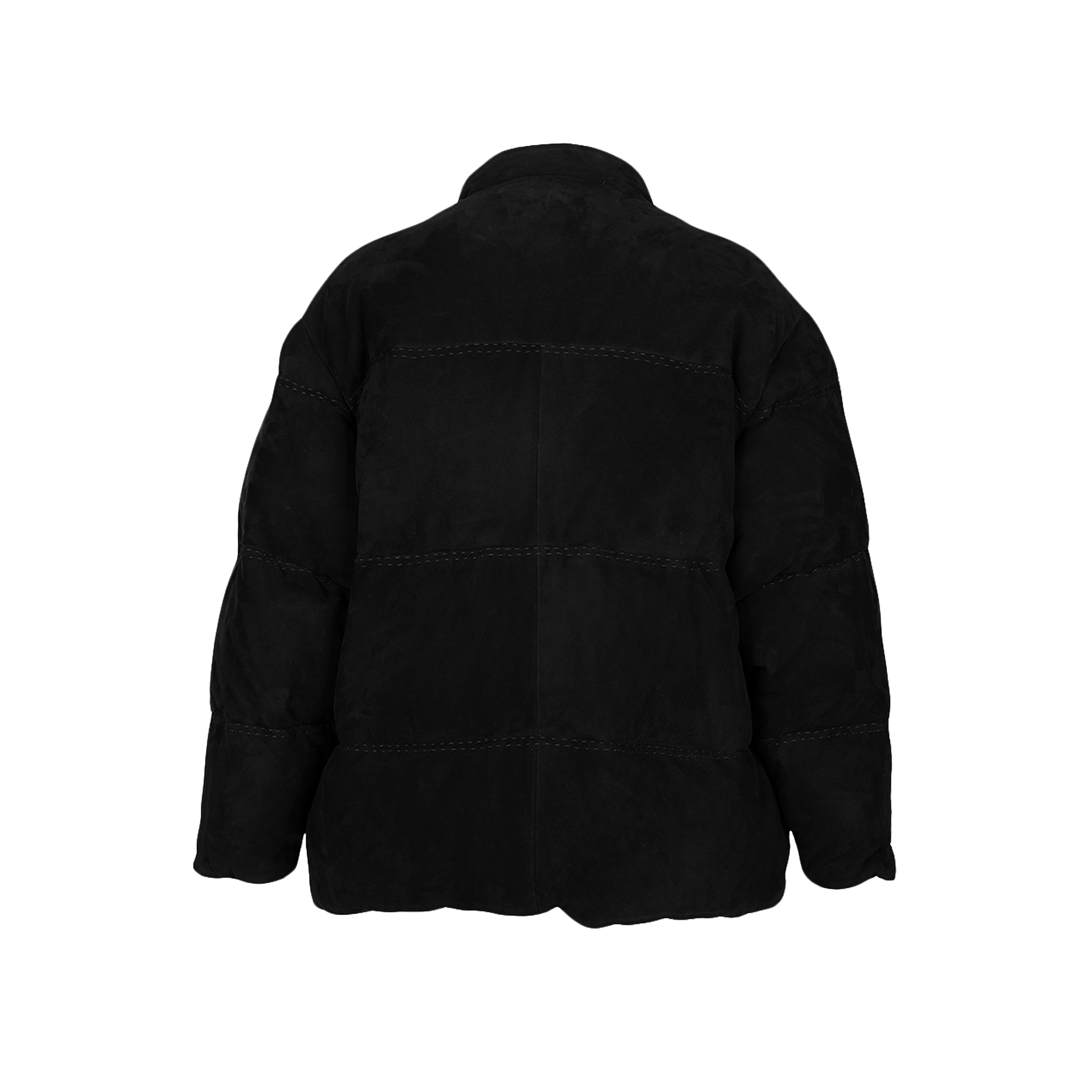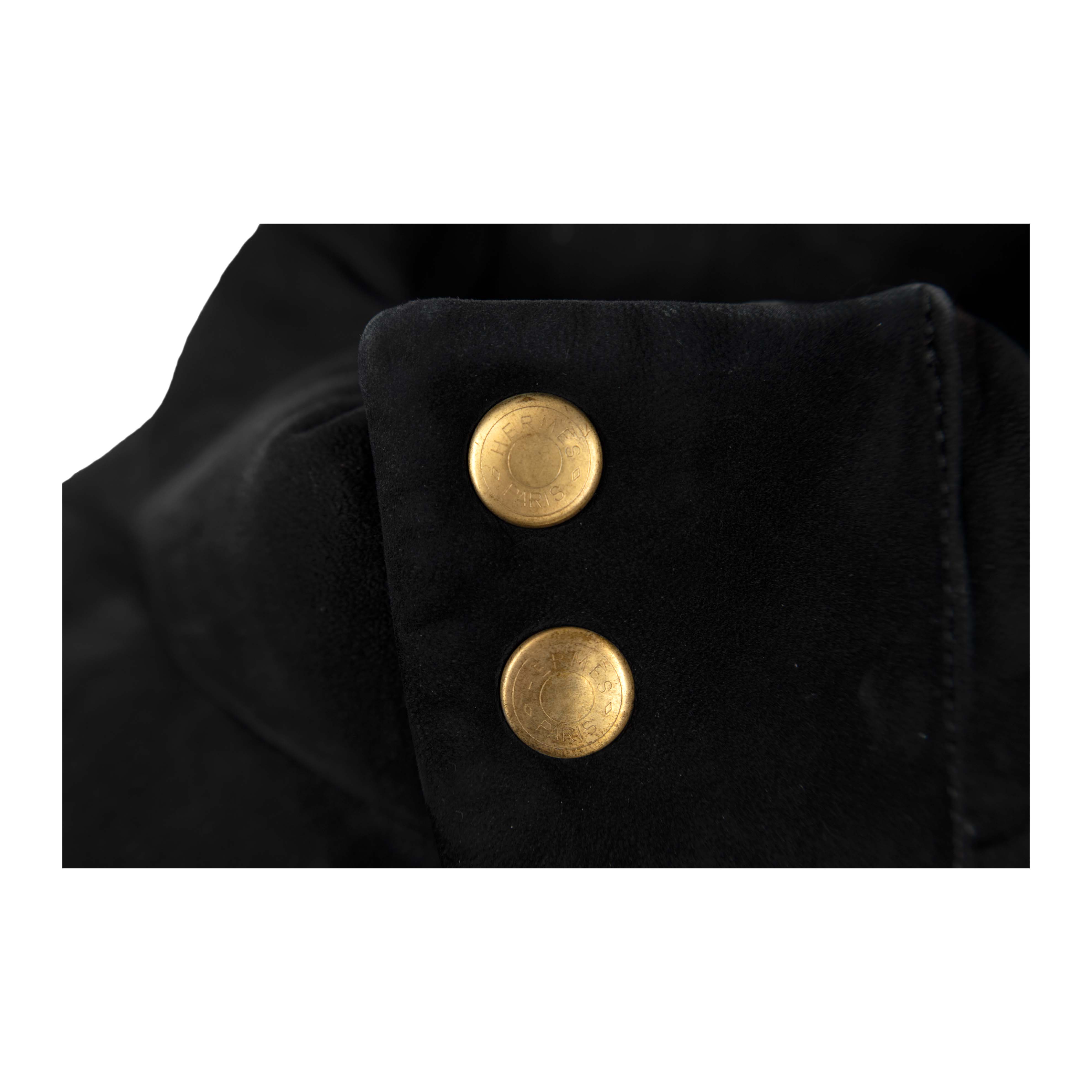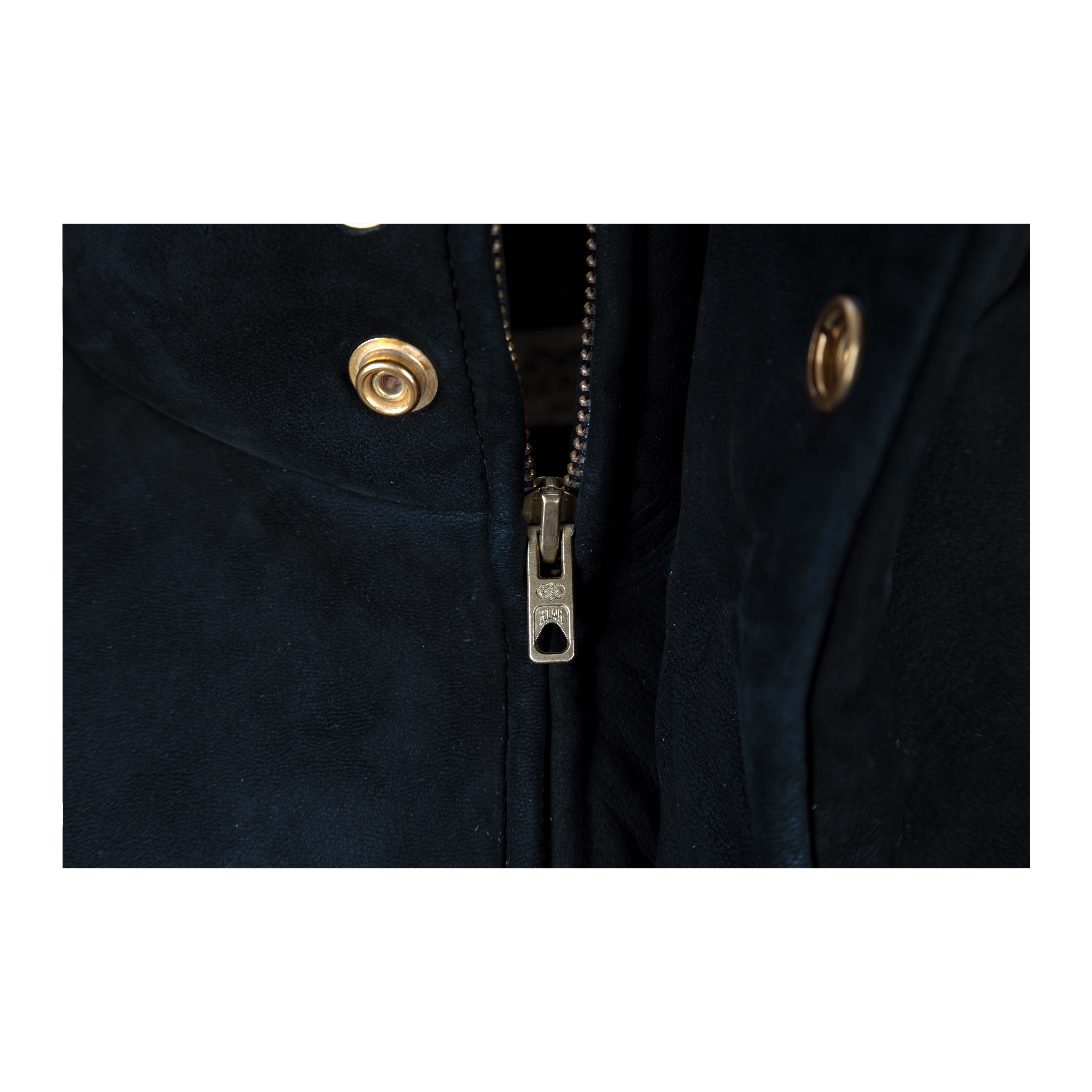 A standout piece from Hermès' 1990s collection, this black suede bomber jacket is an iconic example of luxury craftsmanship and timeless design. The jacket features rich, premium suede, complemented by intricate band quilting for a structured silhouette. Inside, an exquisite printed silk lining adds a sophisticated and unexpected flair. With long sleeves and a classic button fastening, this jacket exudes effortless elegance. Perfect for a curated men's heritage wardrobe, it represents the blend of understated style and refined craftsmanship that Hermès is known for.