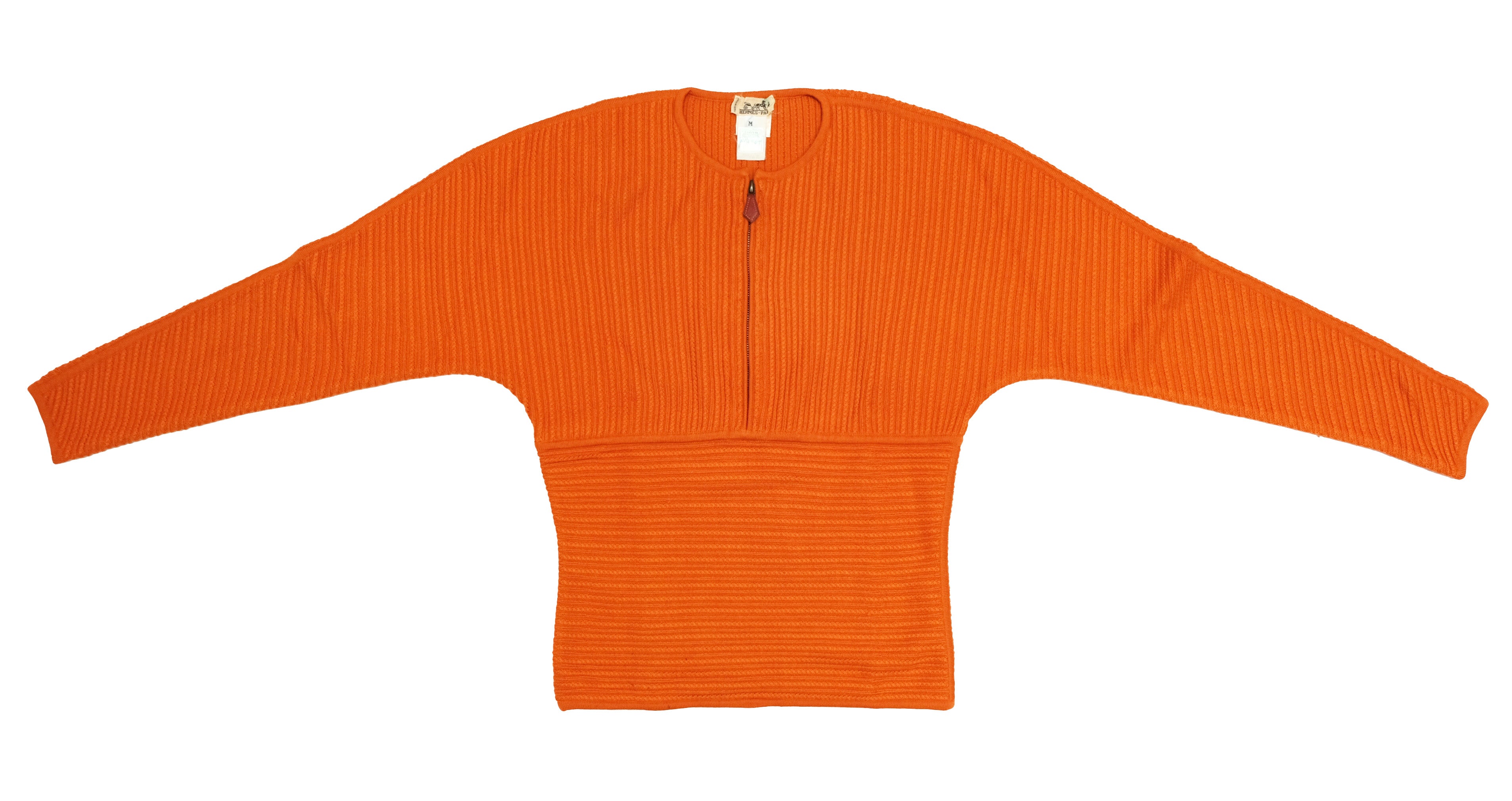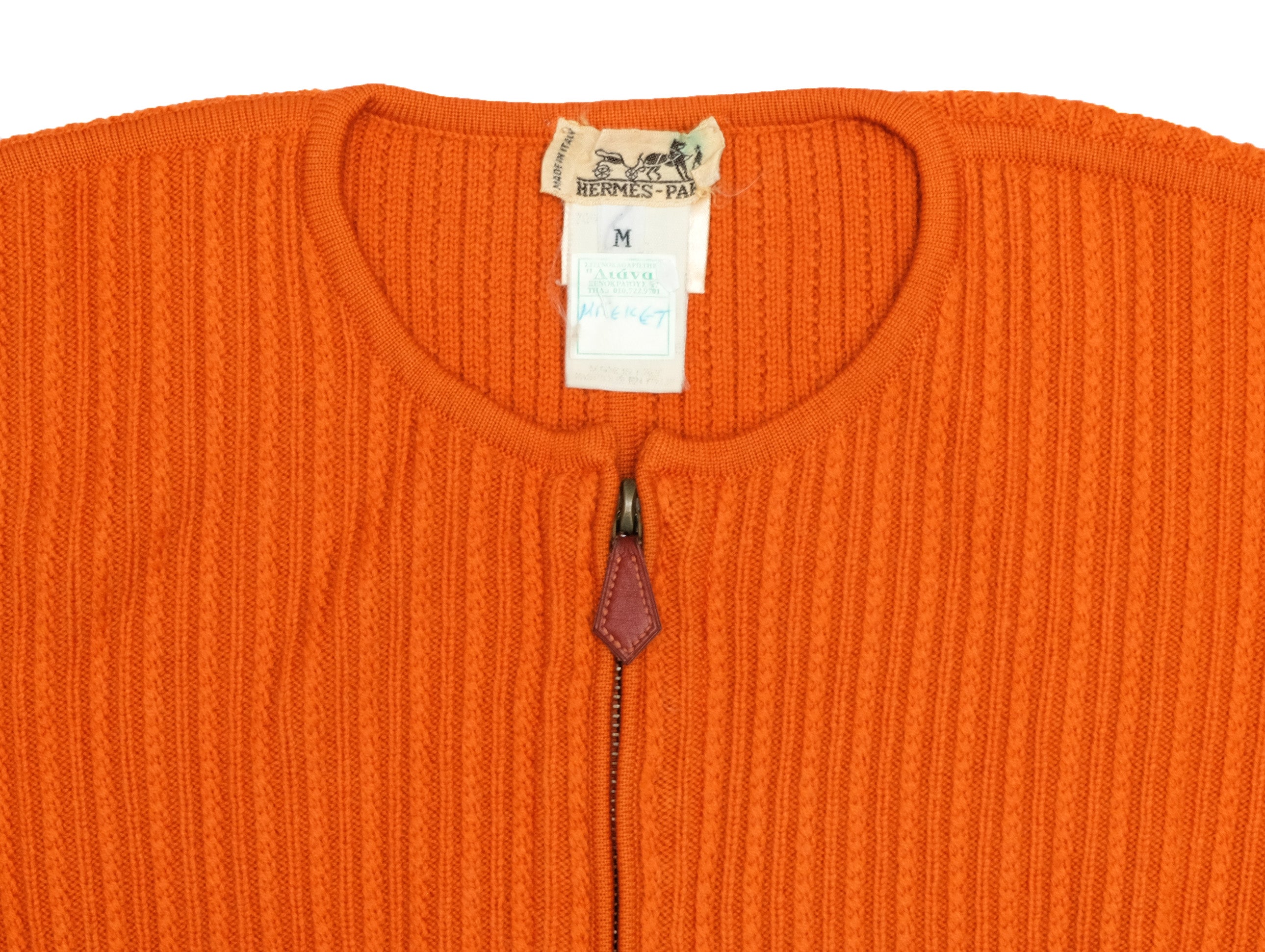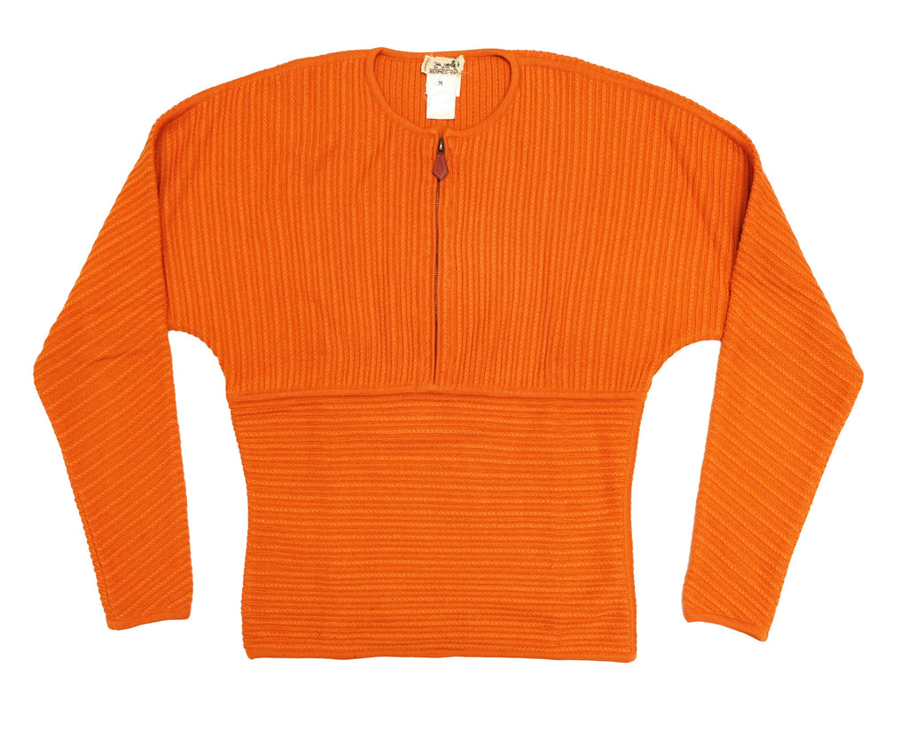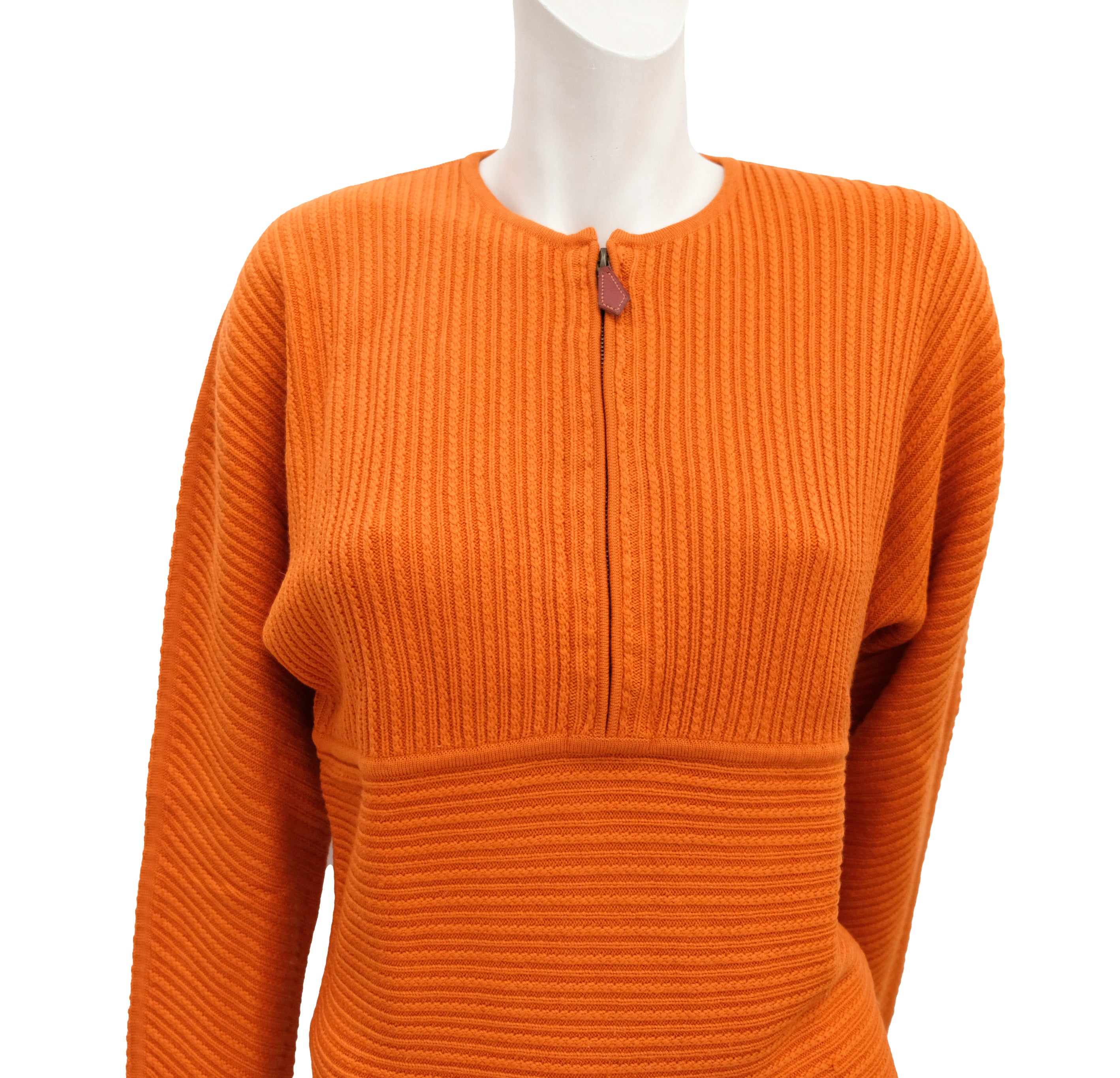 Hermès Vintage Half Zip Knit in Orange Wool & Cashmere Rib, M