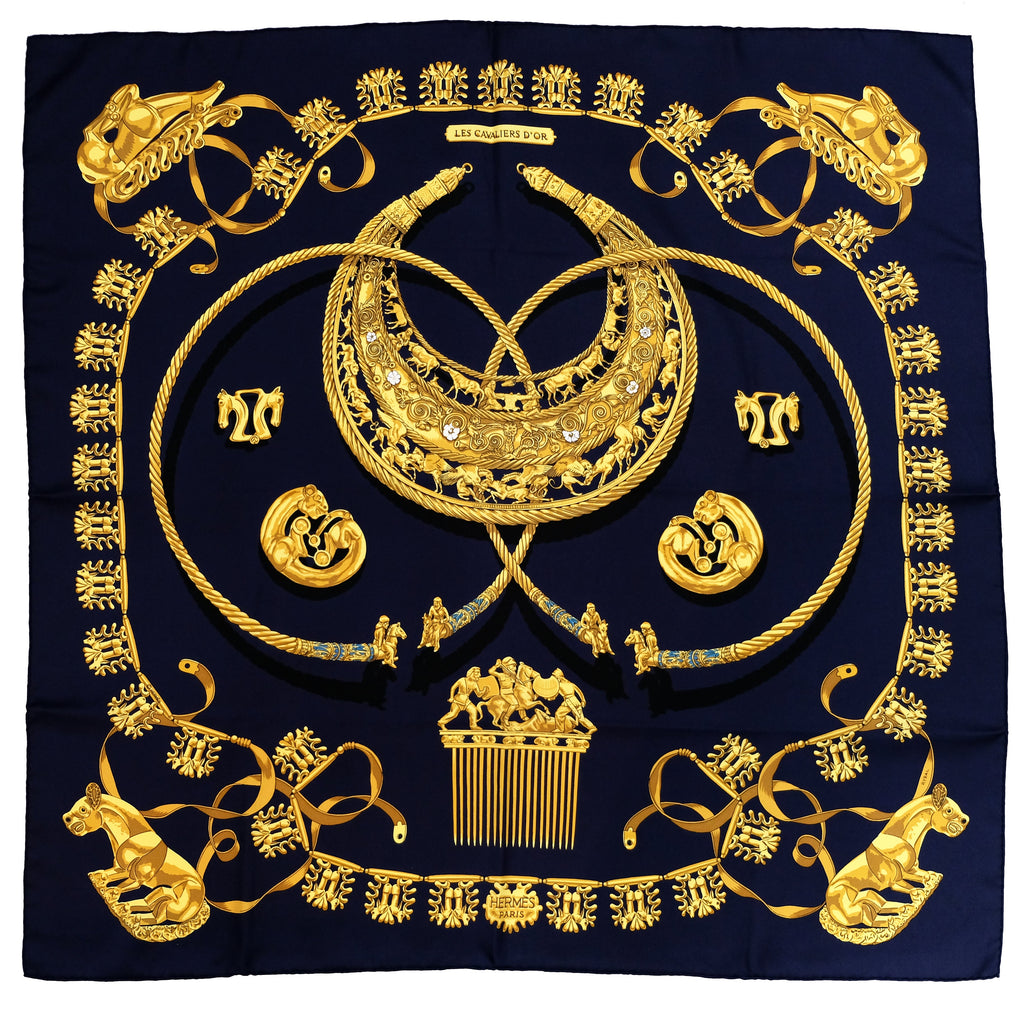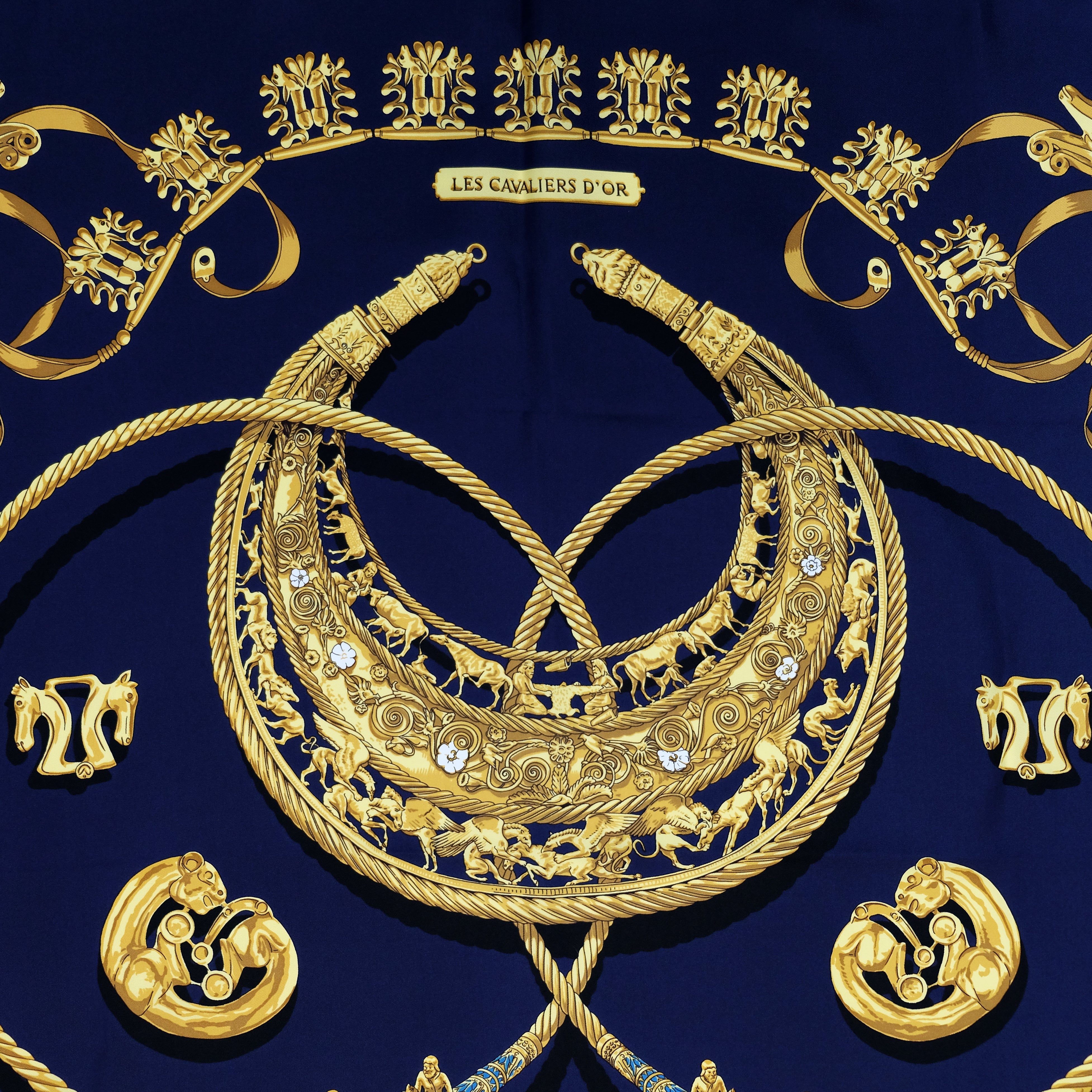Hermes Vintage Silk Square, "Les Cavaliers D'Or", 1975
