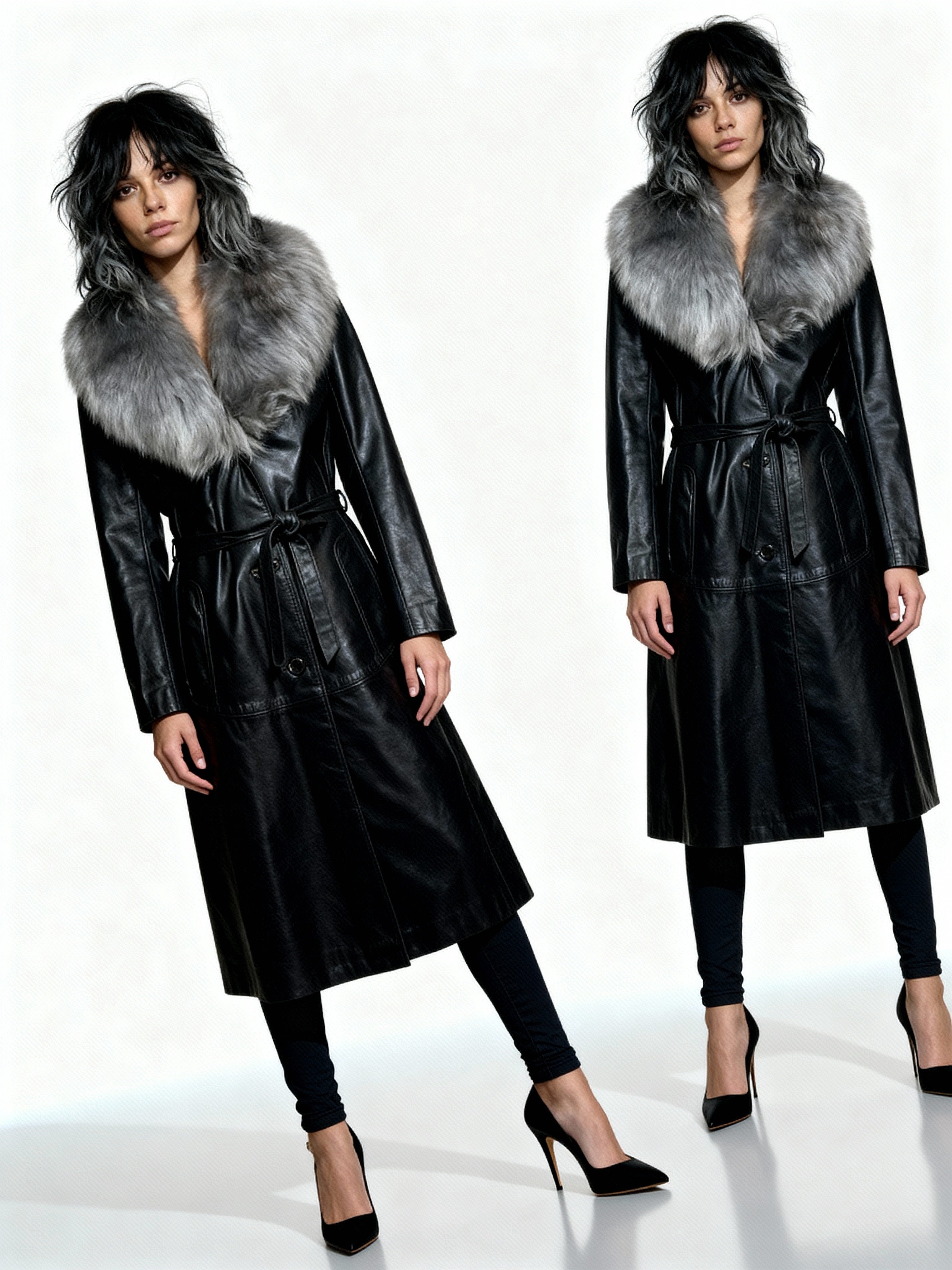 This Original 1970's Vintage Black Leather & Sheepskin Coat is in great vintage condition. Featuring buttons up the front, two pockets and a matching belt. It would fit a UK 12 - 16 due to its design and so please do check the measurements to avoid disappointment.