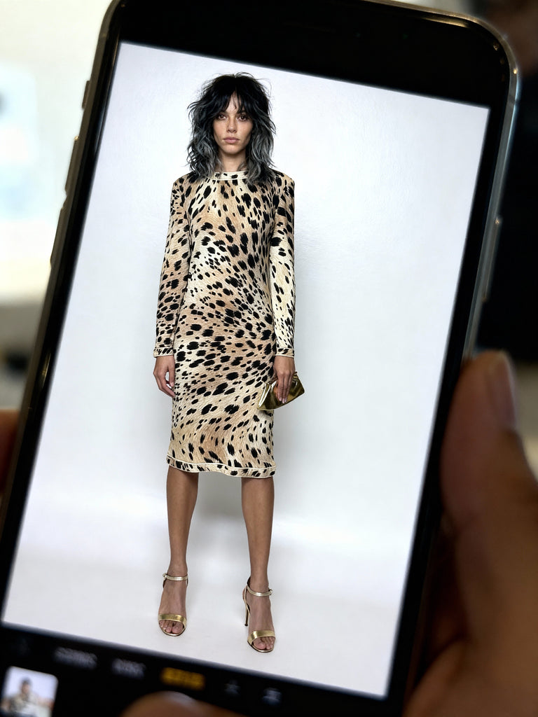 Original 1970's Vintage Leonard - Paris 100% Wool Leopard Print Dress UK 12 - 14