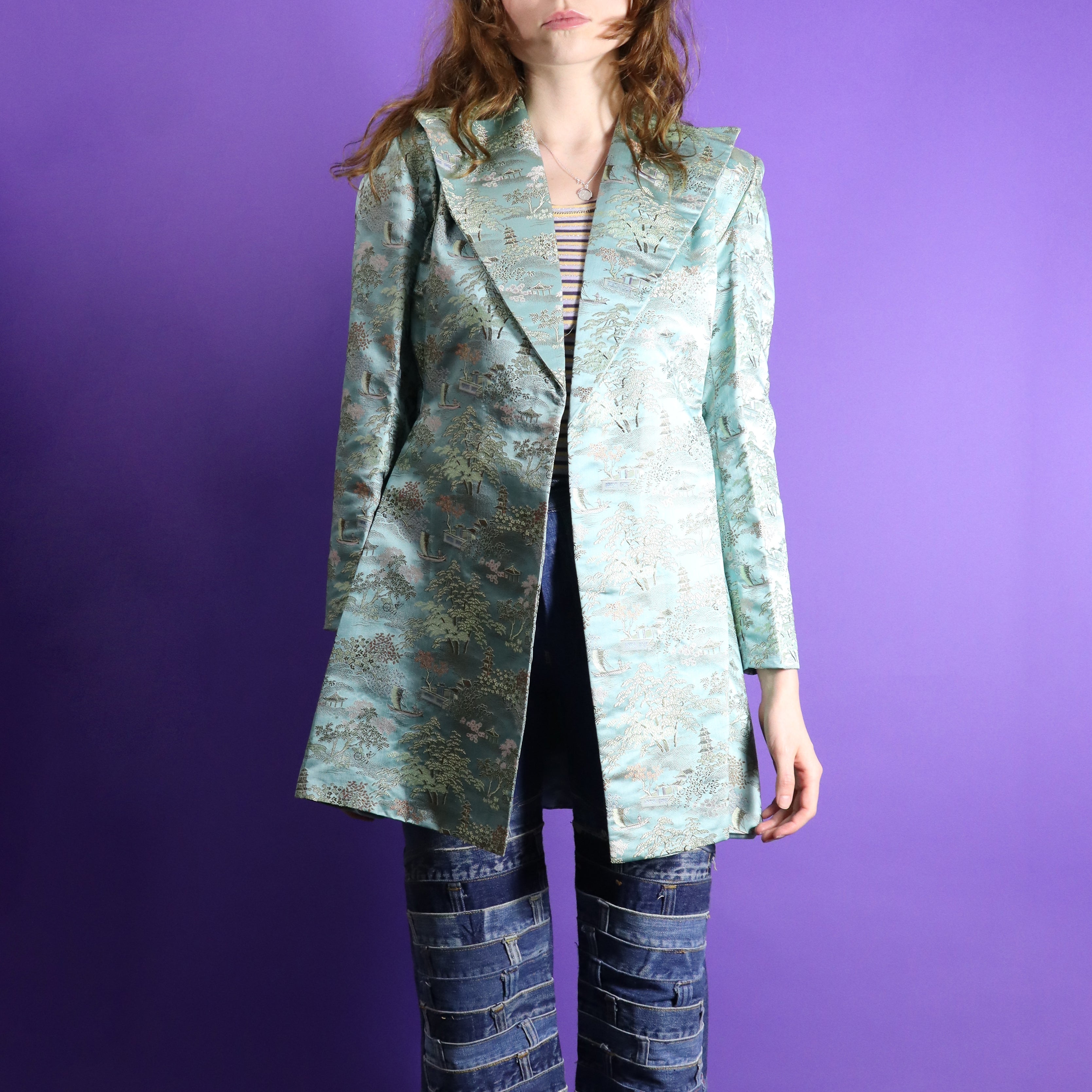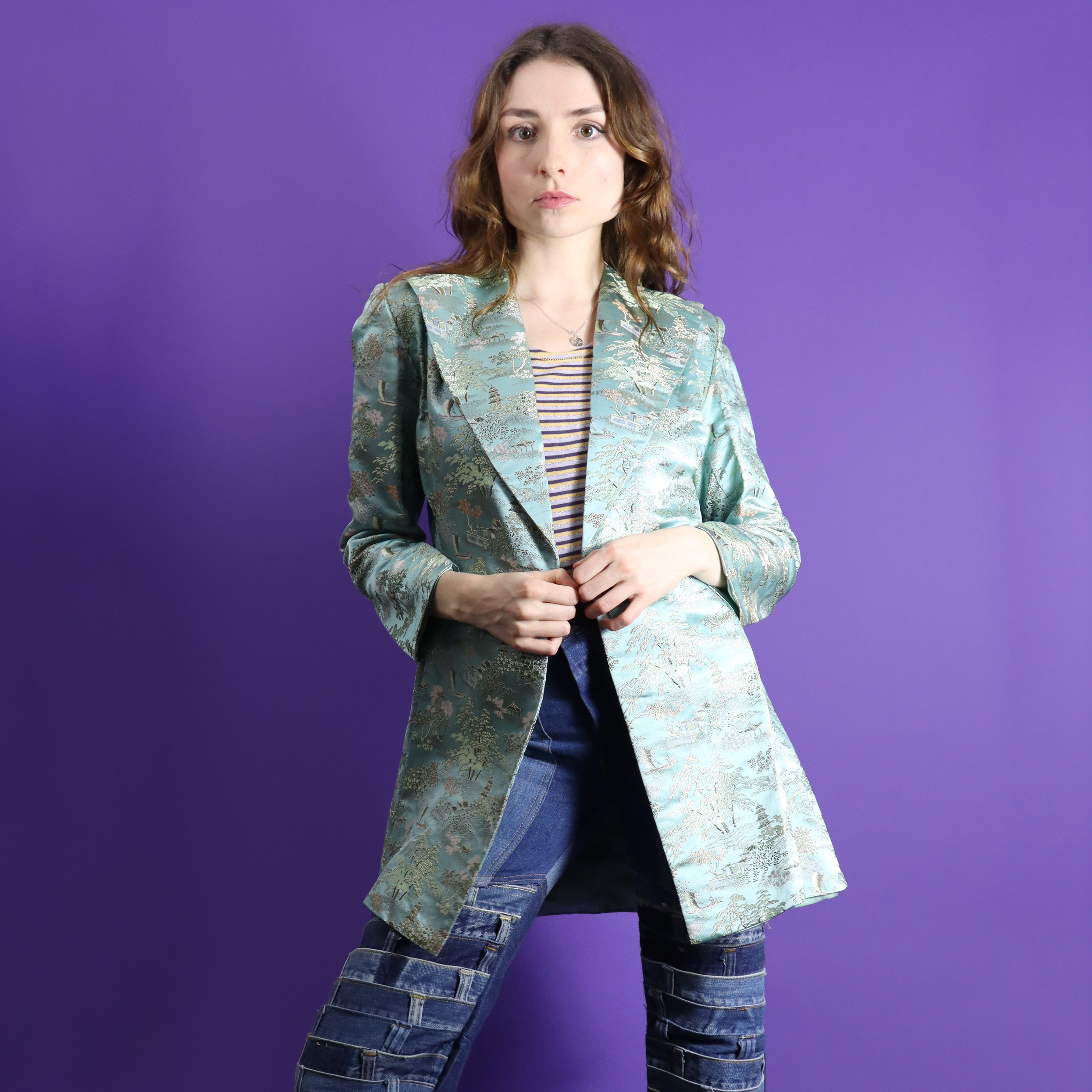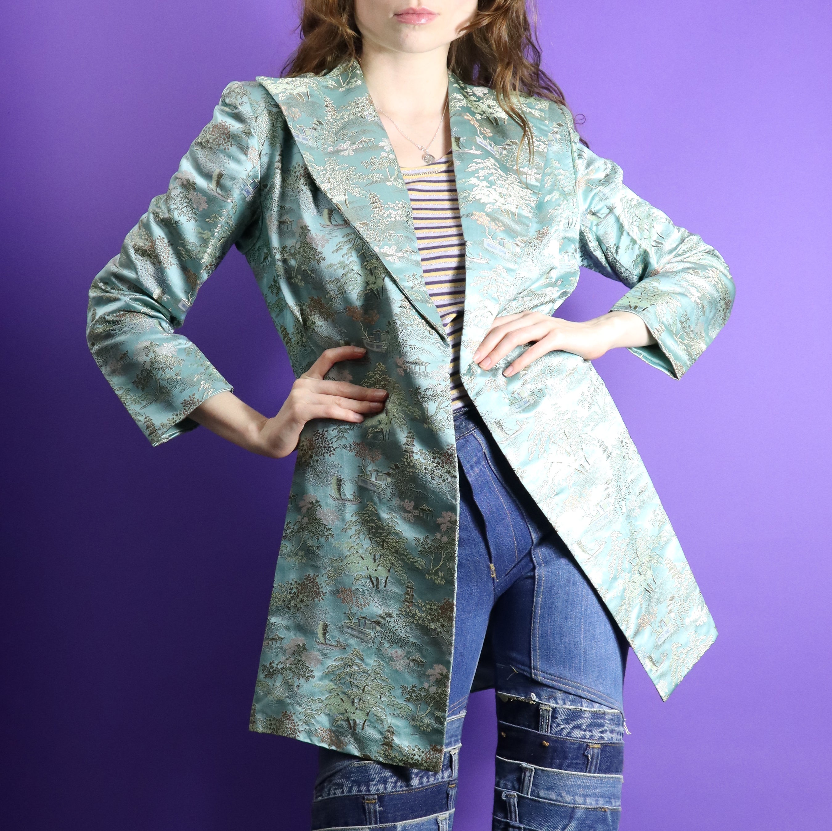 Vintage 1970s Chinese Embroidered Silk Wide Lapel Blazer Jacket