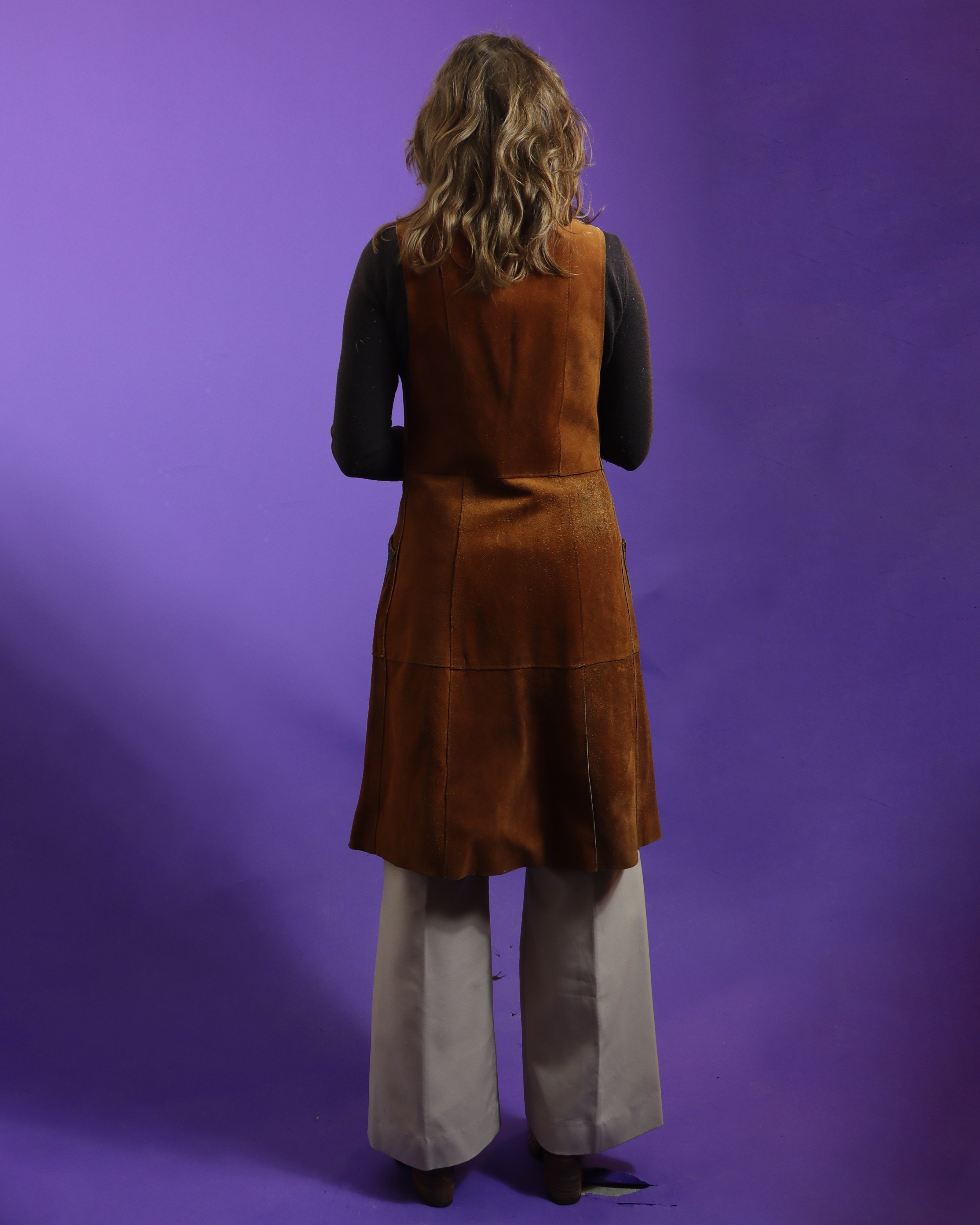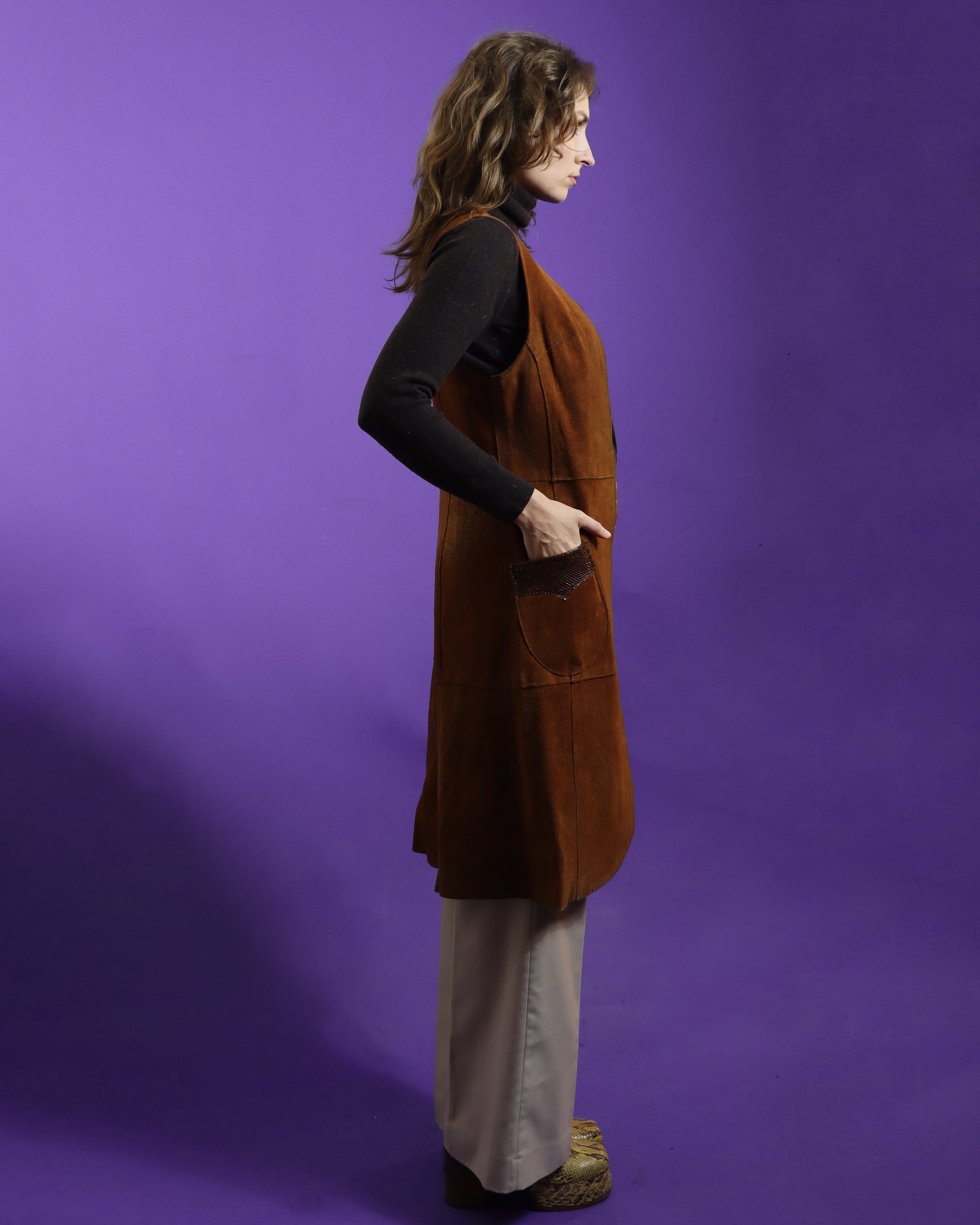 Vintage 1970s Snakeskin Detail Suede Duster Vest