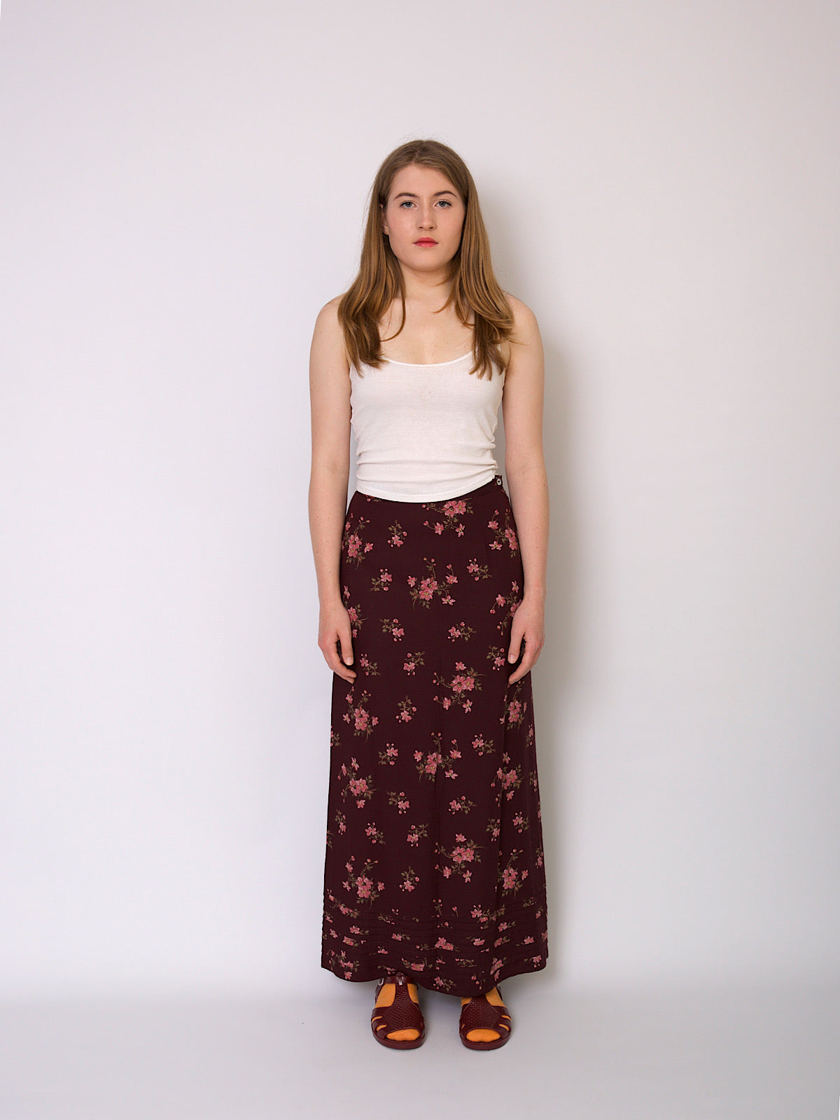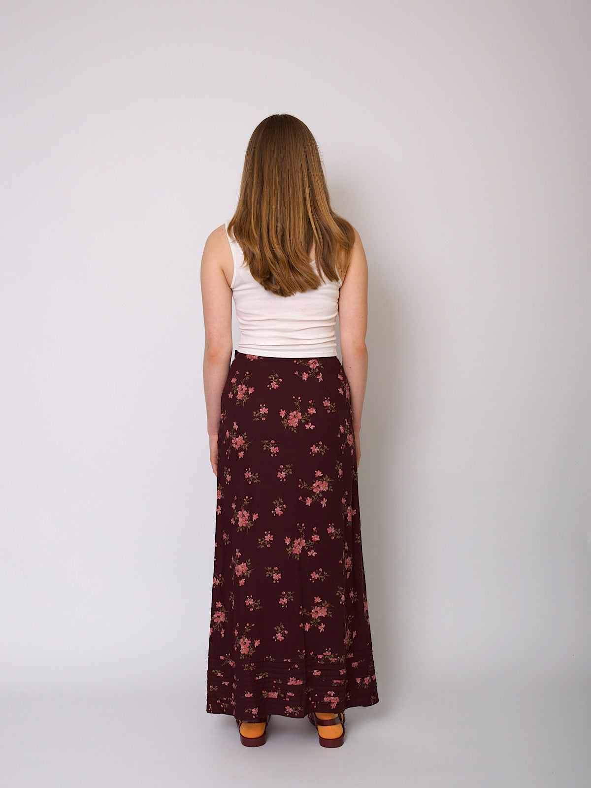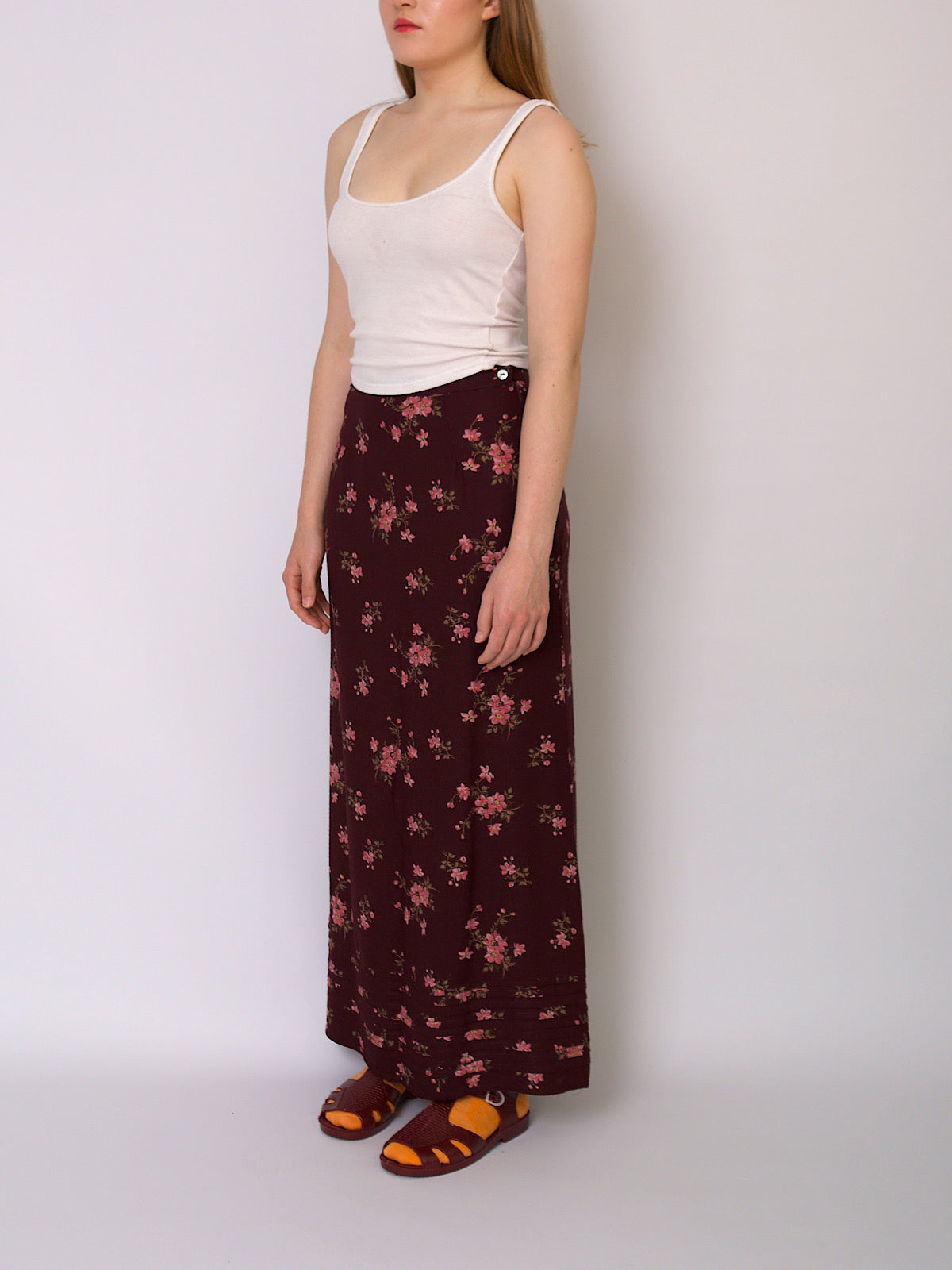 Vintage 90s long A line skirt burgundy with florals