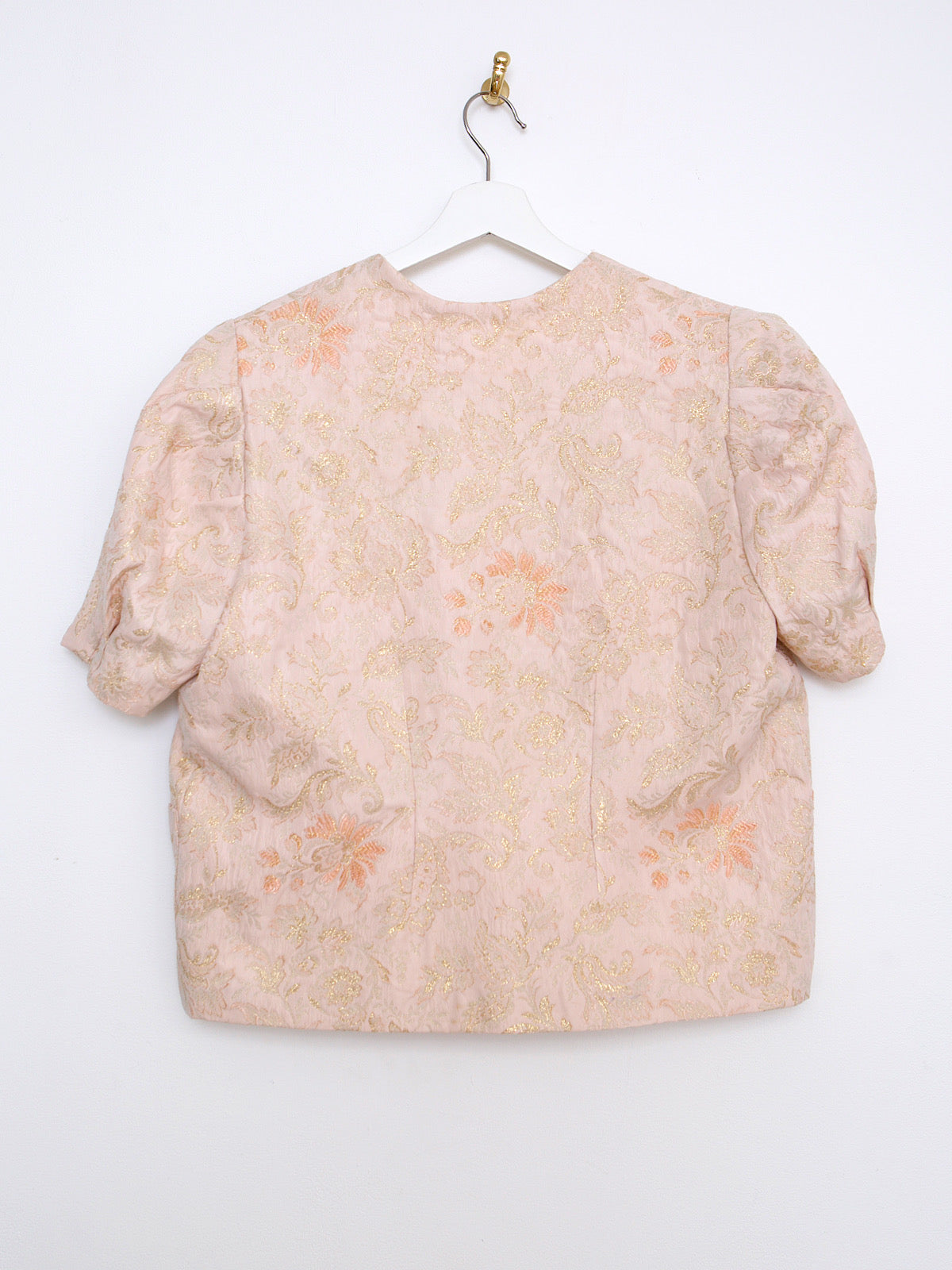Boxy shape with pretty puffy sleeves and small gold buttons.