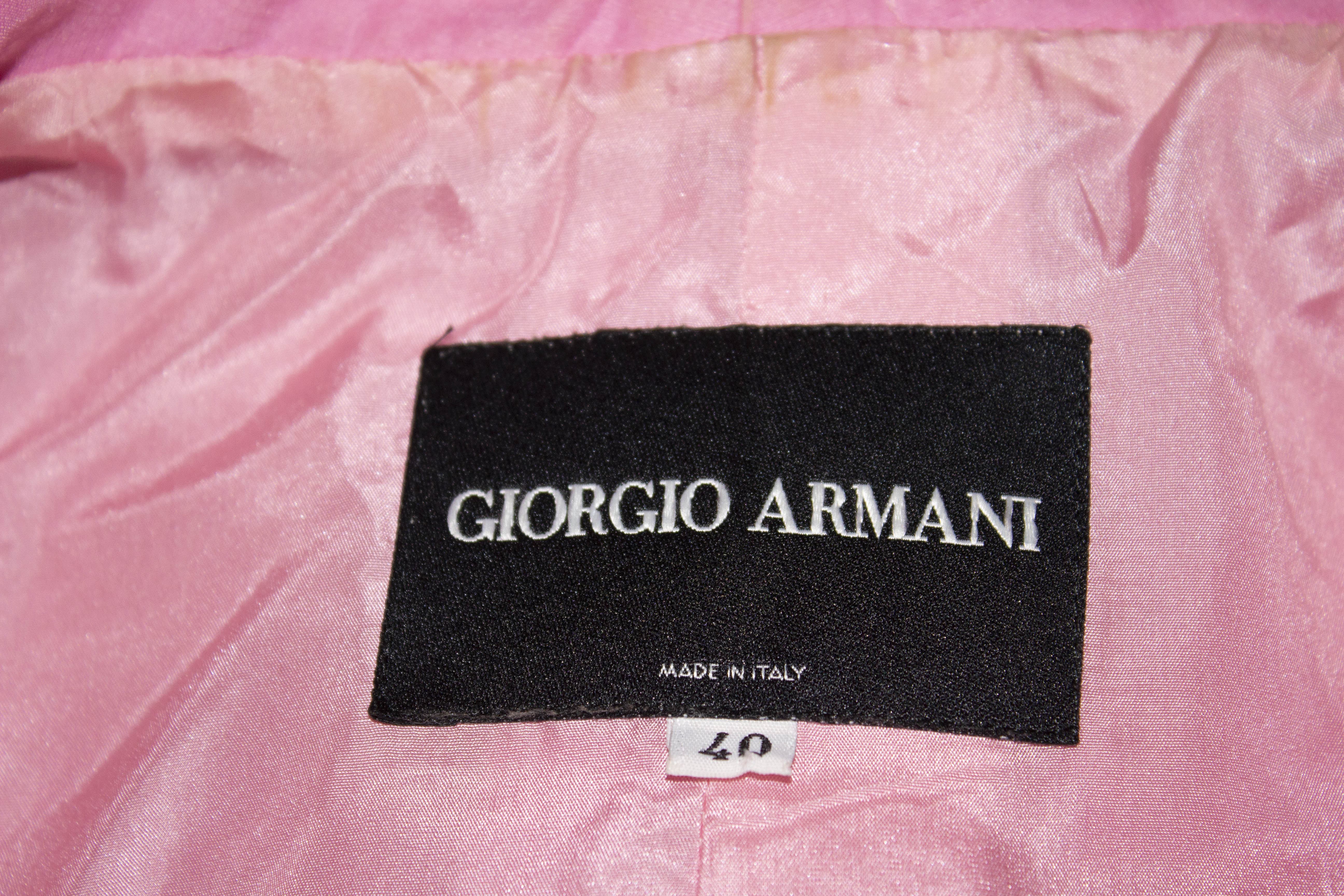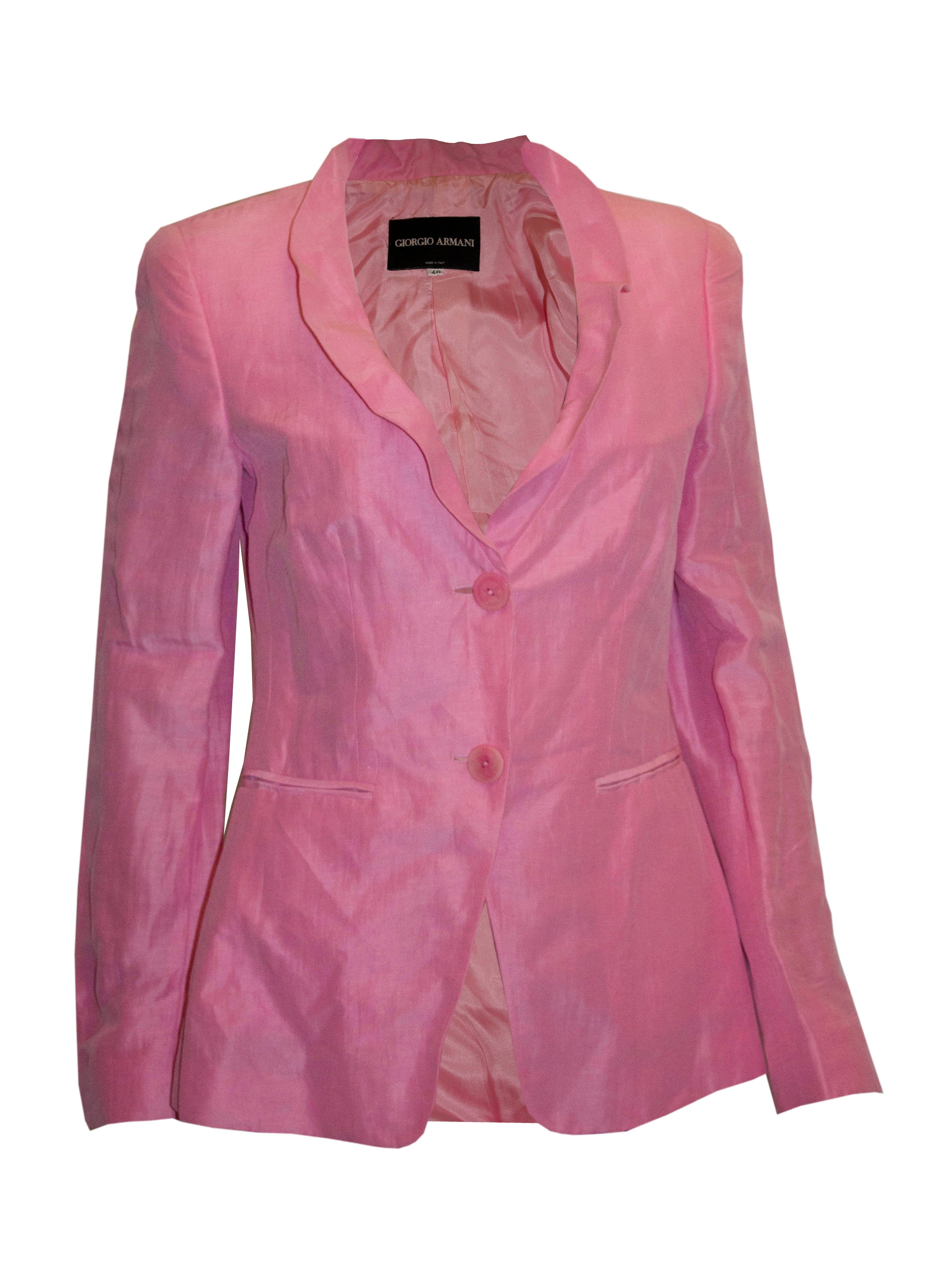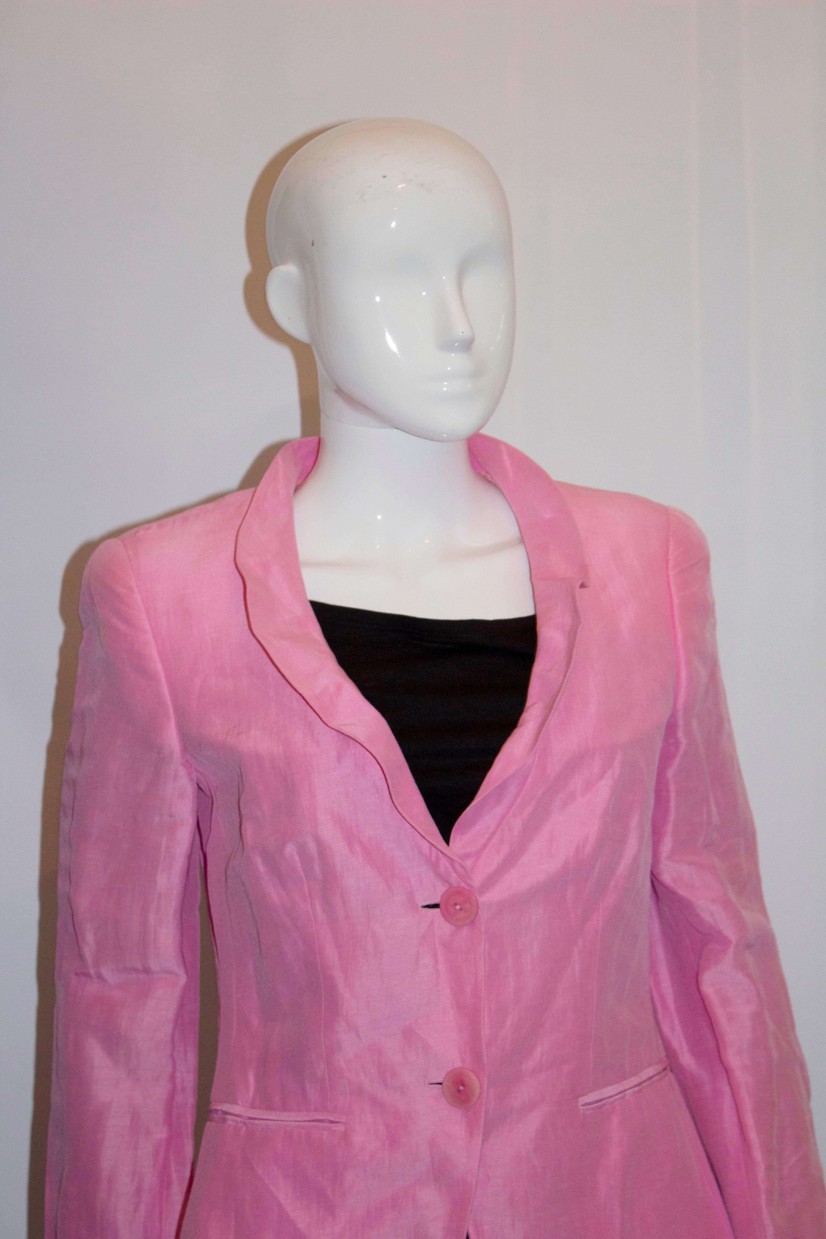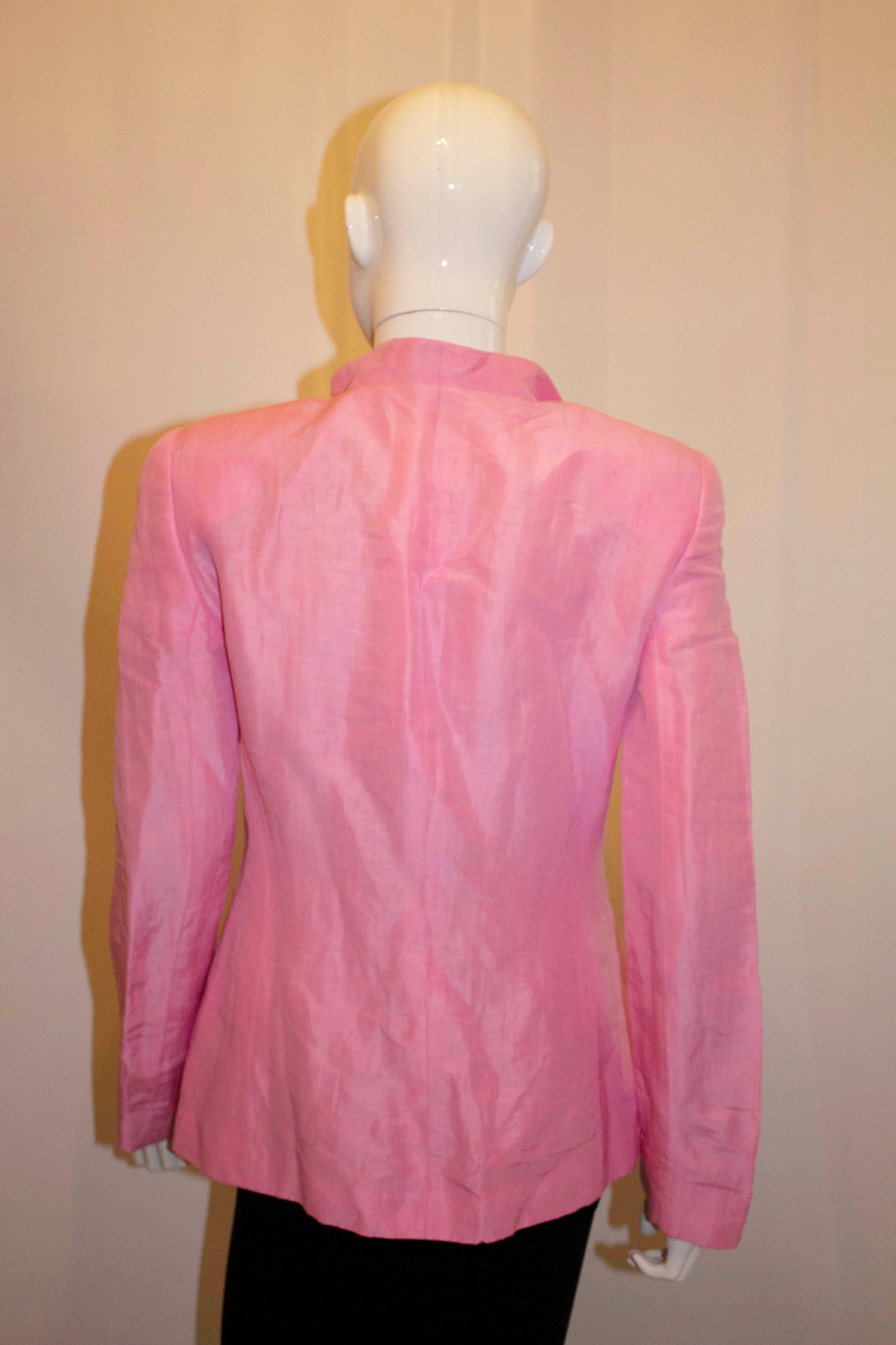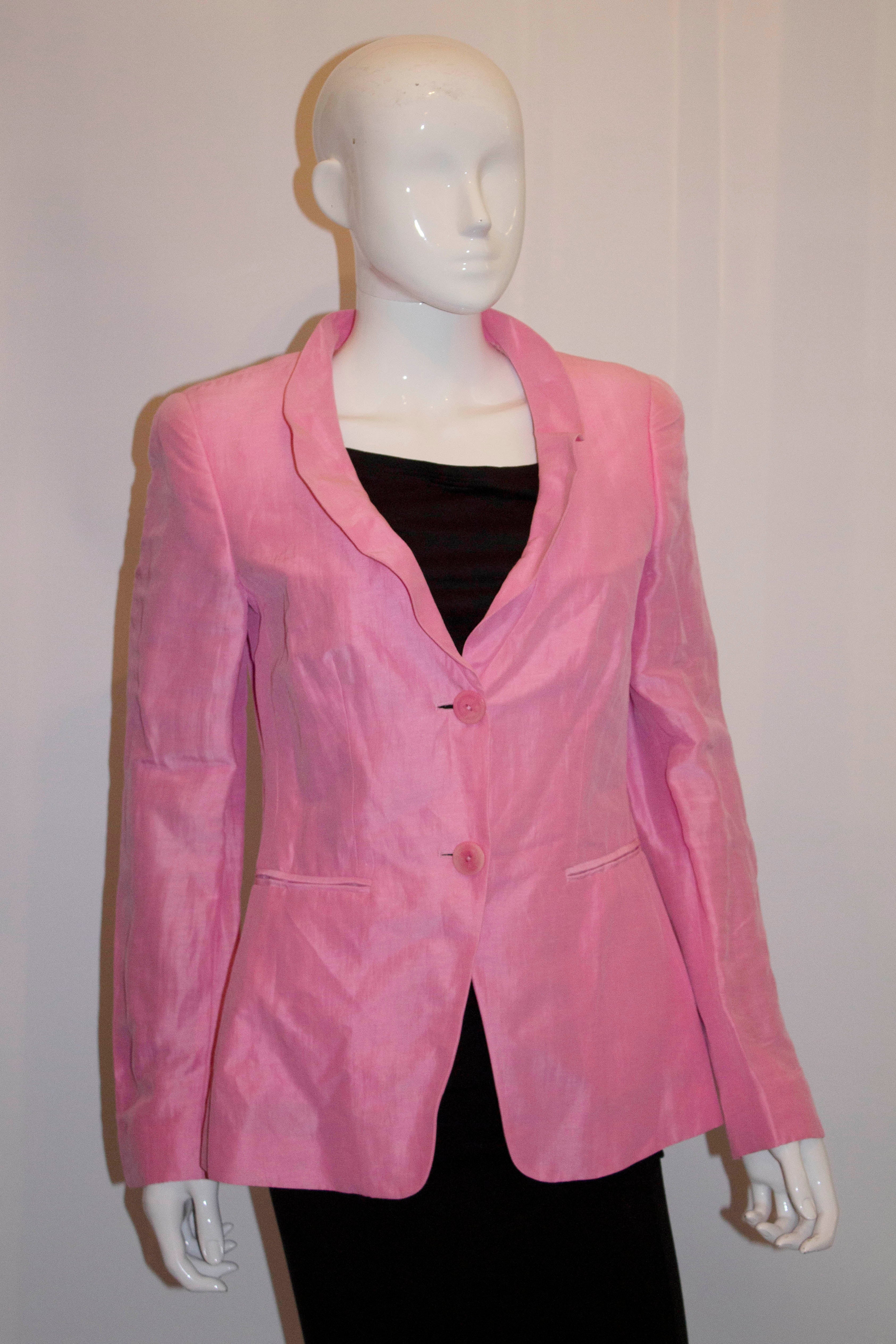 A pretty pink vintage jacket by Giorgio Armani, in a silk and linen mix. The jacket has a two button fastening and is fully lined.