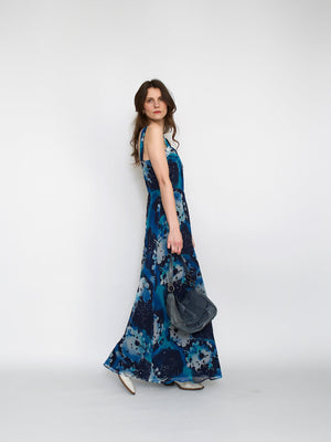 Vintage maxi dress blue florals shoulder straps by Vera Mont