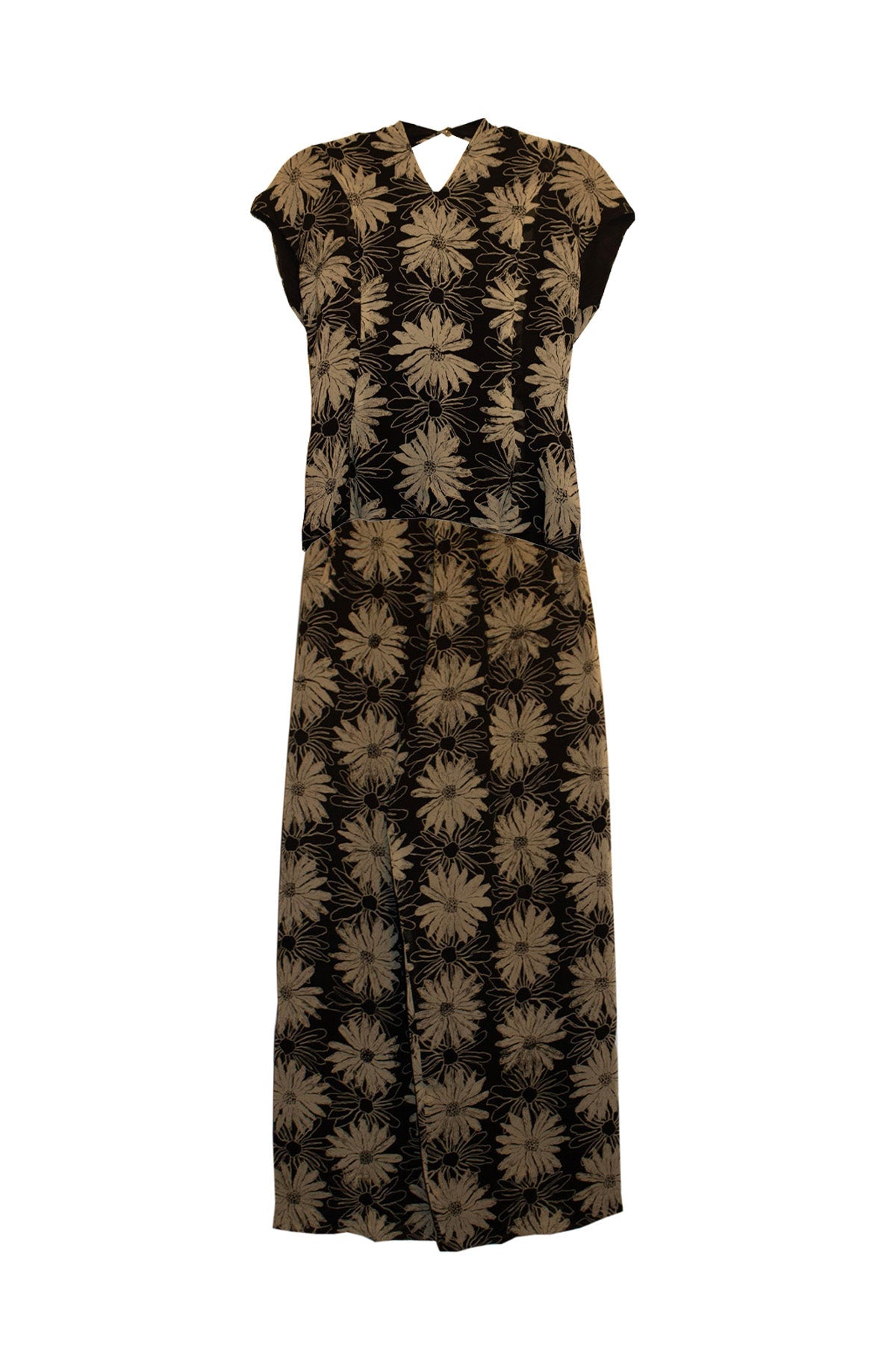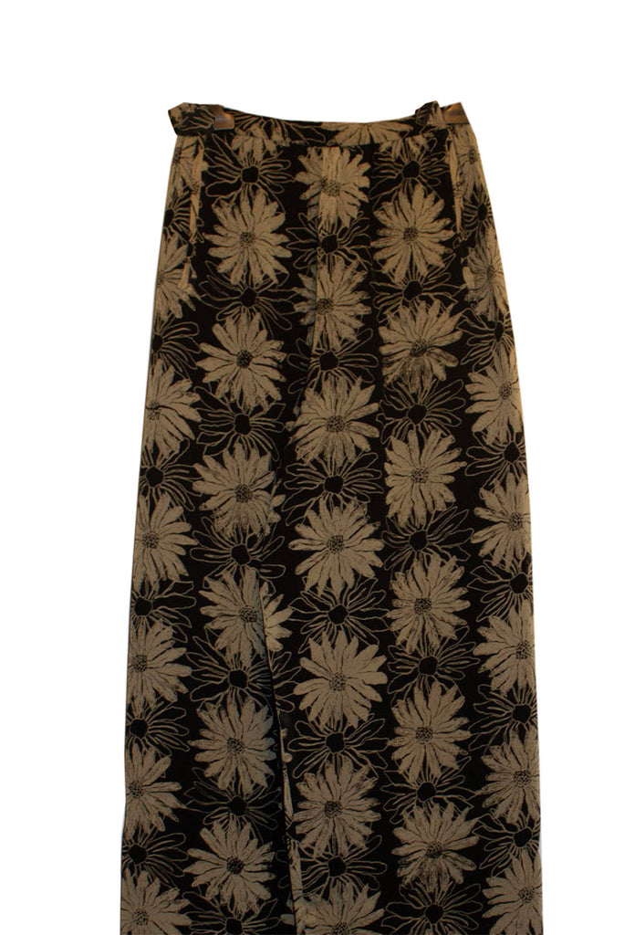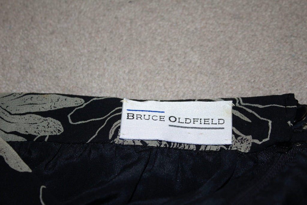 A stunning vintage silk pant suit by British designer Bruce Oldfield.  The custom made silk suit is in a pretty print with lined trousers and top. The top has a side zip opening and button at the back. They are both fully lined.