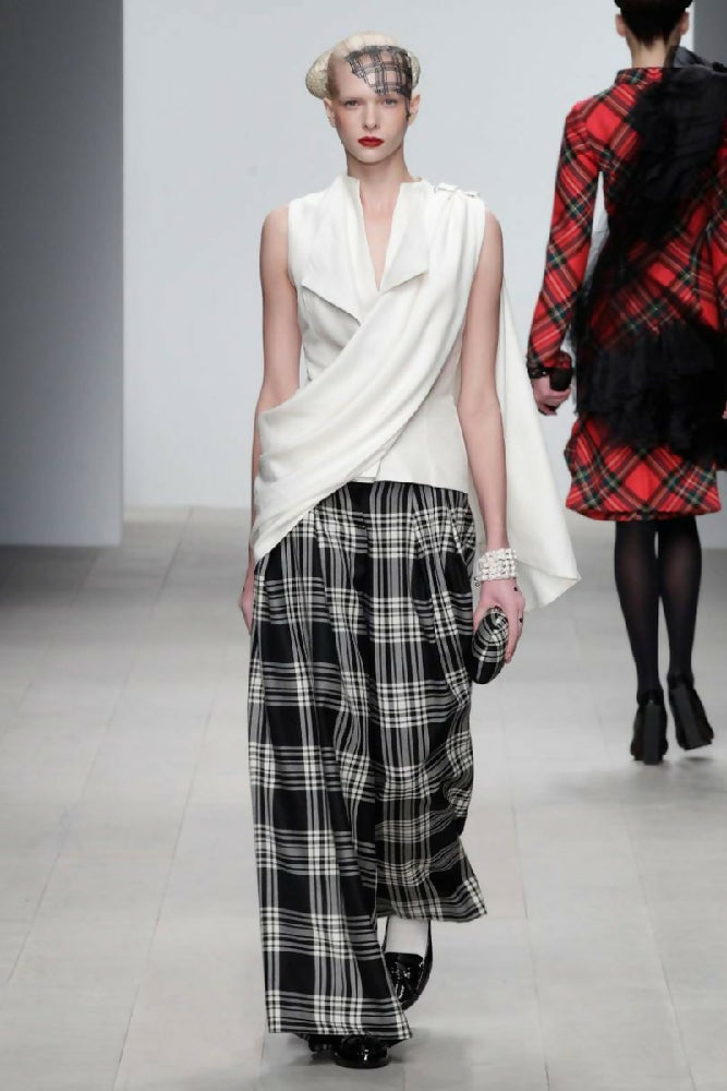 Waistcoat with Wrap A/W 2012: Fitted double layered waistcoat has two front layers attached to a single back piece. The top layer has a lapel and centre front buttons with buttonholes for opening and closing. There is a long scarf attached inside the side seams of the waistcoat, draping across the front and shoulders. Outer Fabric: silk and linen mix in off white. Lining:100% silk. Size 10 LAST ONE