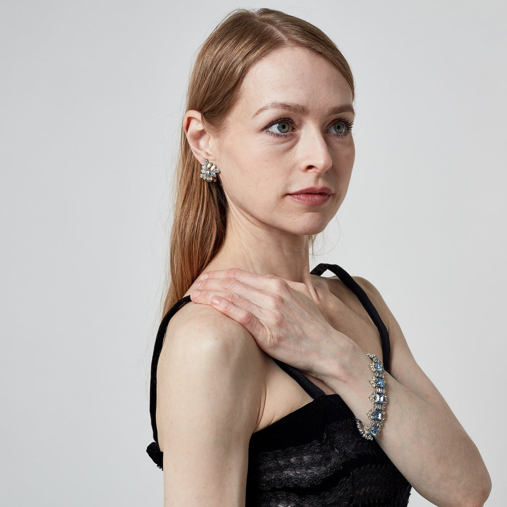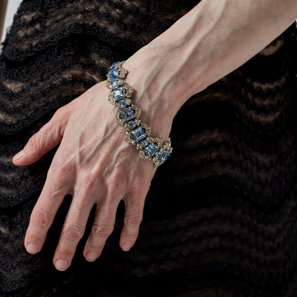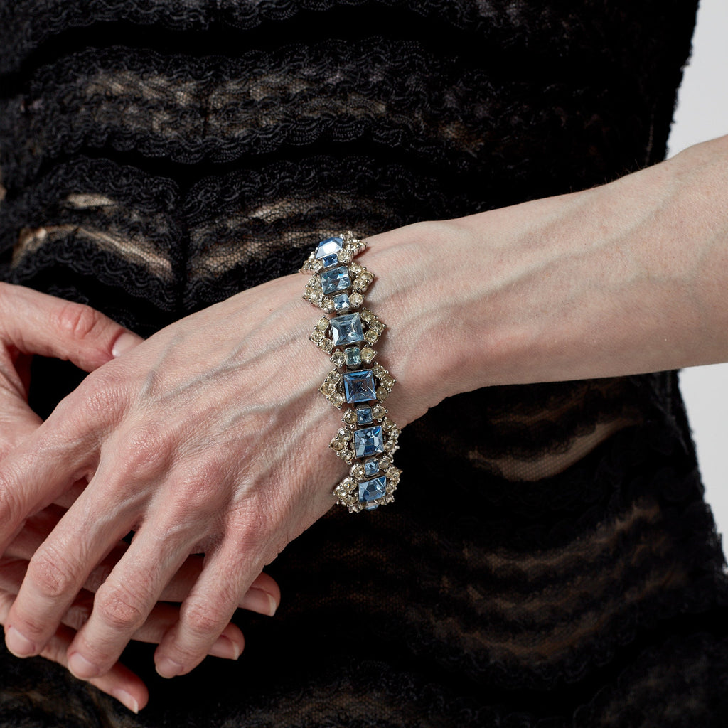 1950s Bogoff Clear and Aquamarine Encrusted Rhinestone Bracelet