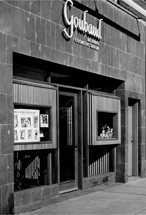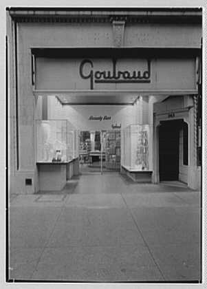 This tactile gold minaudiere clutch bag was retailed by Goubaud de Paris, a luxury perfume and beauty salon on Fifth Avenue, New York. The beauty salon opened in the 1930s and from the 1950s, successfully retailed perfume, jewellery and accessories to its high society clientele. The business closed in the early 1970s.