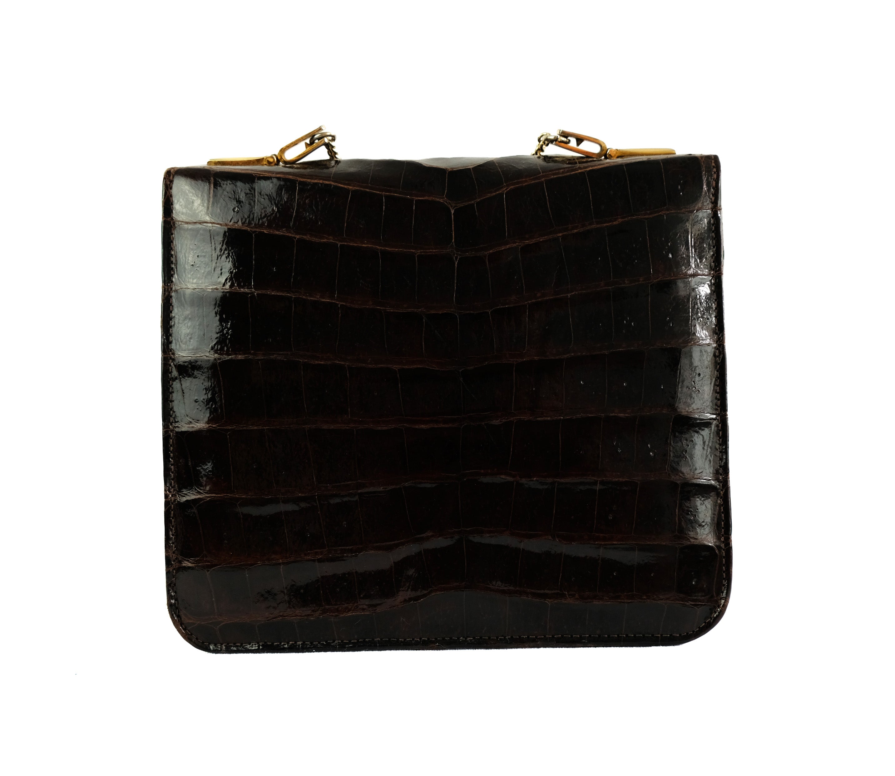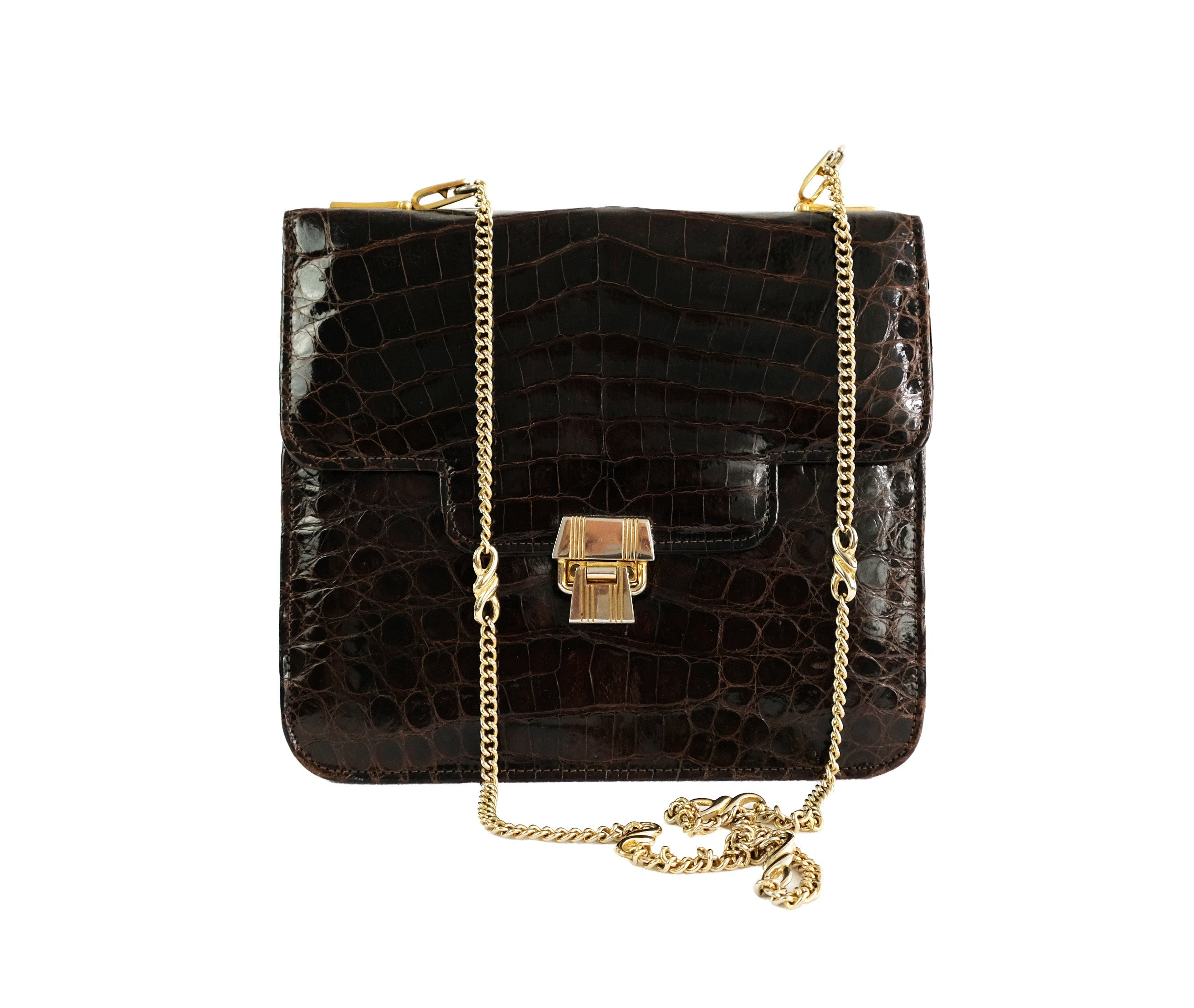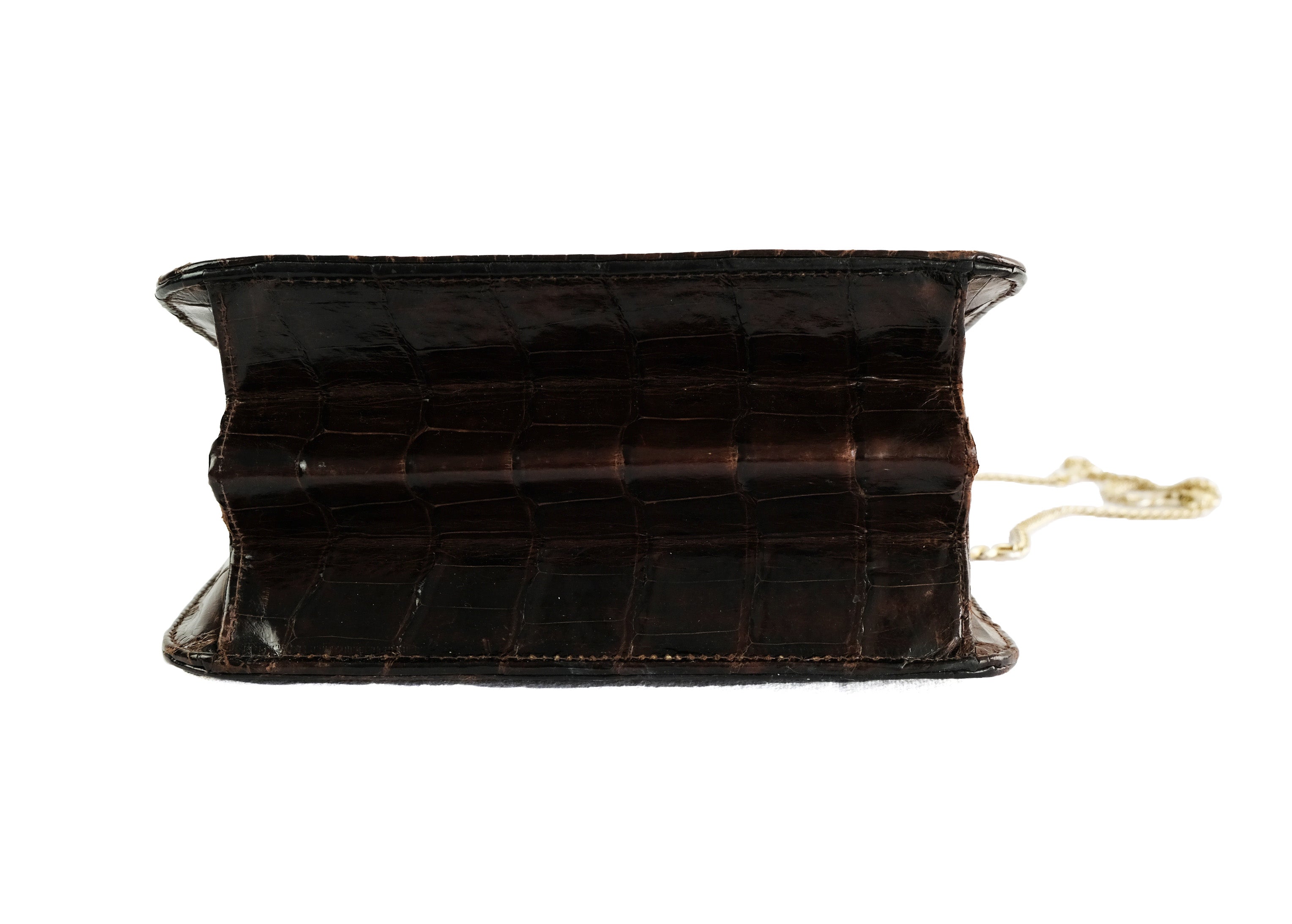 1970s Vintage Boxy Reptile Handbag with Gilt Chain, Small