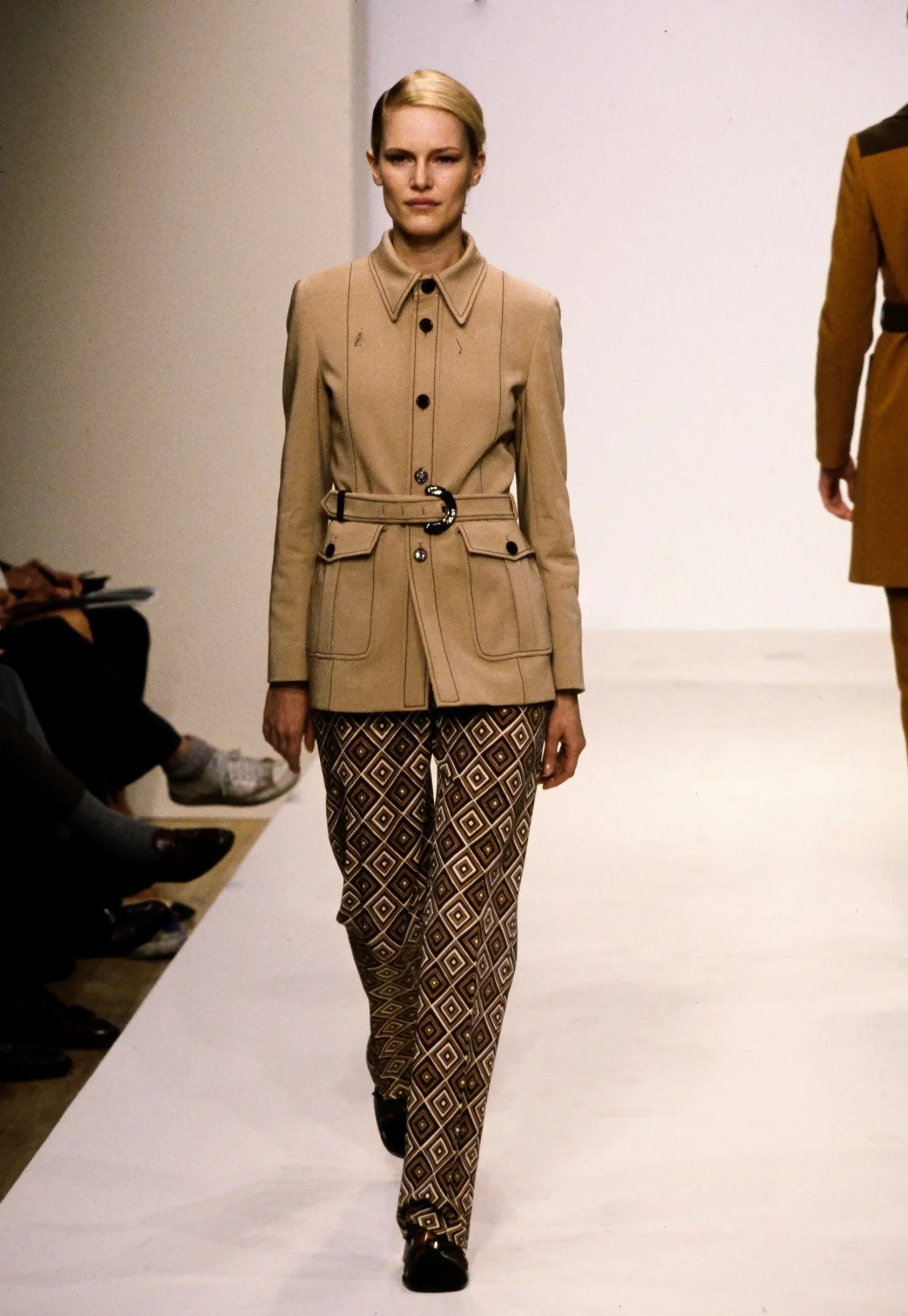 1996 Prada Runway Beige Safari Suit Sleeveless Top and Skirt
