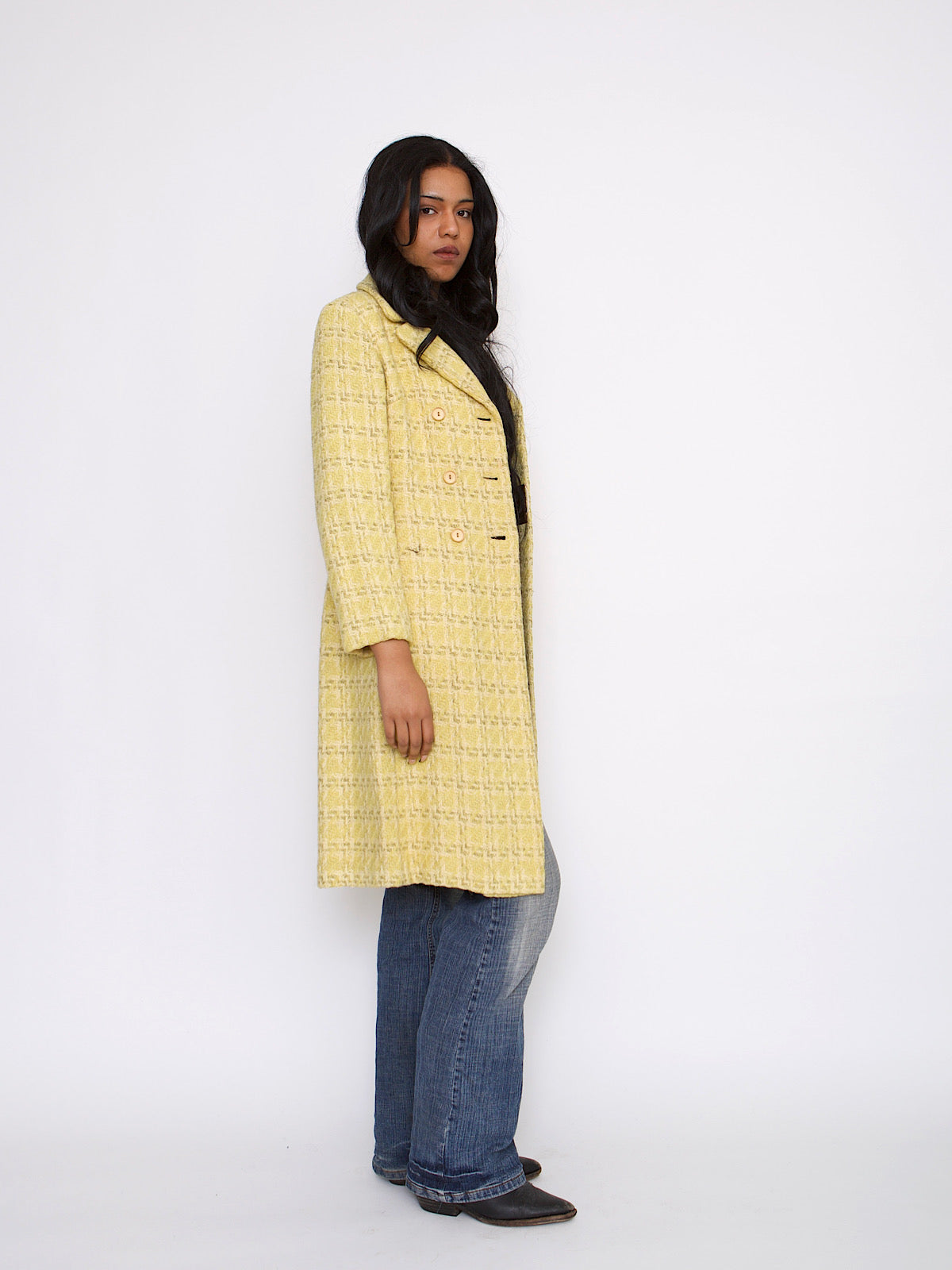 60S VINTAGE YELLOW TWEED COAT