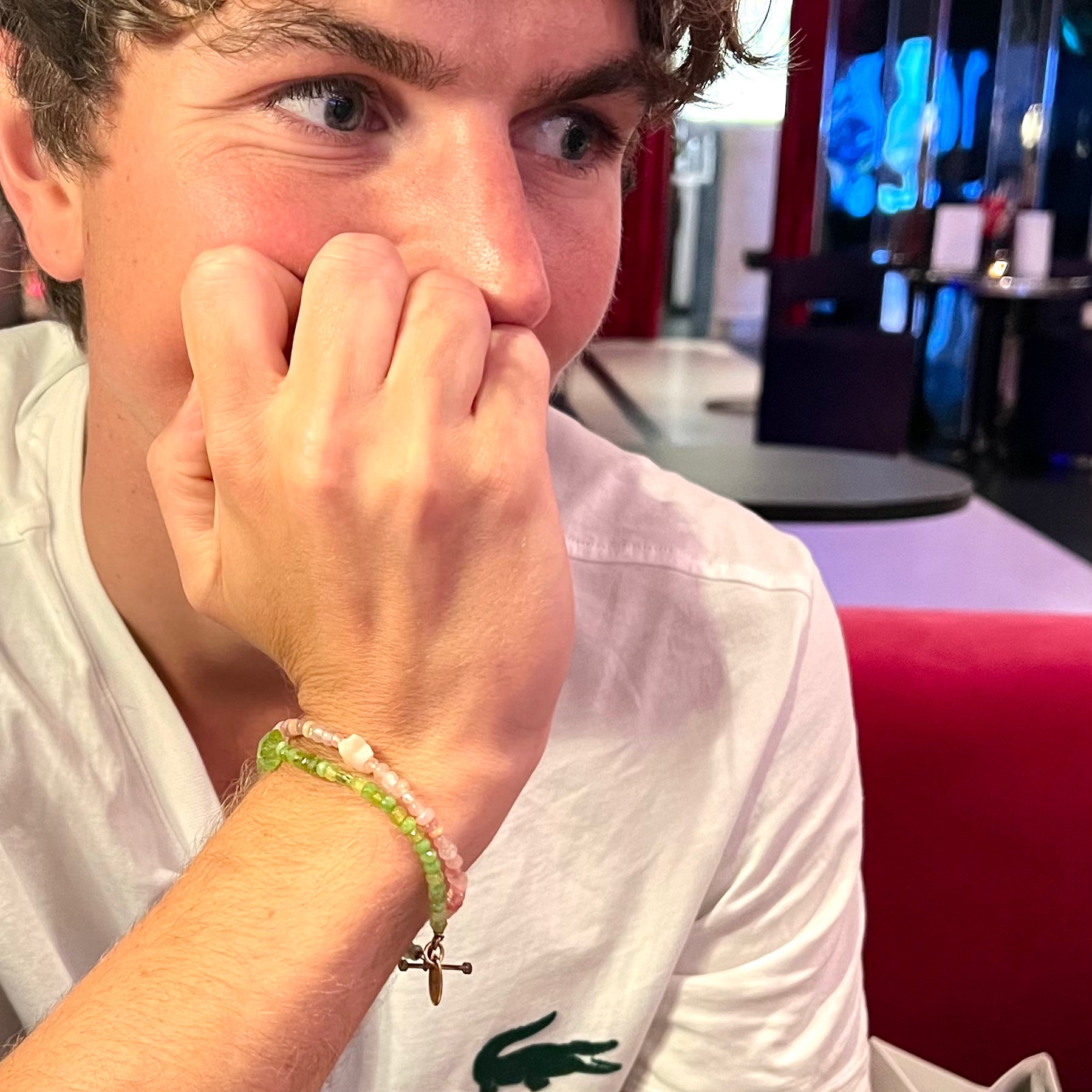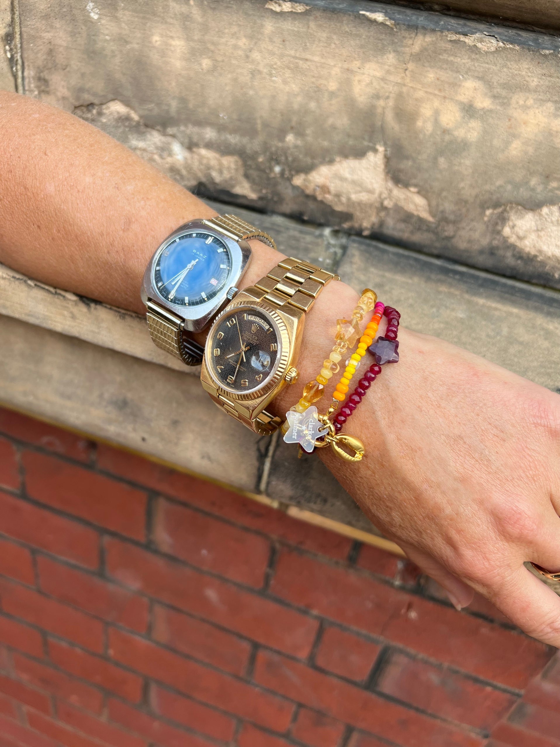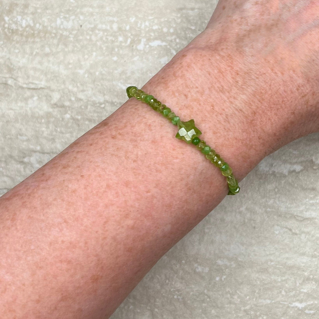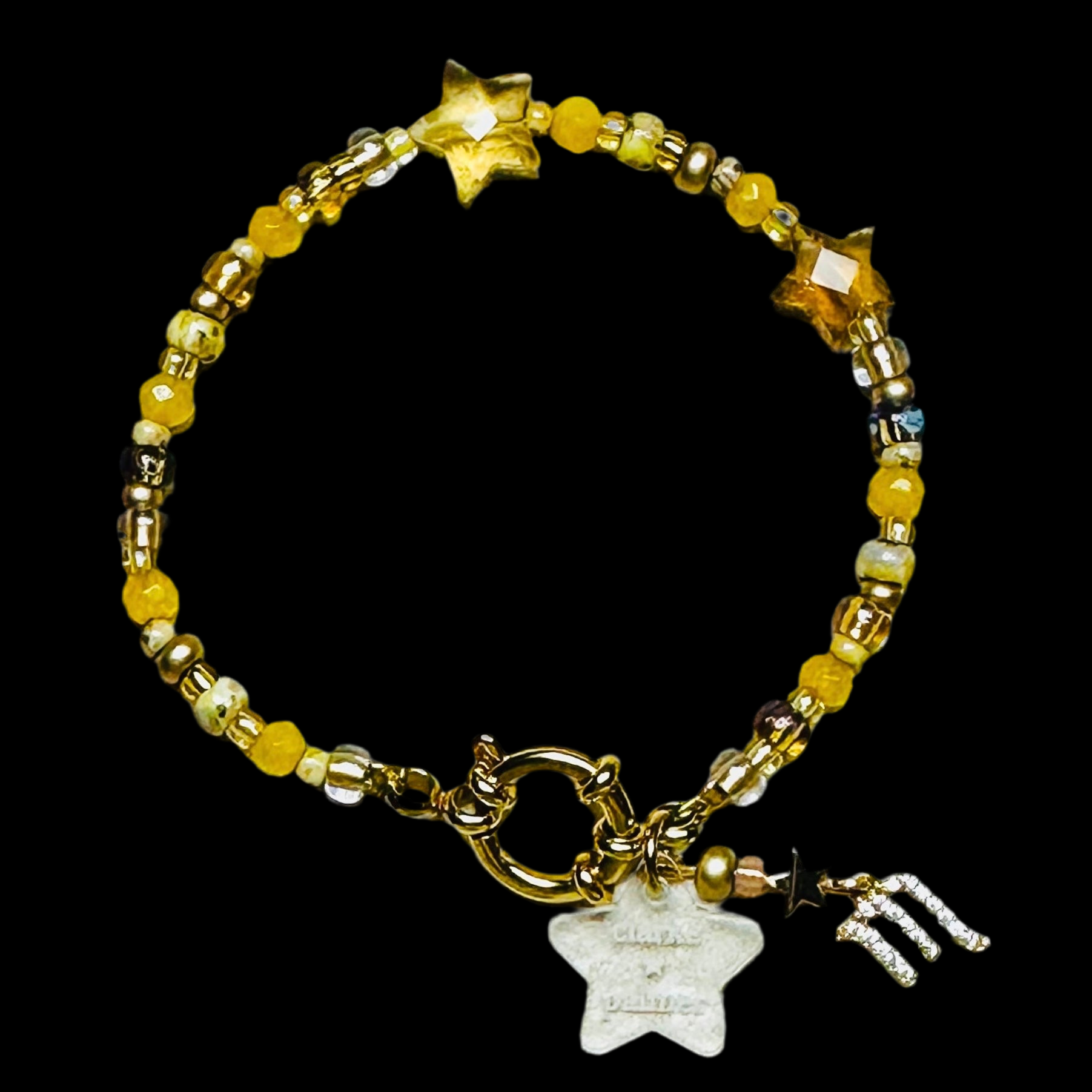 Hand made from sustainably sourced hand cut real gemstone star and rondelles, it has a 24kt gold vermeil heart shaped clasp.