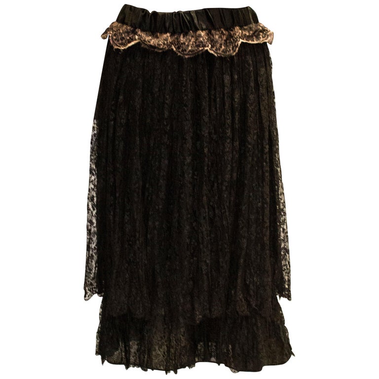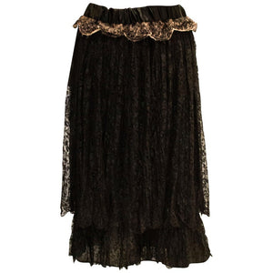 A wonderful vintage skirt made out of black lace. The skirt is made up of two layers of lace with a satin waistband with a wide satin covered elastic waistband. Waist to fit :28'' -31'' , length 34''