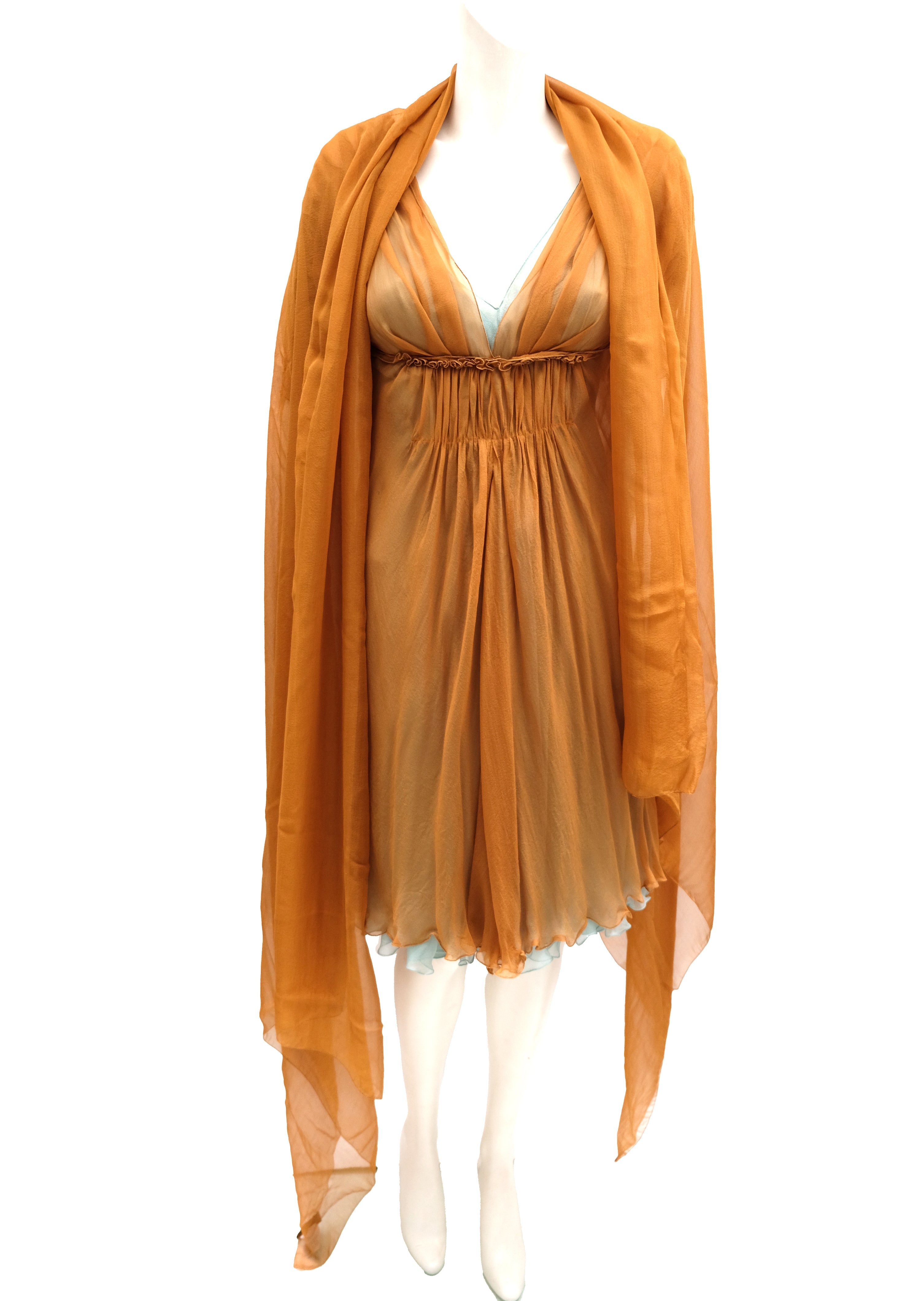 Alberta Ferretti Layered Chiffon Dress with Matching Stole, UK8