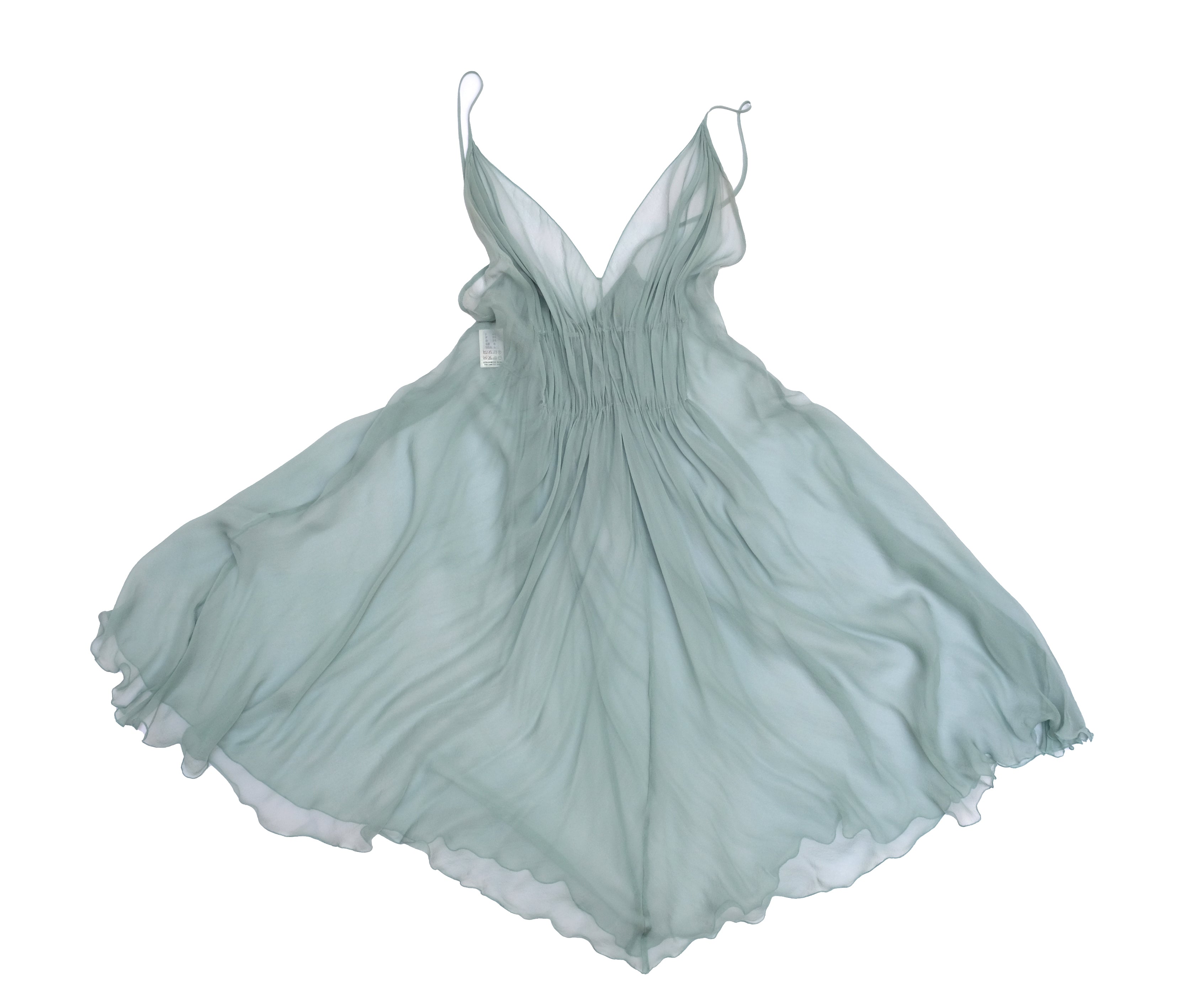 An ethereal party dress by Alberta Ferretti, in layers of gossamer fine silk chiffon.