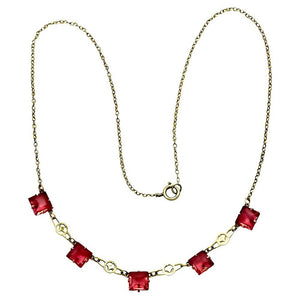 ART DECO CHAIN NECKLACE WITH SQUARE ROUGE PINK GLASS CRYSTALS