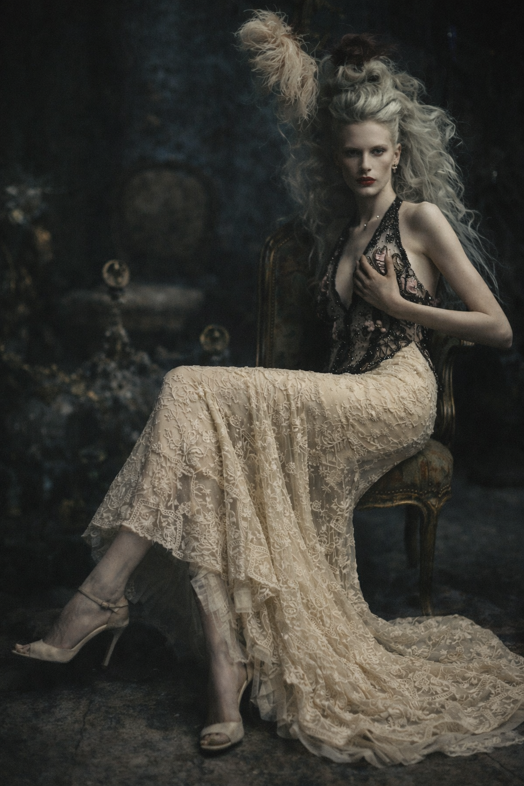 August, reworked Victorian French lace and 20s beaded dress