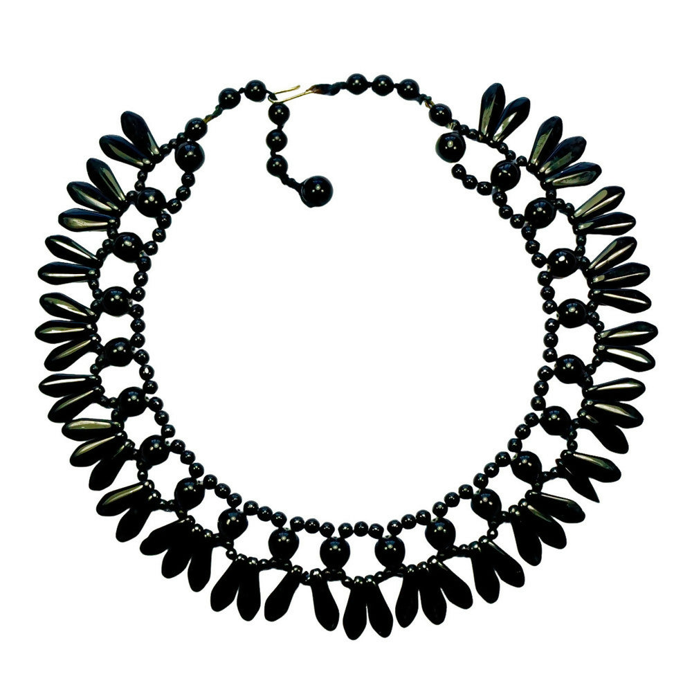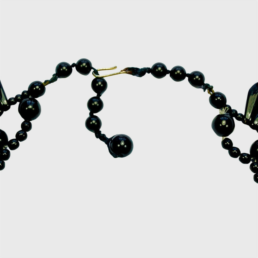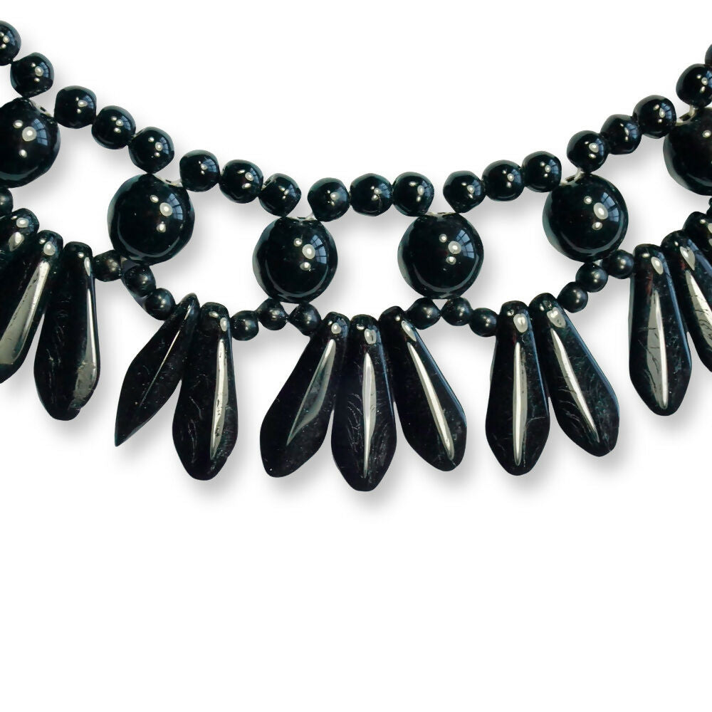 BLACK GLASS DROP FRINGE NECKLACE CIRCA 1950S