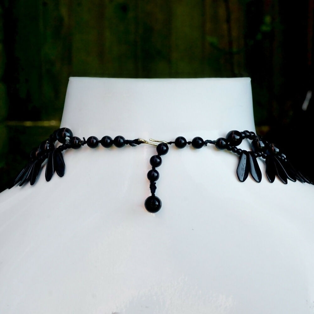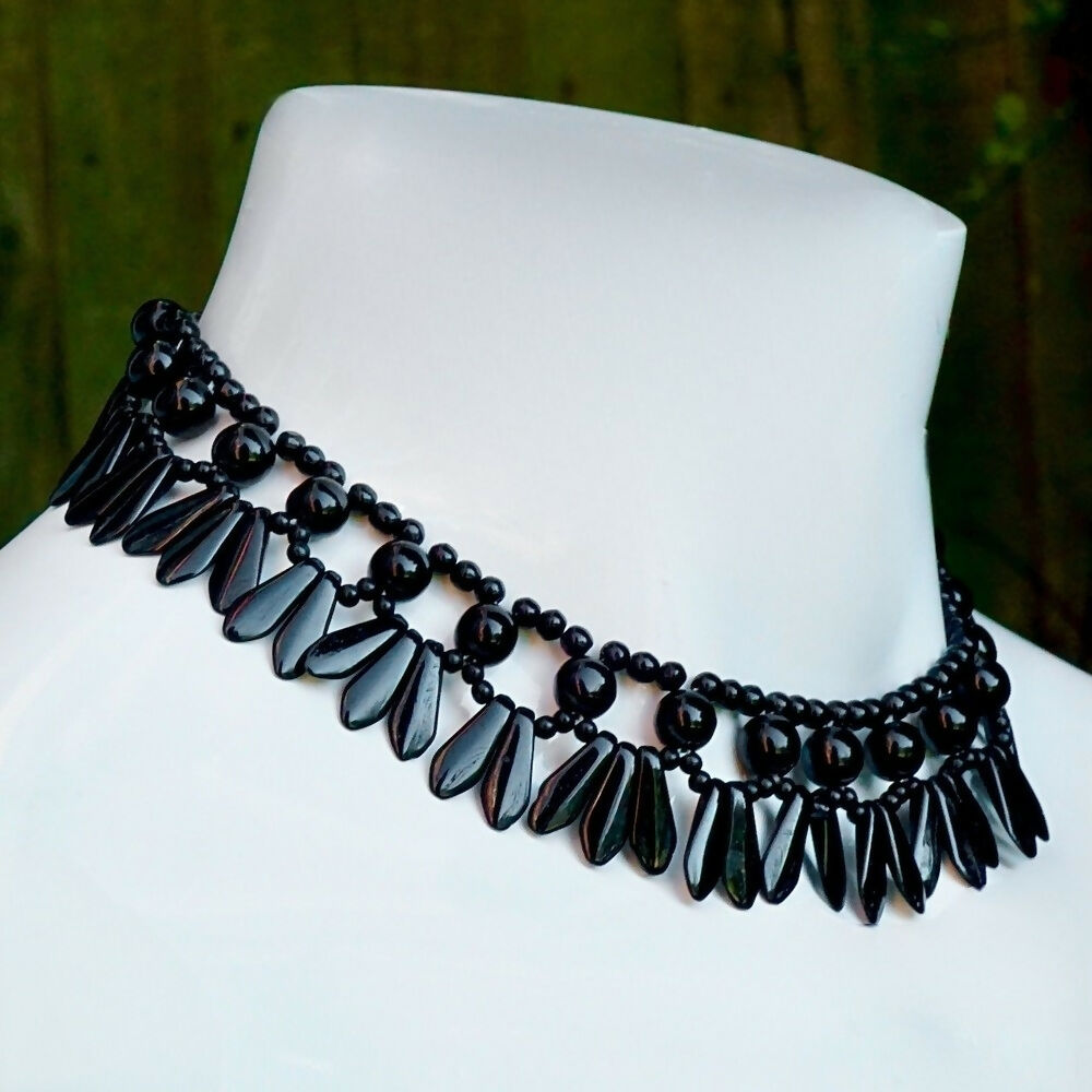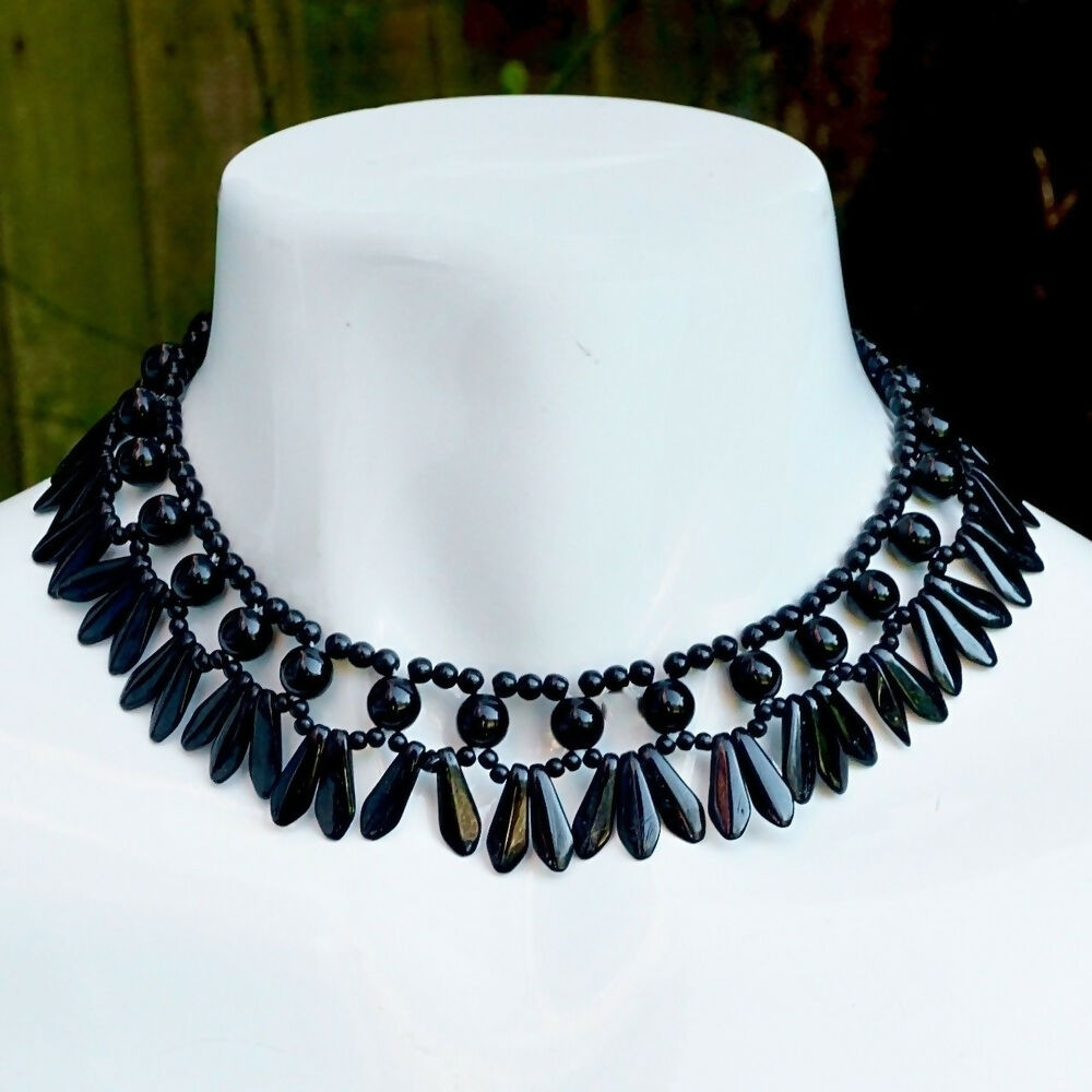 Stylish Art Deco style fringe necklace with beautiful black glass beads.