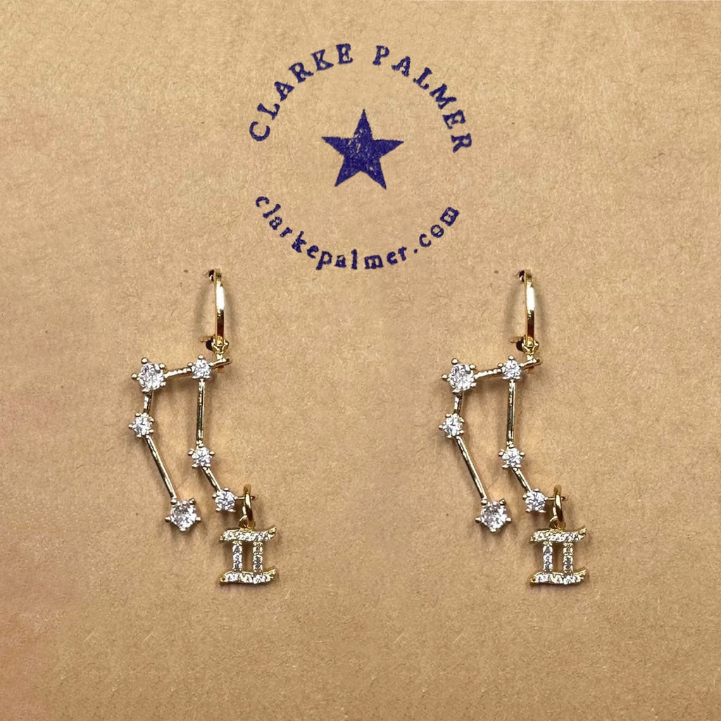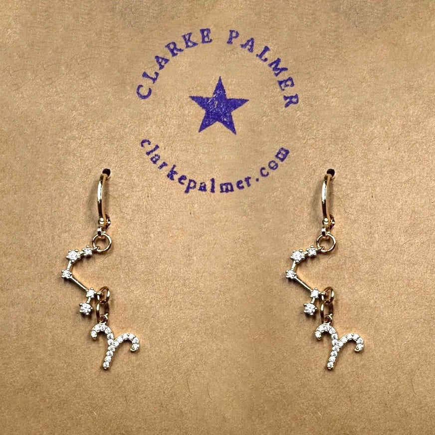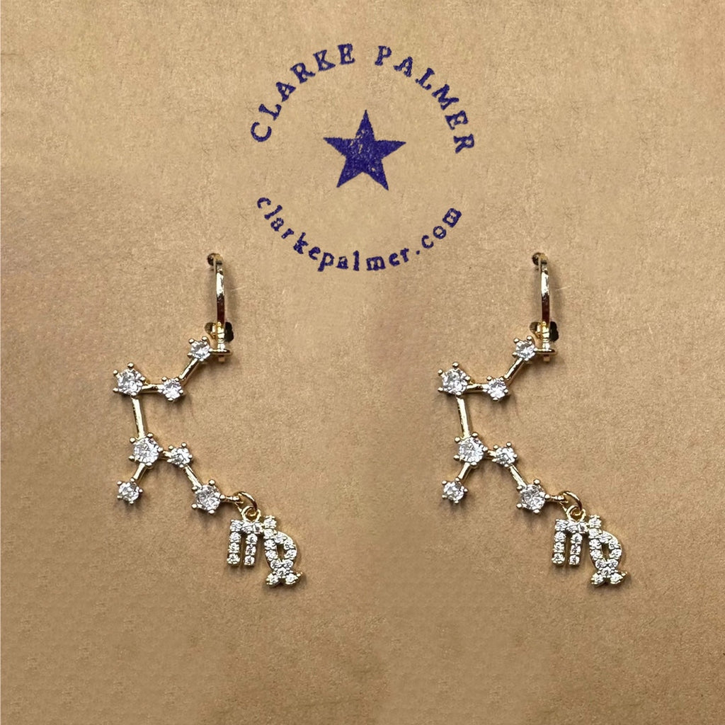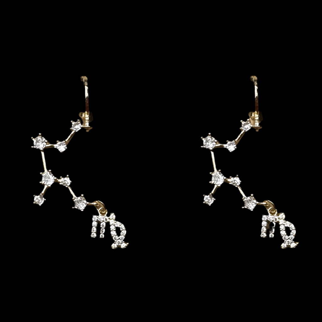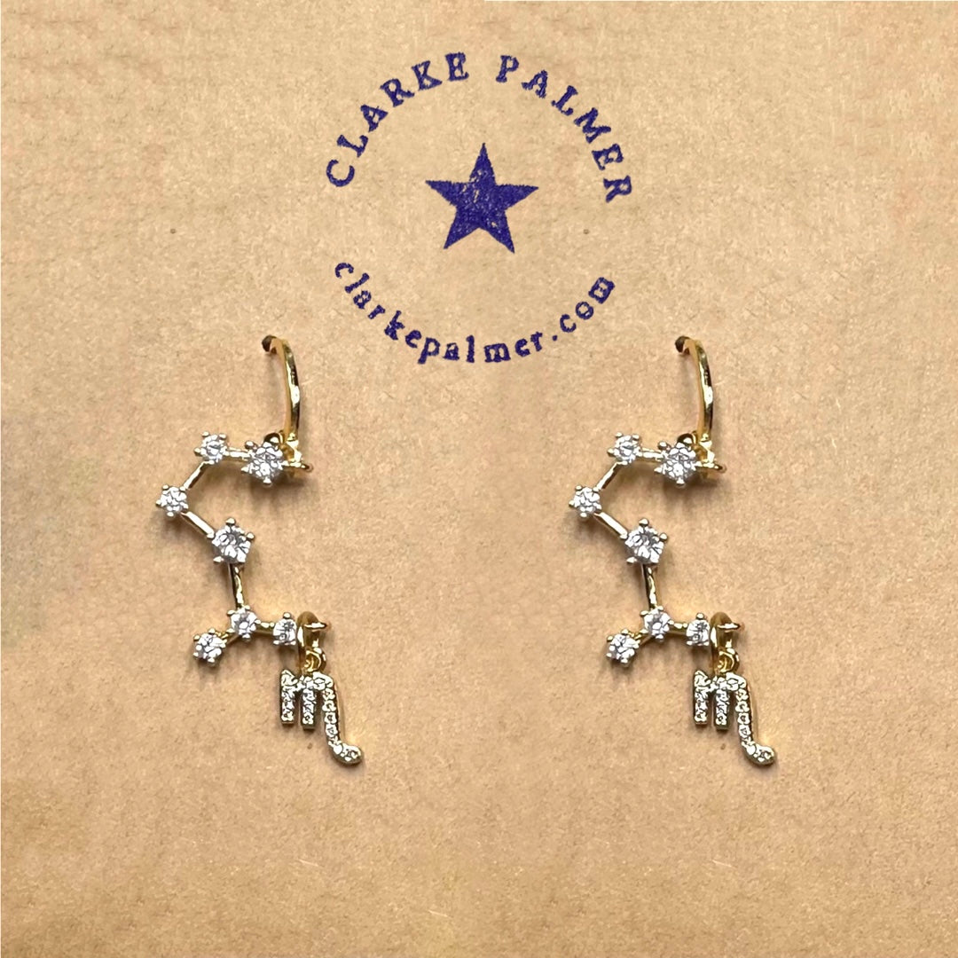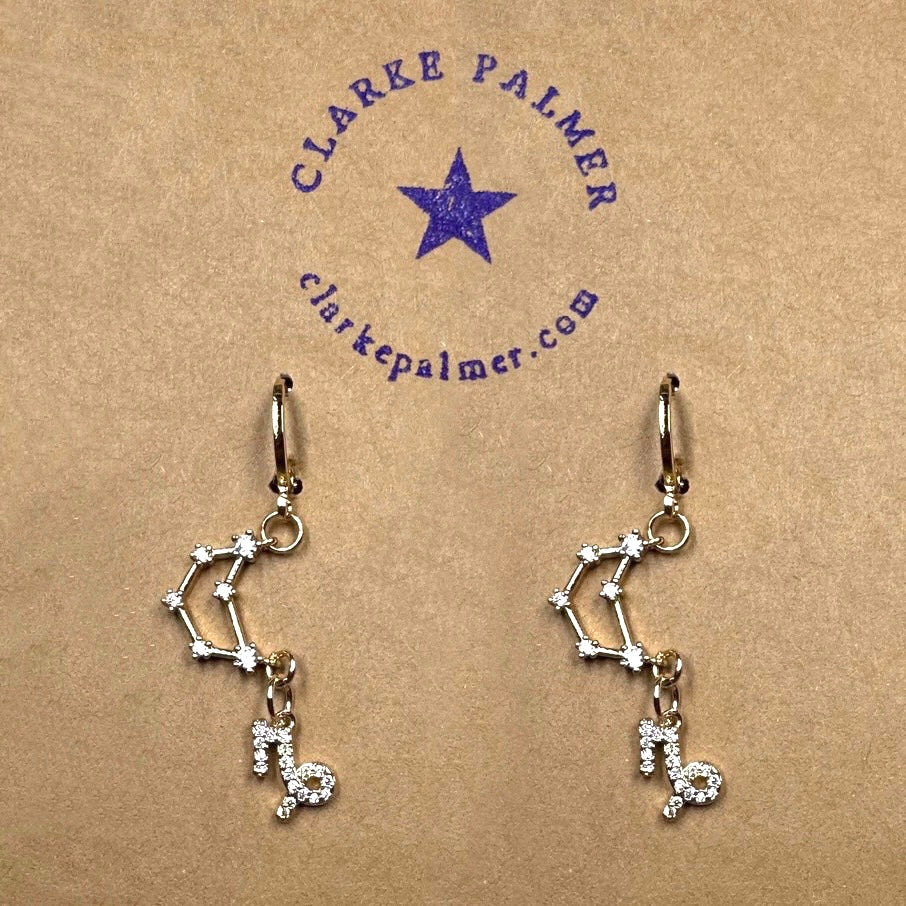 Our unique and stunning horoscope charm constellation earrings are handmade from 22kt gold vermeil and CZ constellation charms and horoscope charms of your choice.