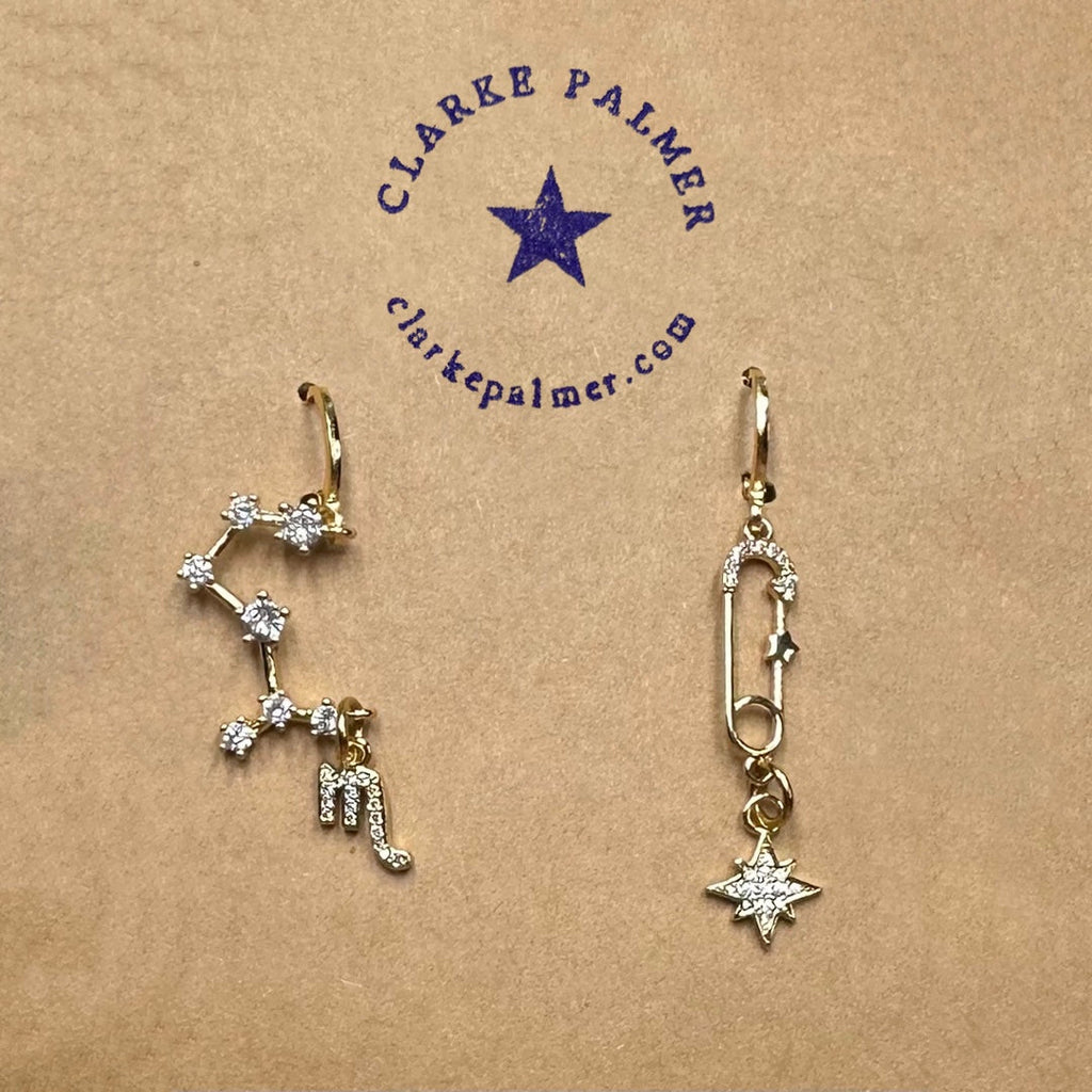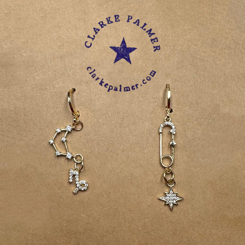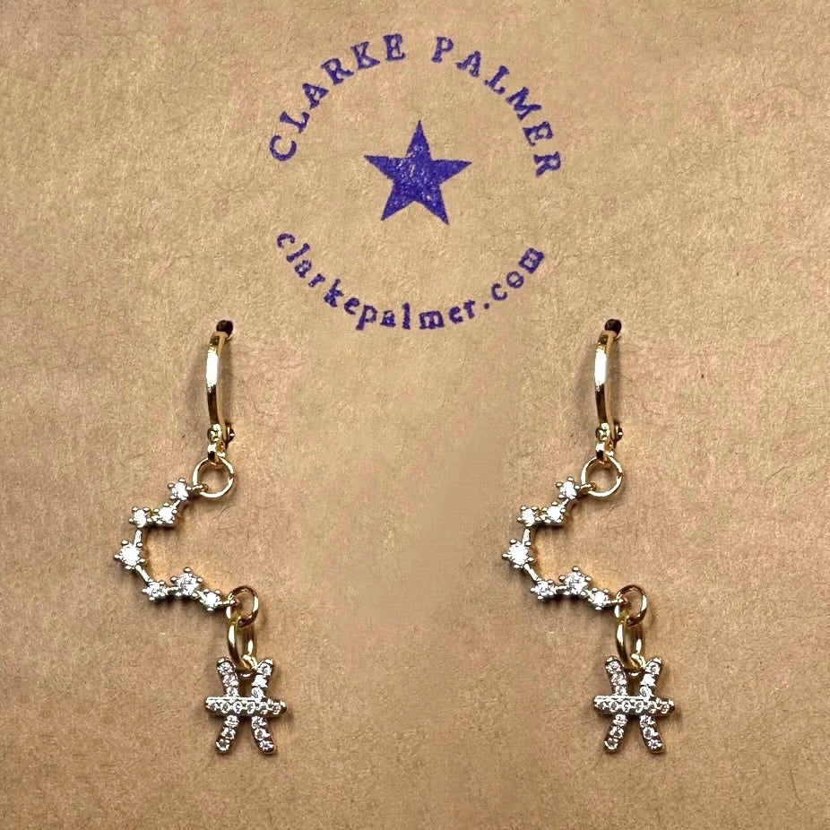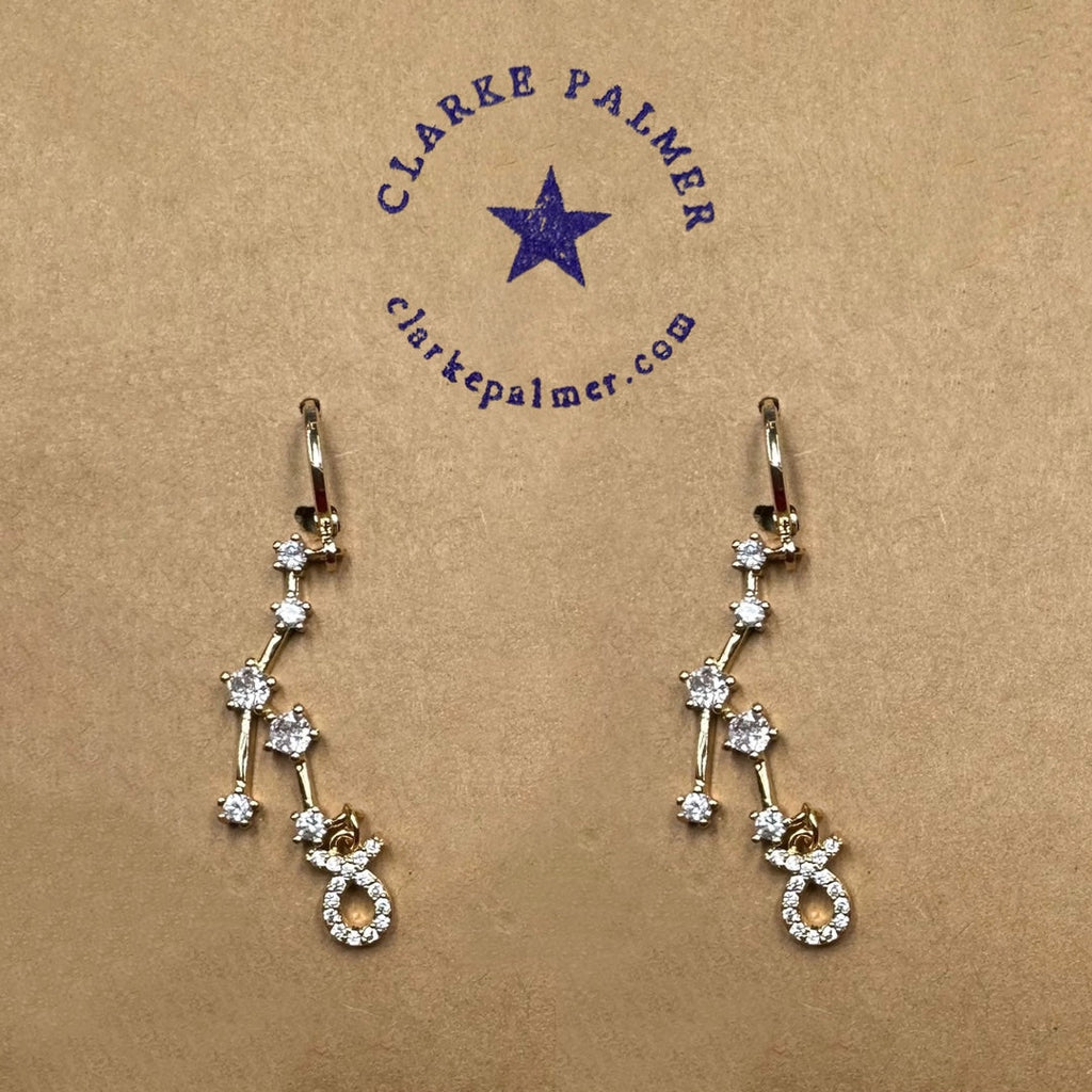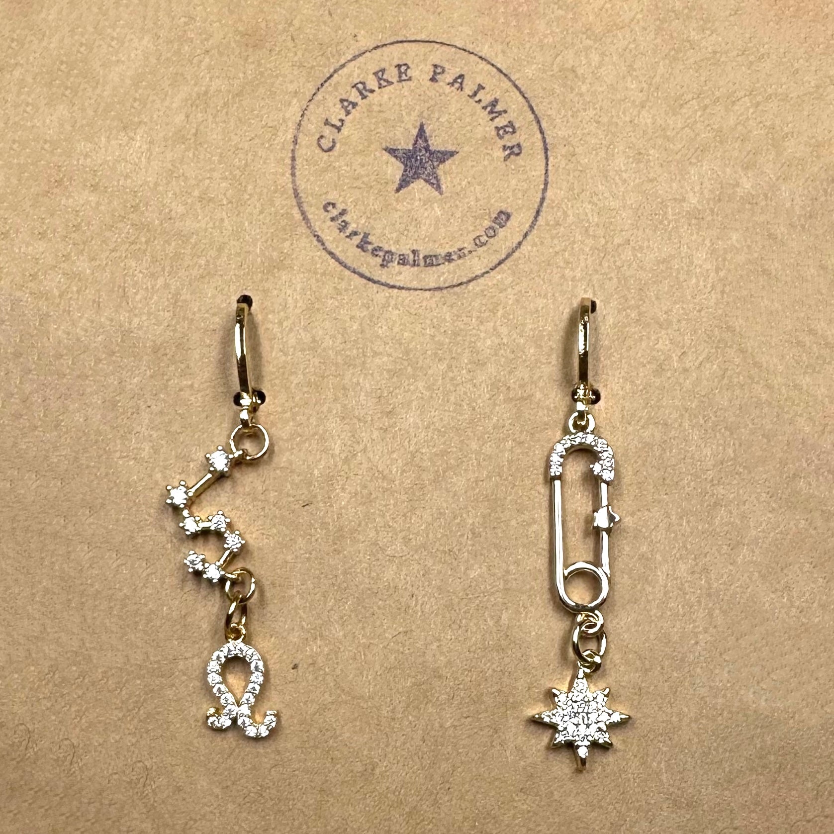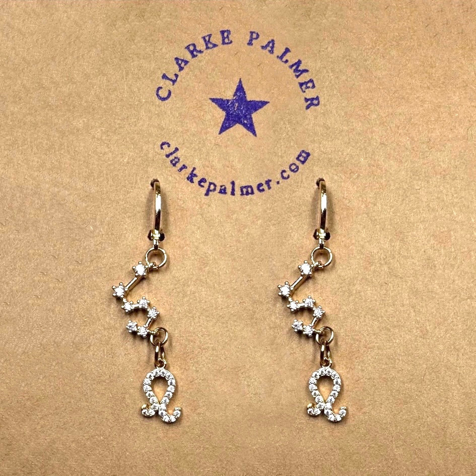 Our unique and stunning horoscope charm constellation earrings are handmade from 22kt gold vermeil and CZ constellation charms and horoscope charms of your choice.