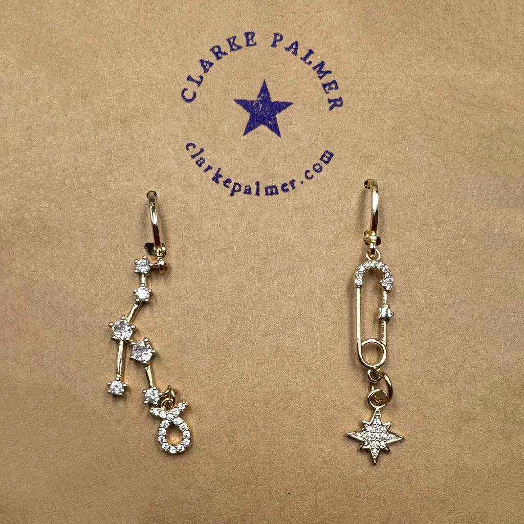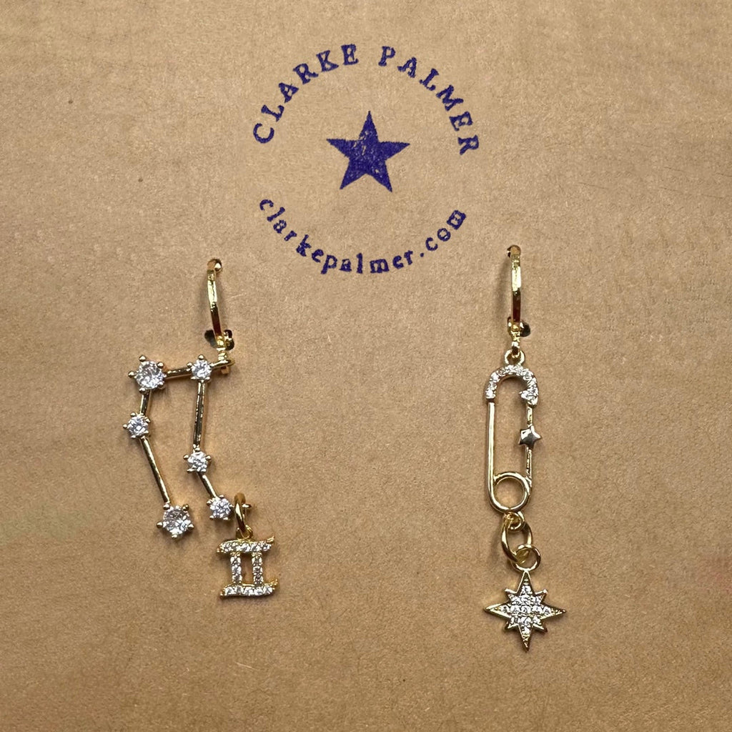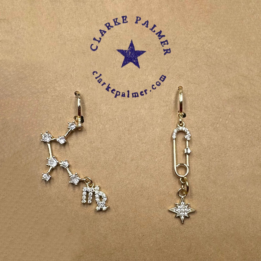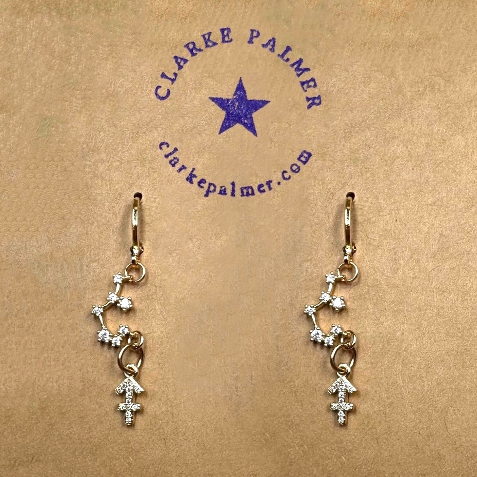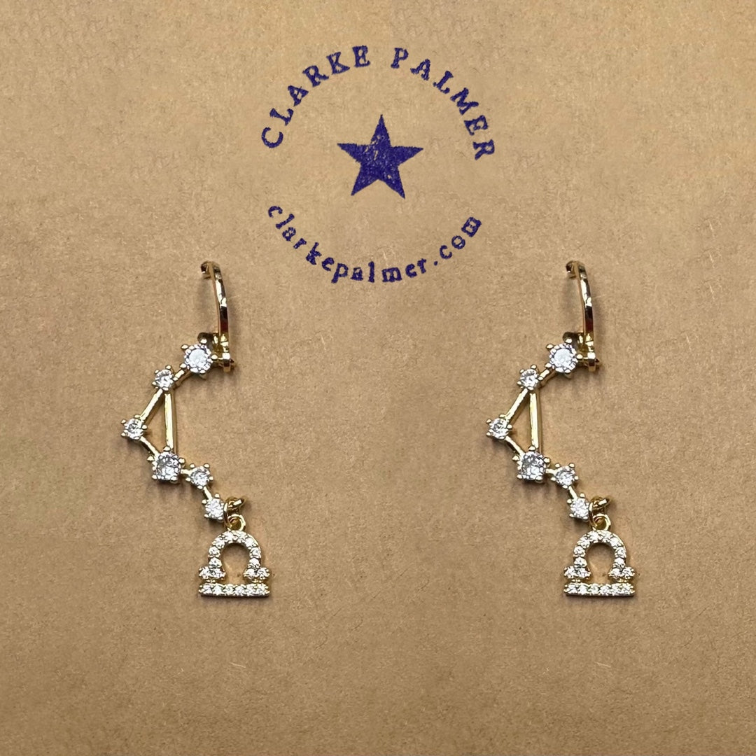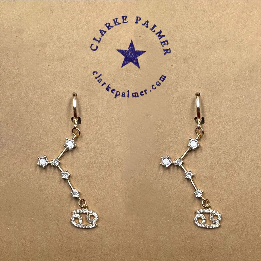 Our unique and stunning horoscope charm constellation earrings are handmade from 22kt gold vermeil and CZ constellation charms and horoscope charms of your choice.