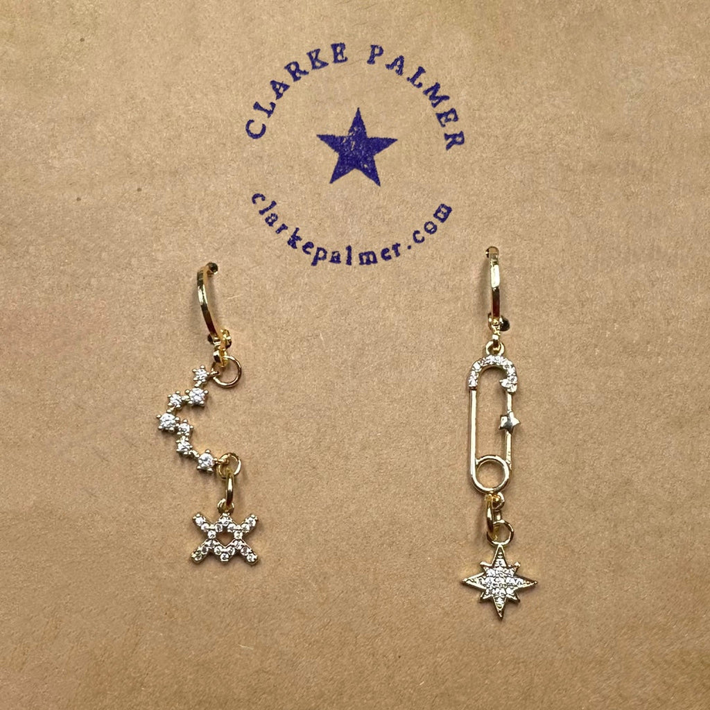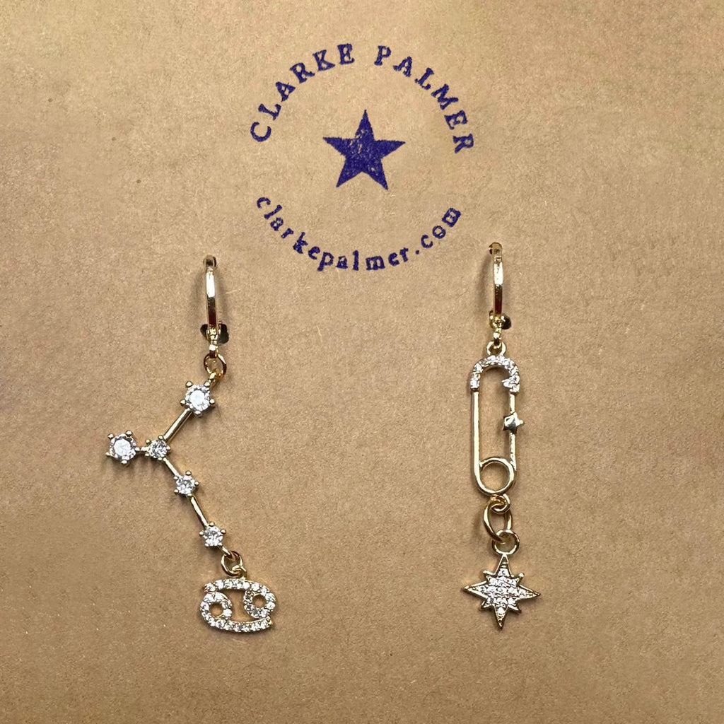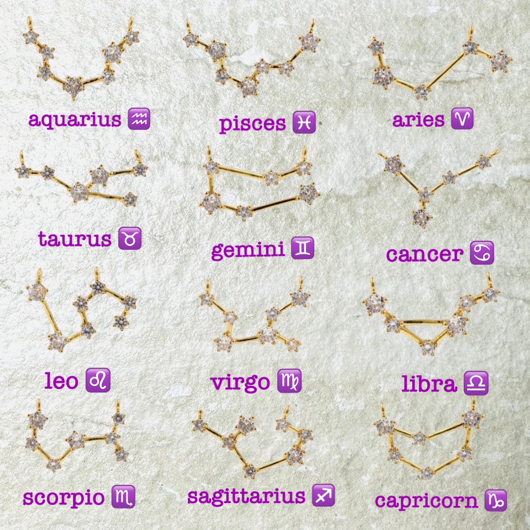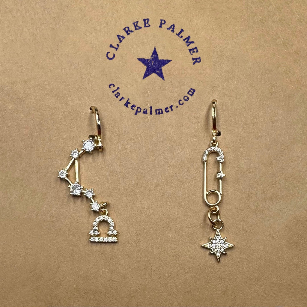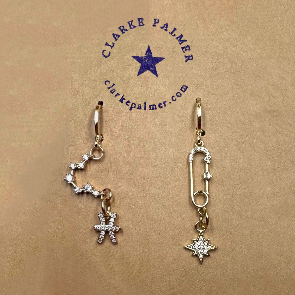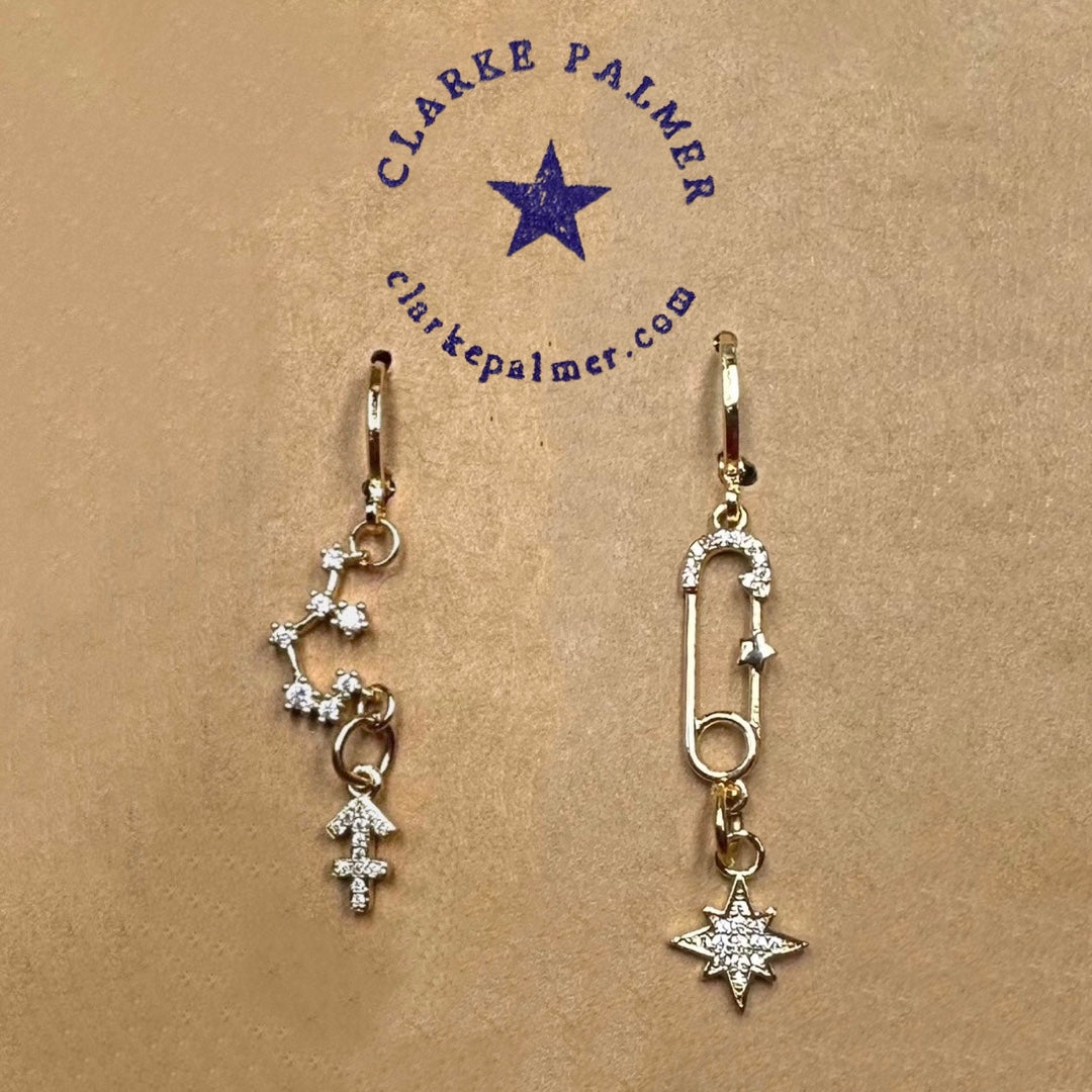 Our unique and stunning horoscope charm constellation earrings are handmade from 22kt gold vermeil and CZ constellation charms and horoscope charms of your choice.