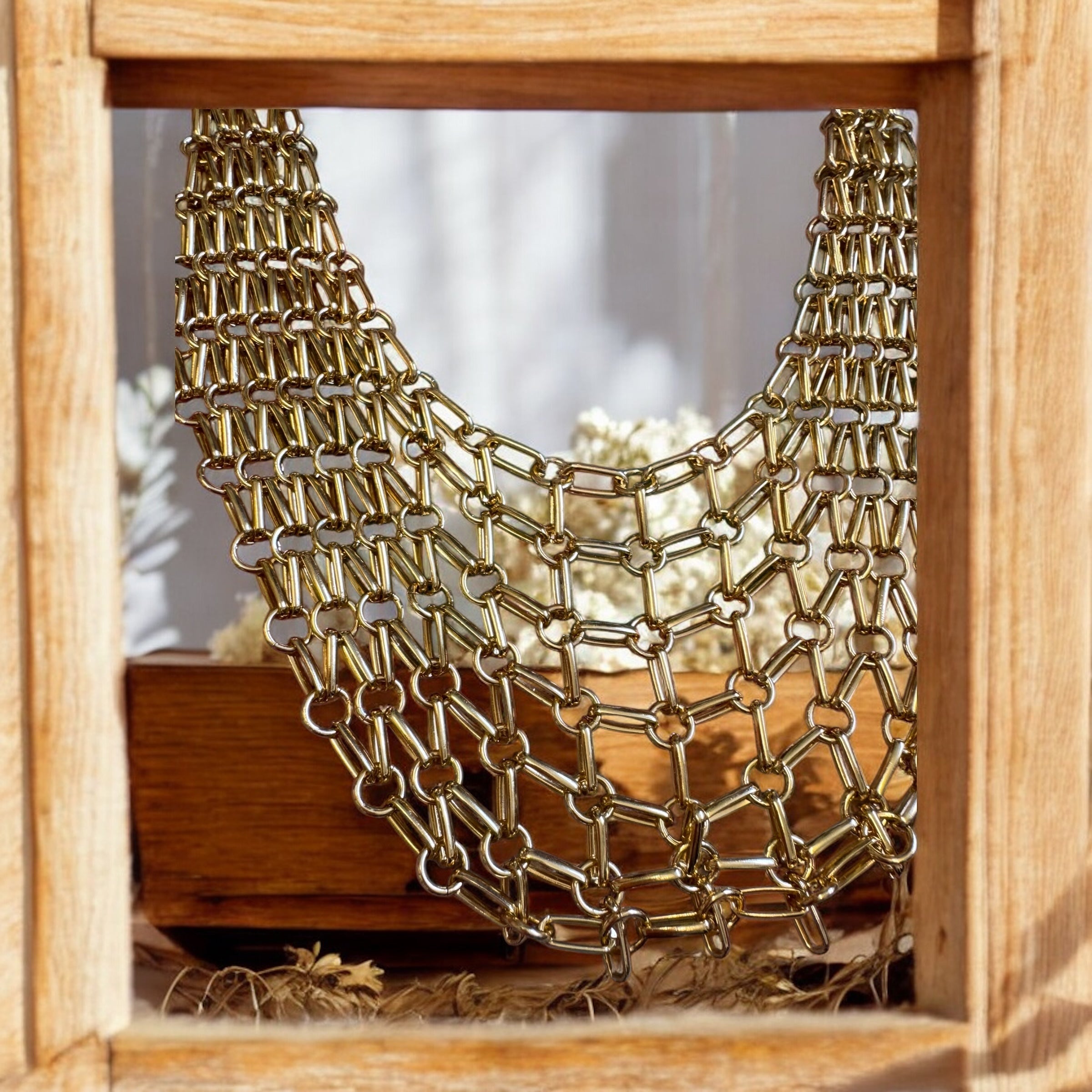 Denise, 70s gold platedChainmail tiered necklace
