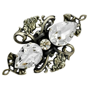 Ermani Bulatti antiqued silver tone brooch in an Art Nouveau style design, and featuring clear rhinestones.