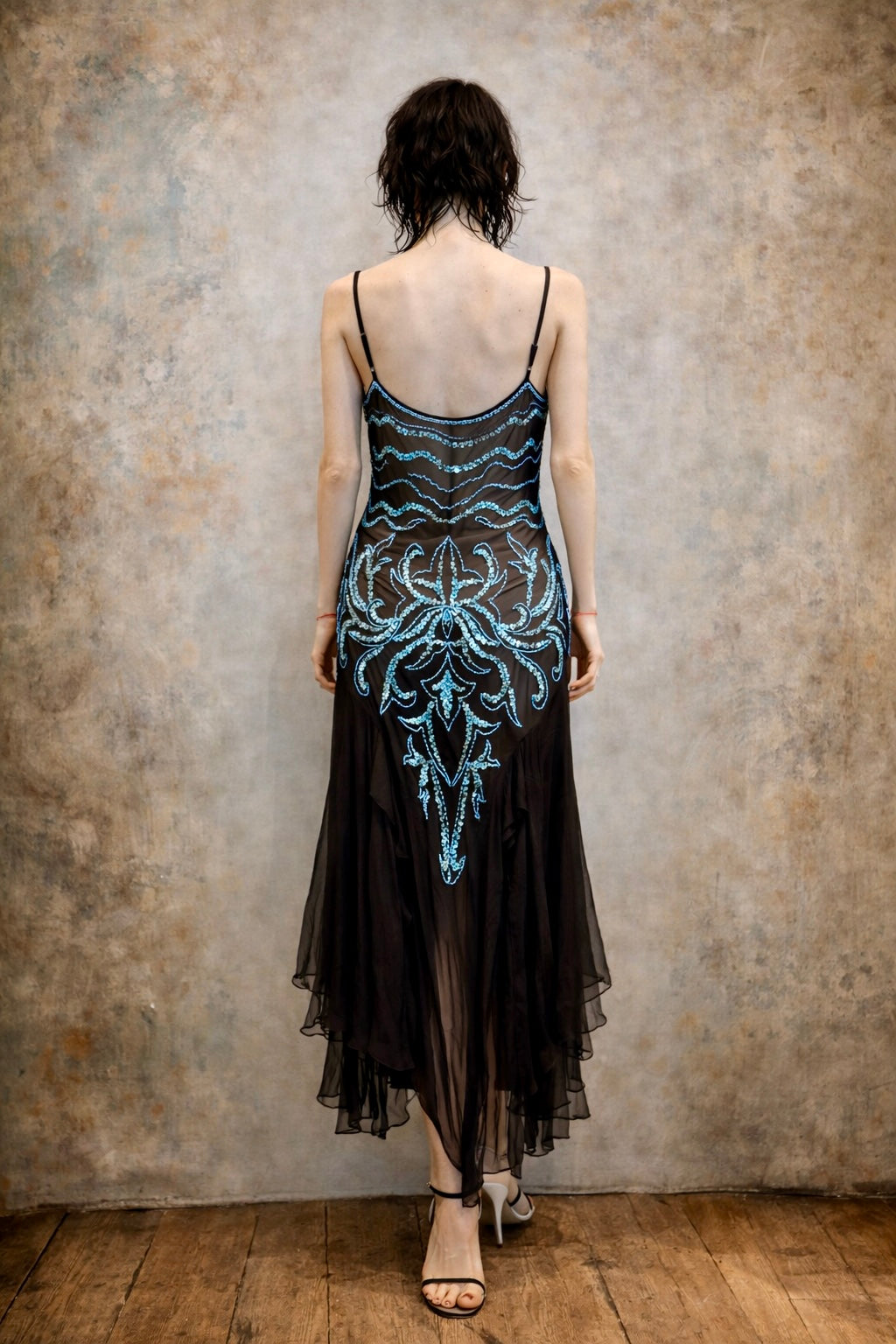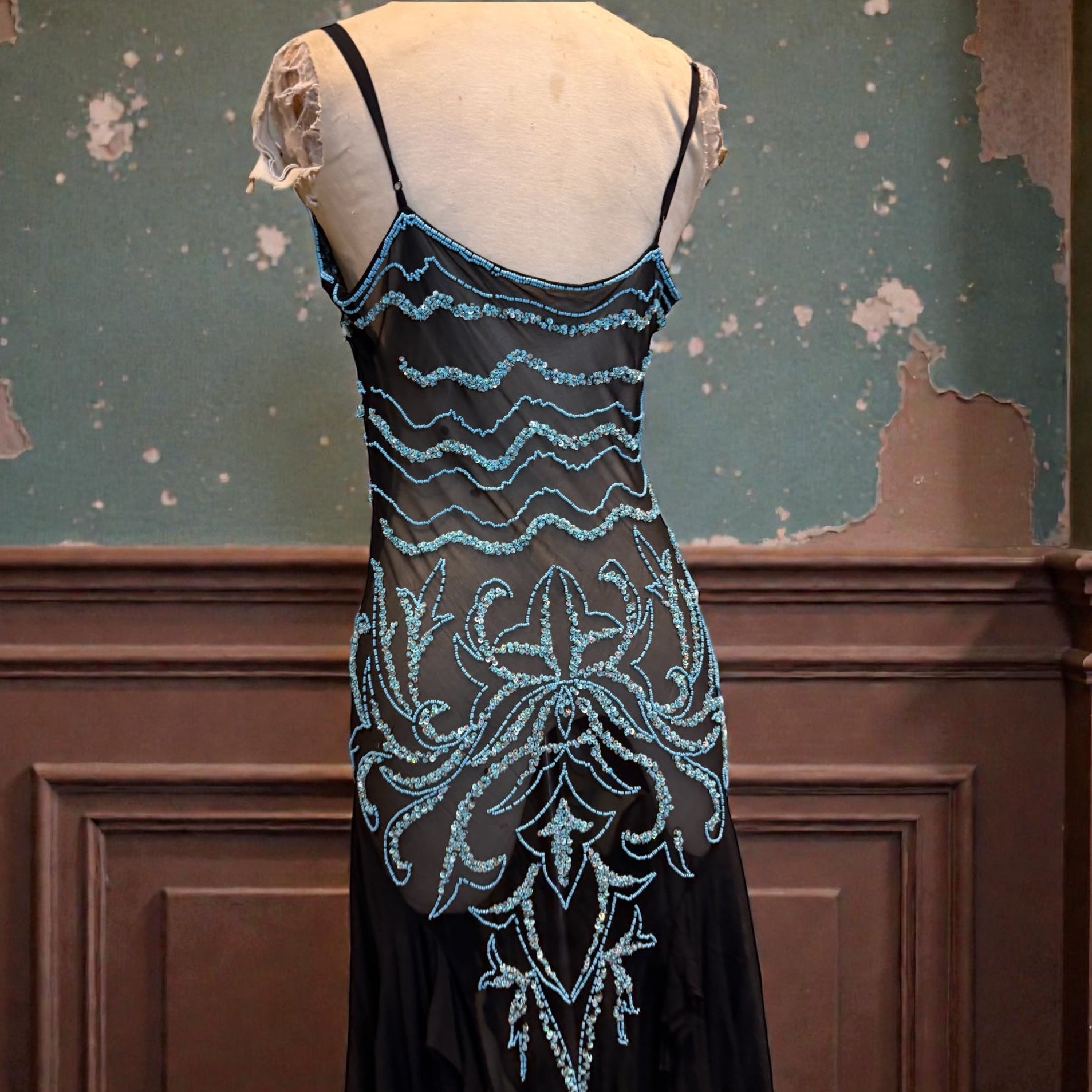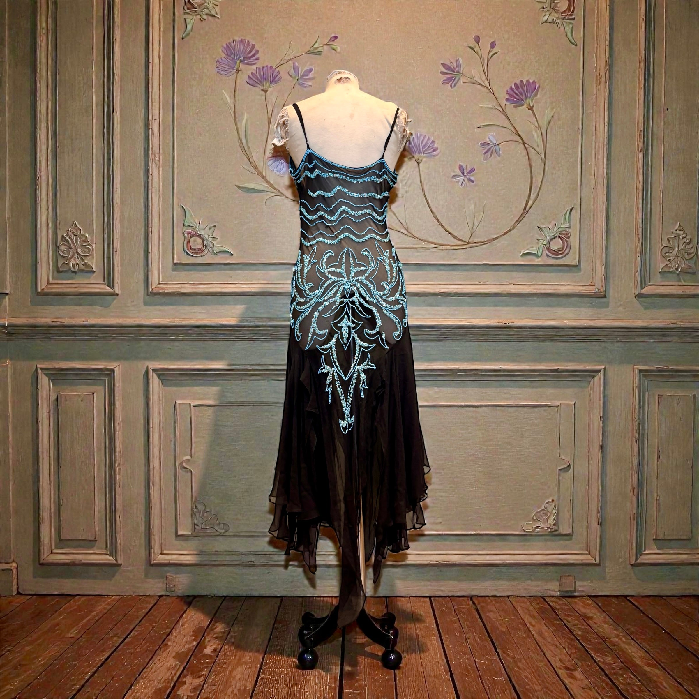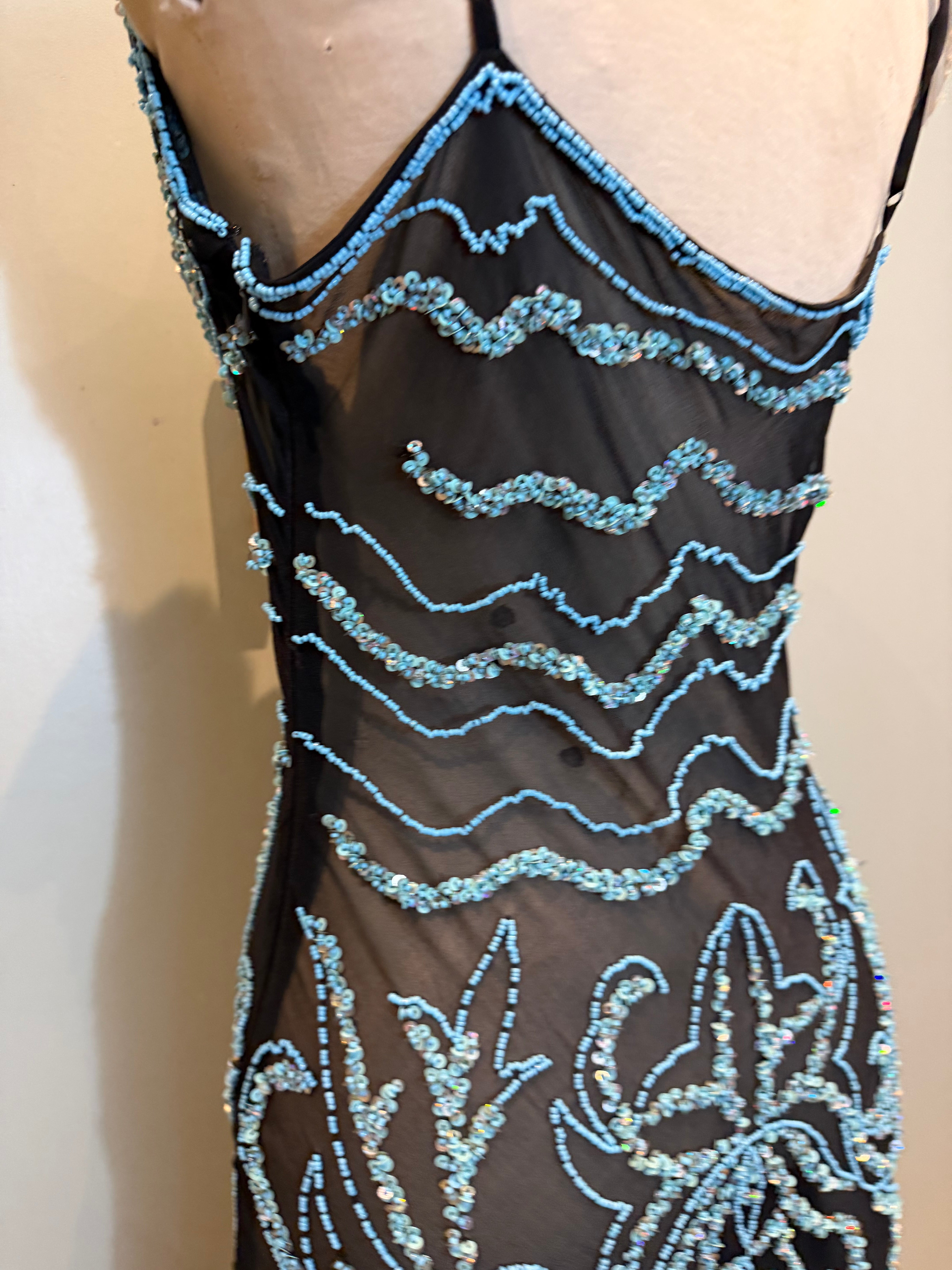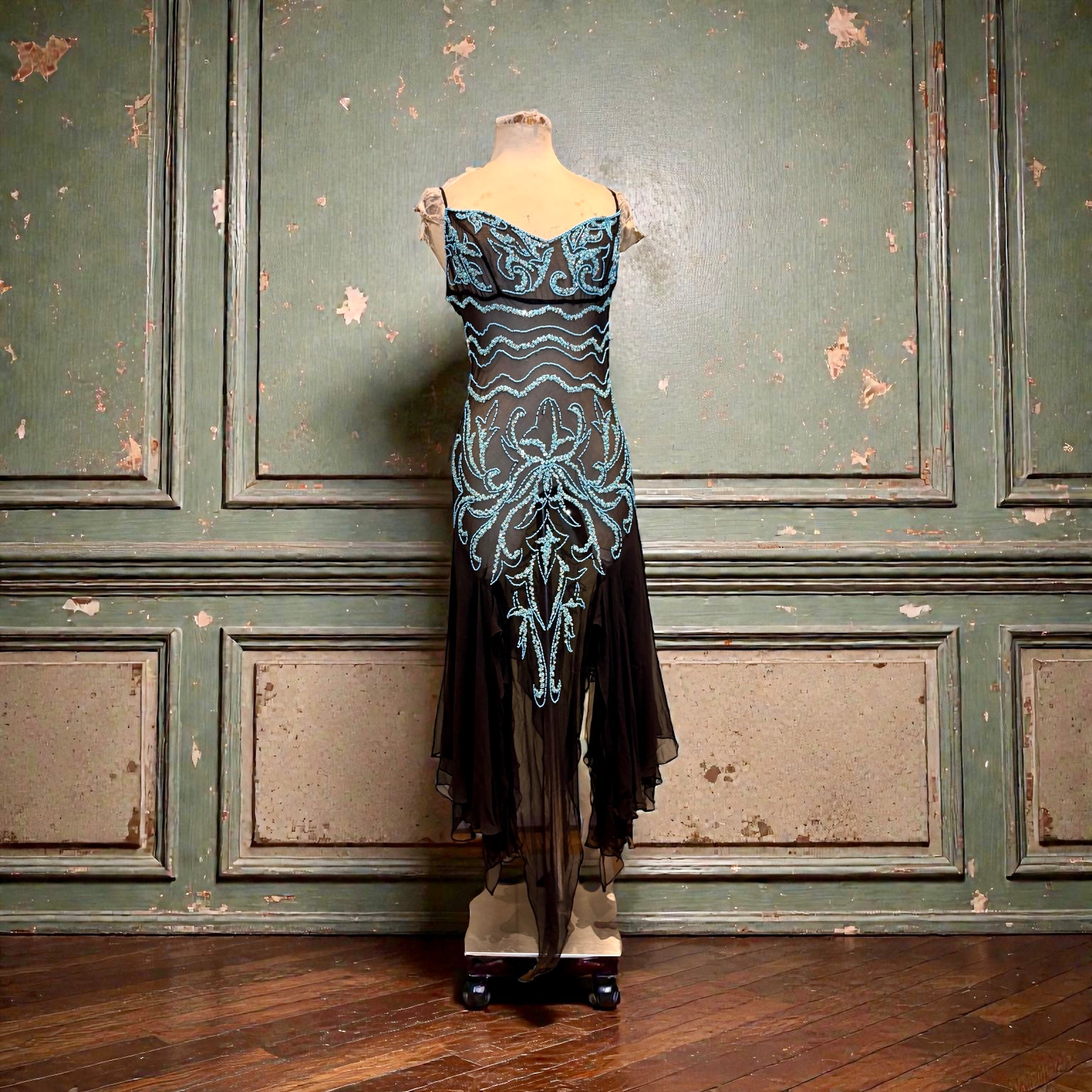 Fabia, 90s silk chiffon turquoise beaded dress