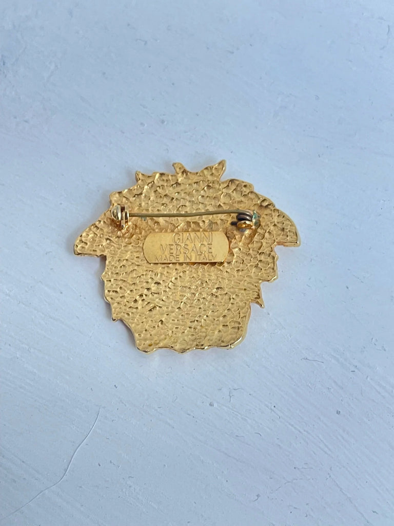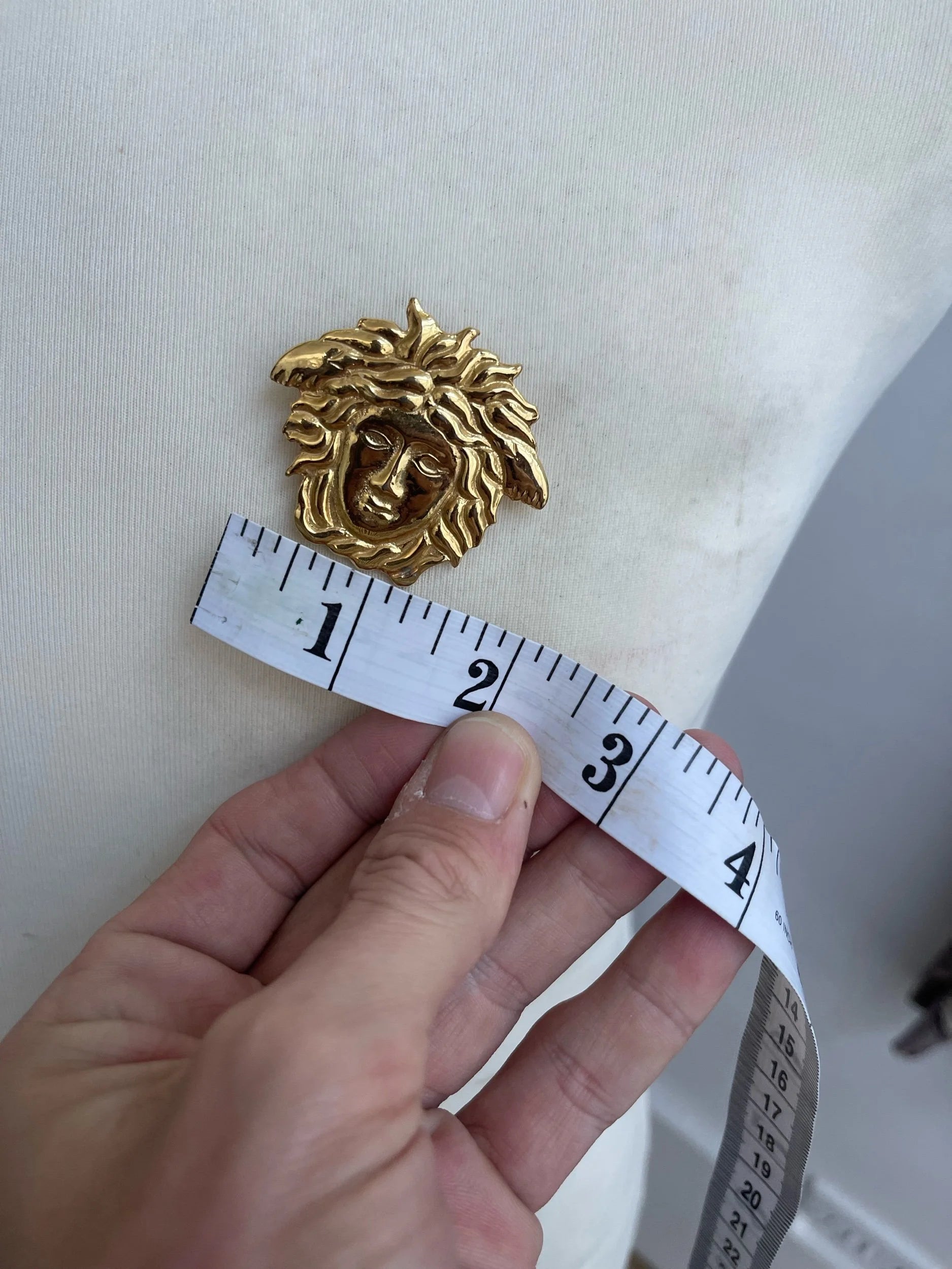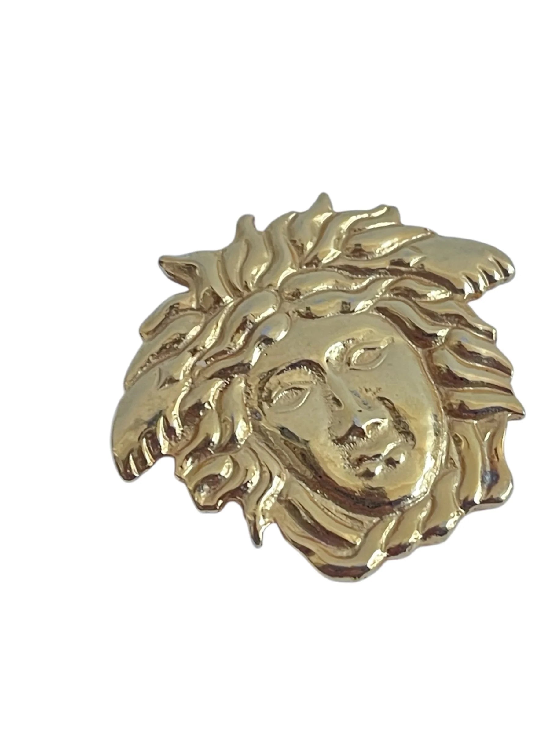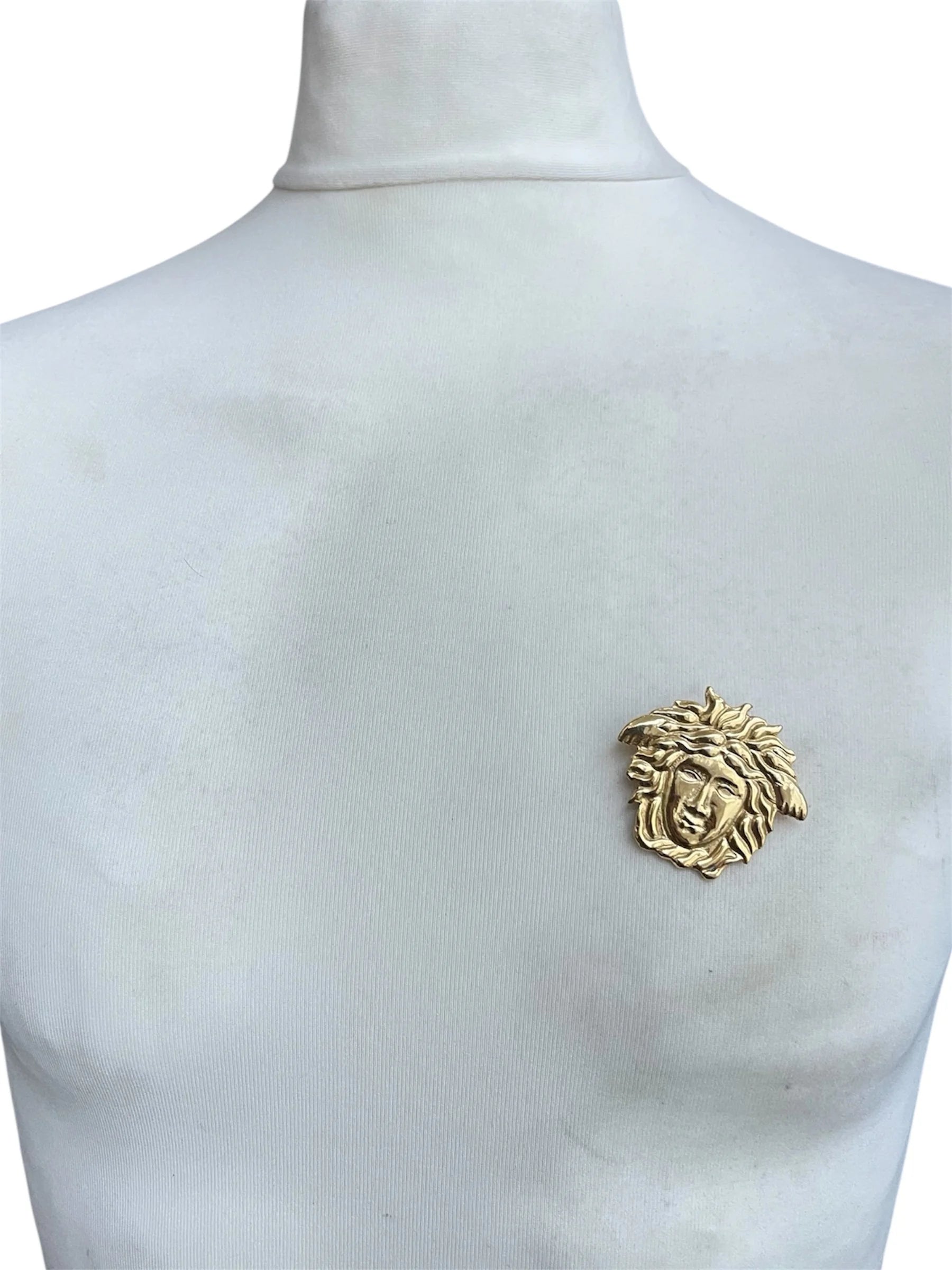 Vintage 1990s Gianni Versace Medusa Head Brooch – Oversized Gold-Plated Statement Pin