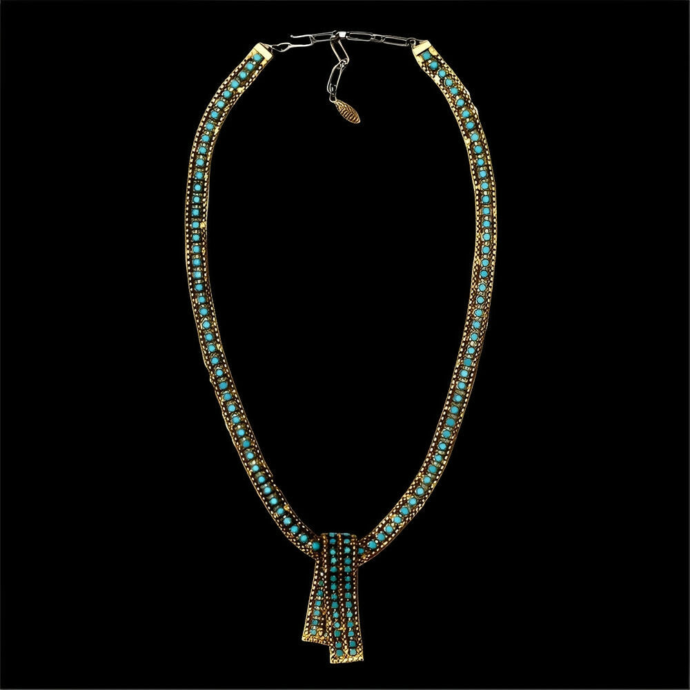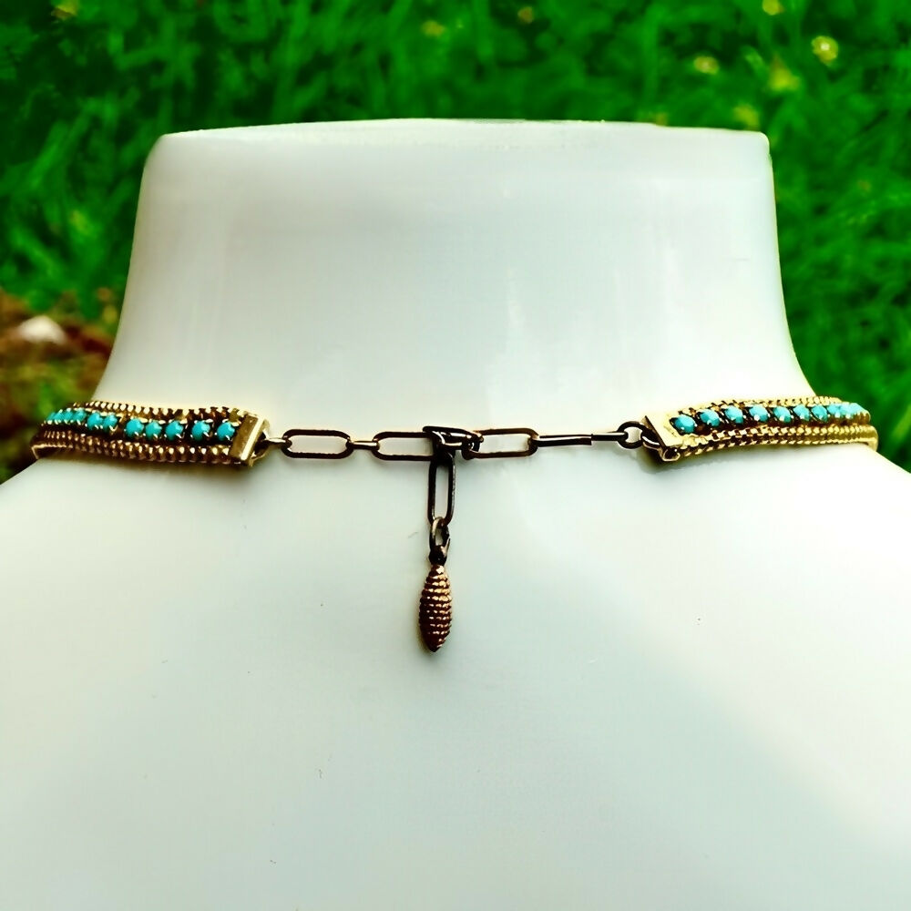 GOLD PLATED MESH AND FAUX TURQUOISE NECKLACE
