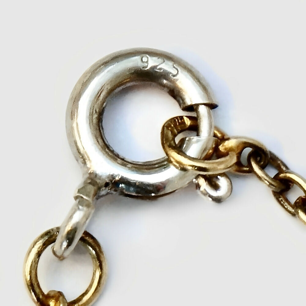There is wear to the gold plating. We have replaced the bolt ring clasp with a silver one.