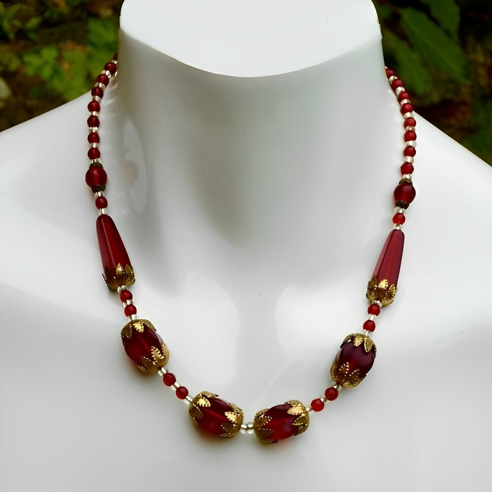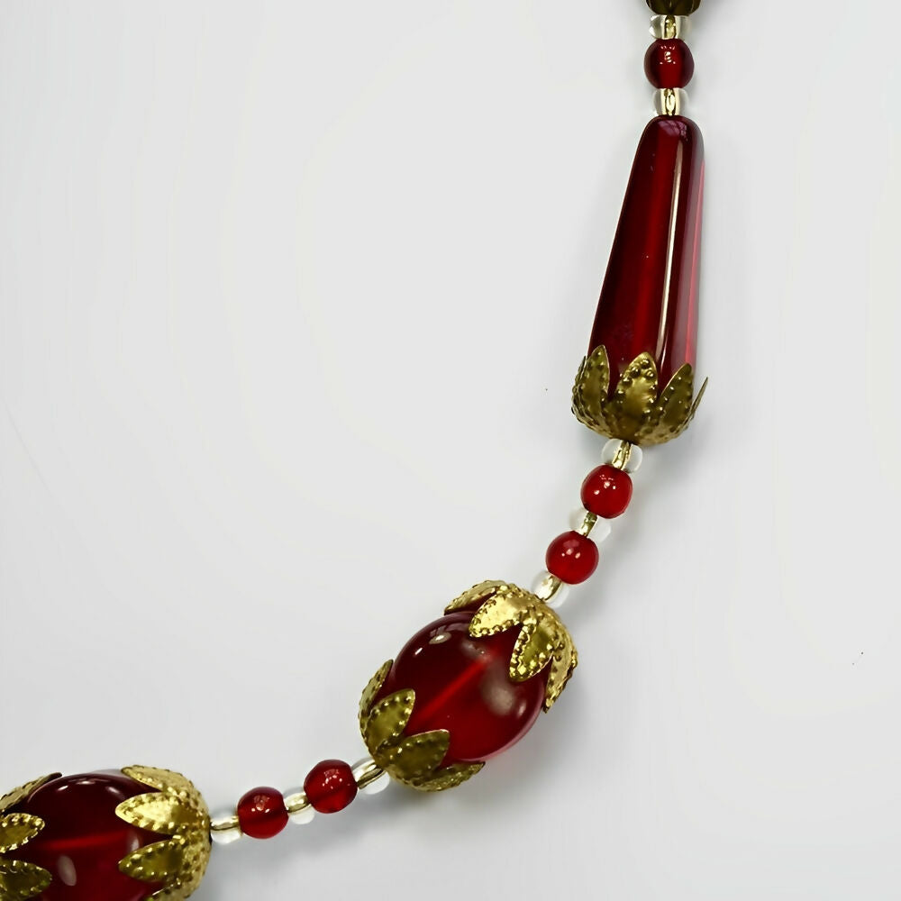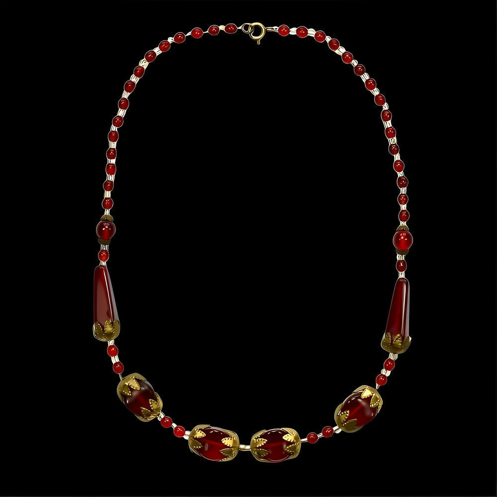 GOLD TONE RED AND CLEAR GLASS NECKLACE CIRCA 1930S