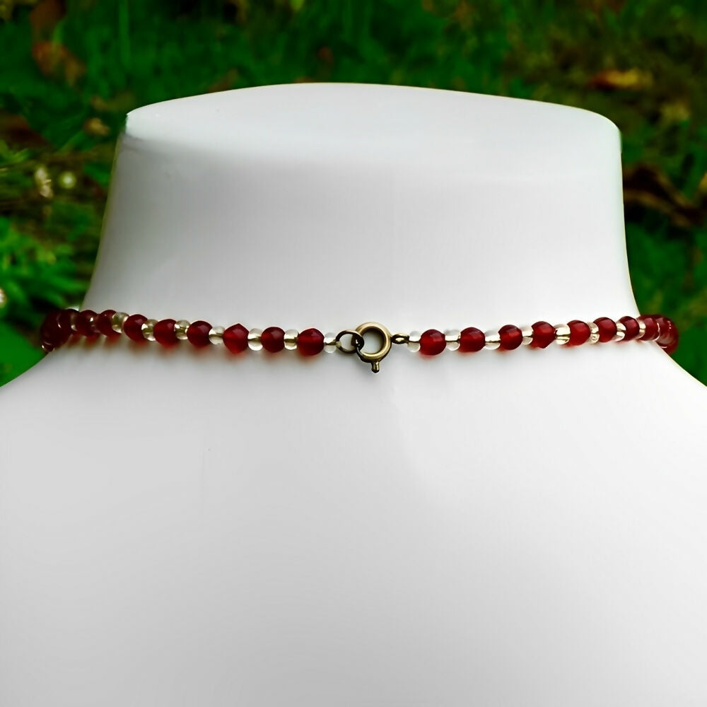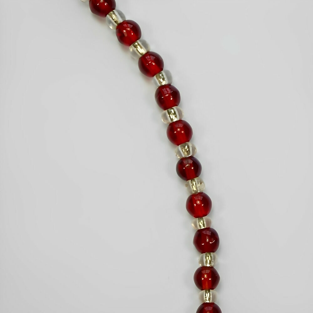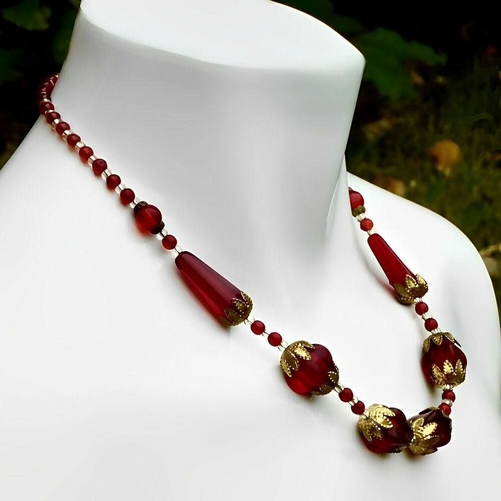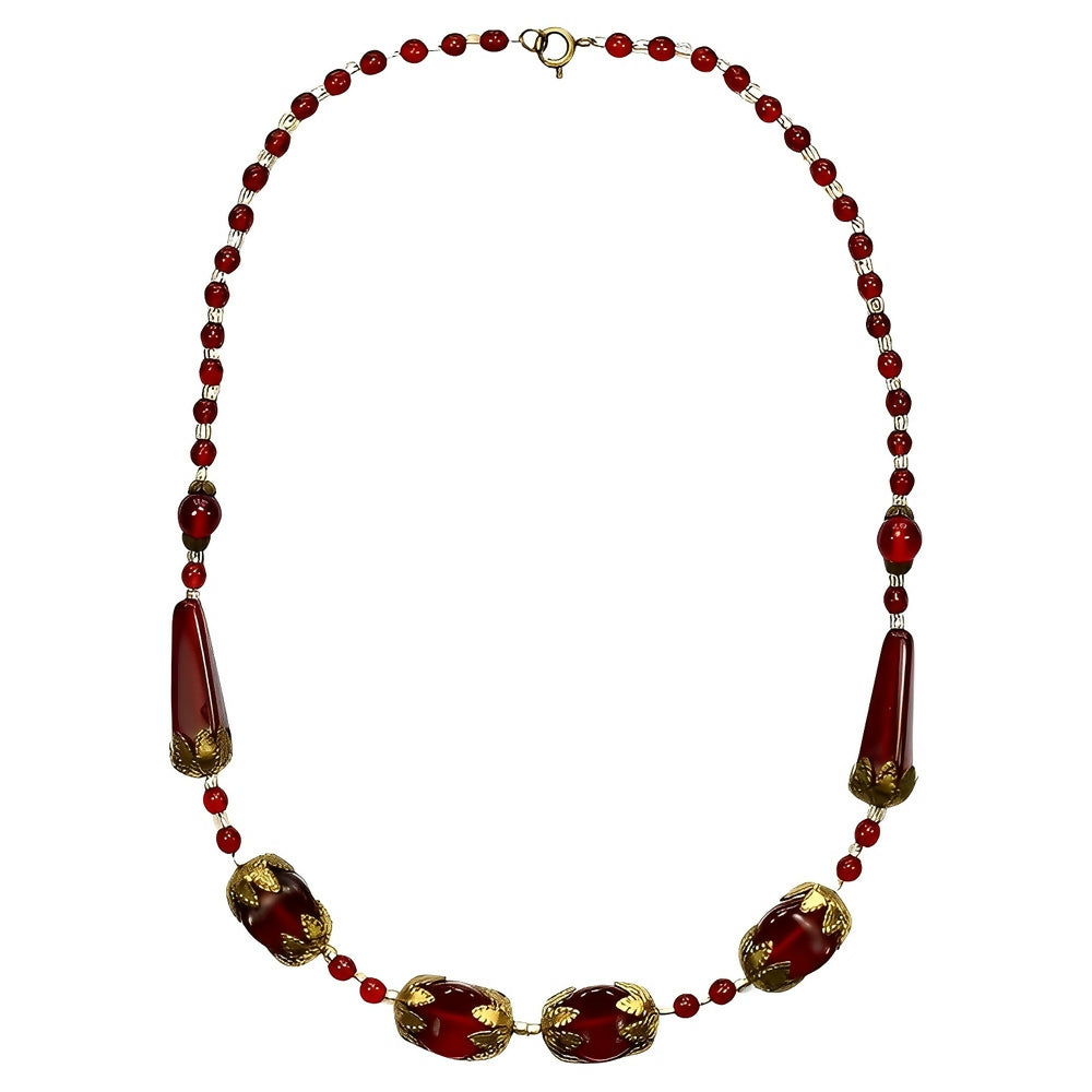 GOLD TONE RED AND CLEAR GLASS NECKLACE CIRCA 1930S