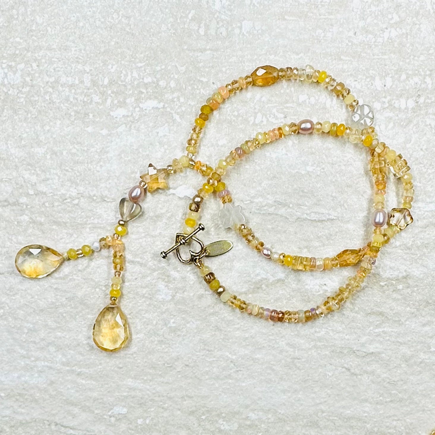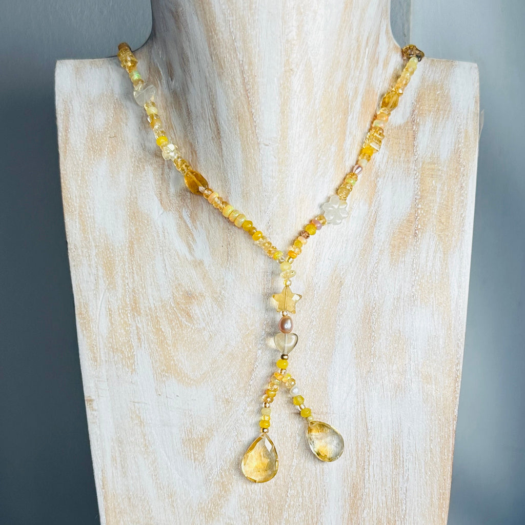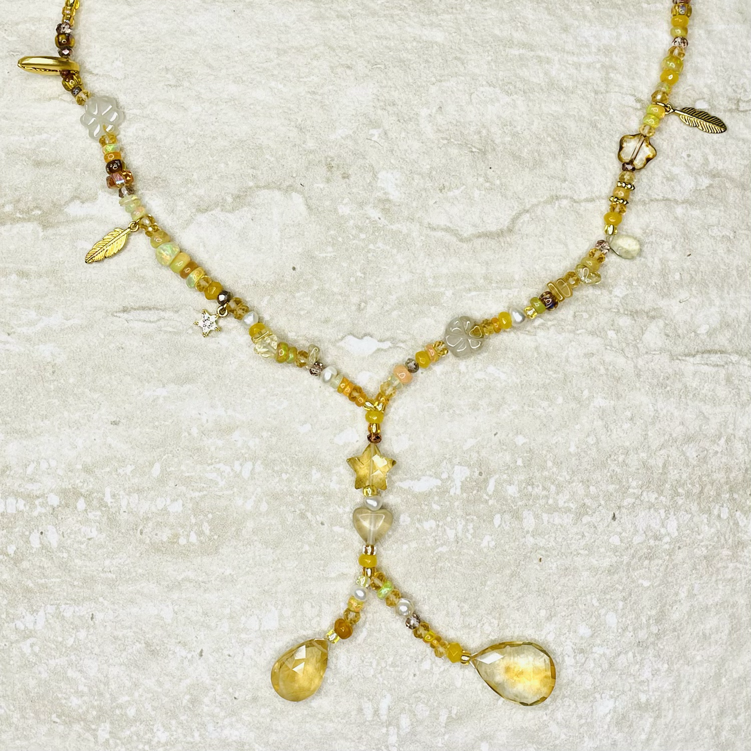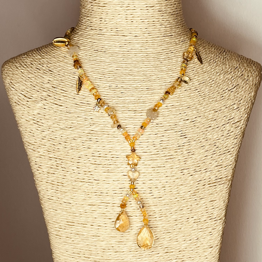 Golden Treasure Beach Opal & Citrine Charm Necklace