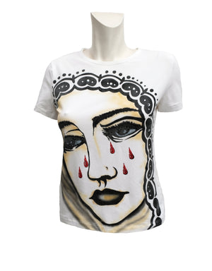 Iceberg Vintage White Hand Painted Weeping Madonna T shirt, UK10