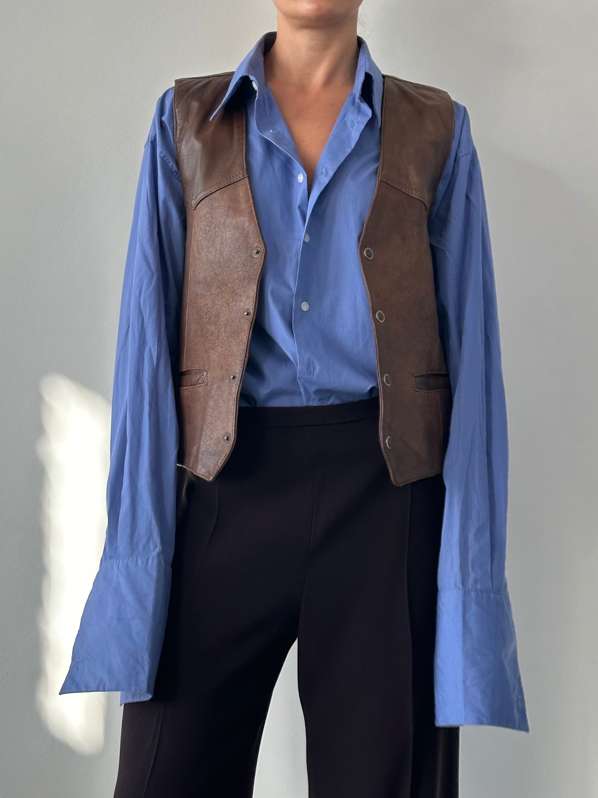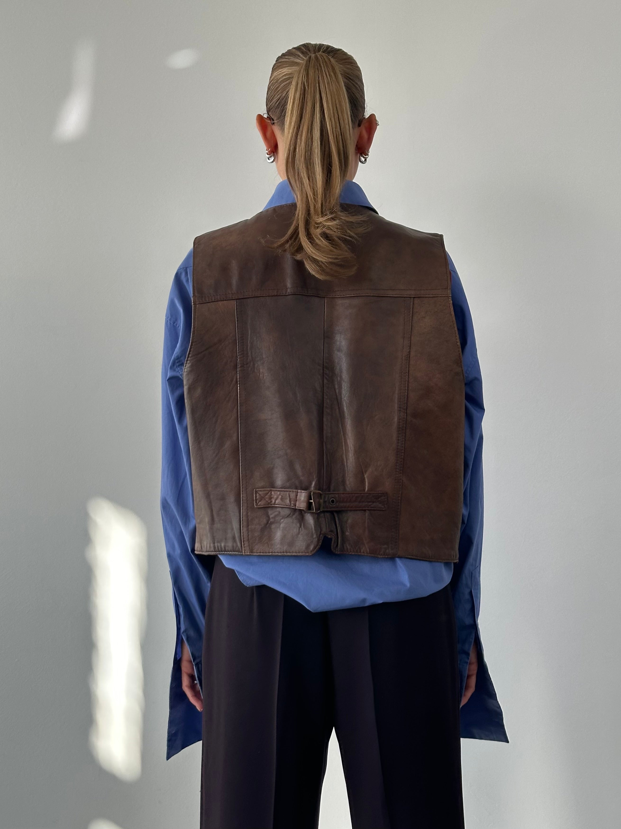 Italian Vintage Aged Leather Waistcoat - L