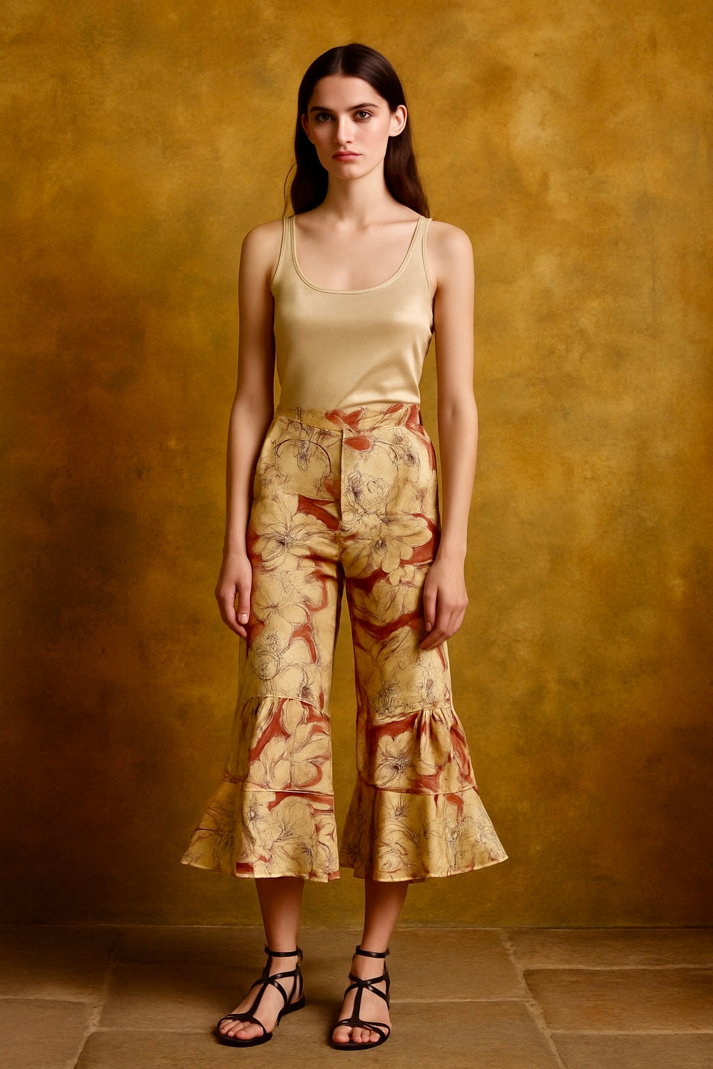 Jill, 1920s silk organza floral art deco reworked frail trousers